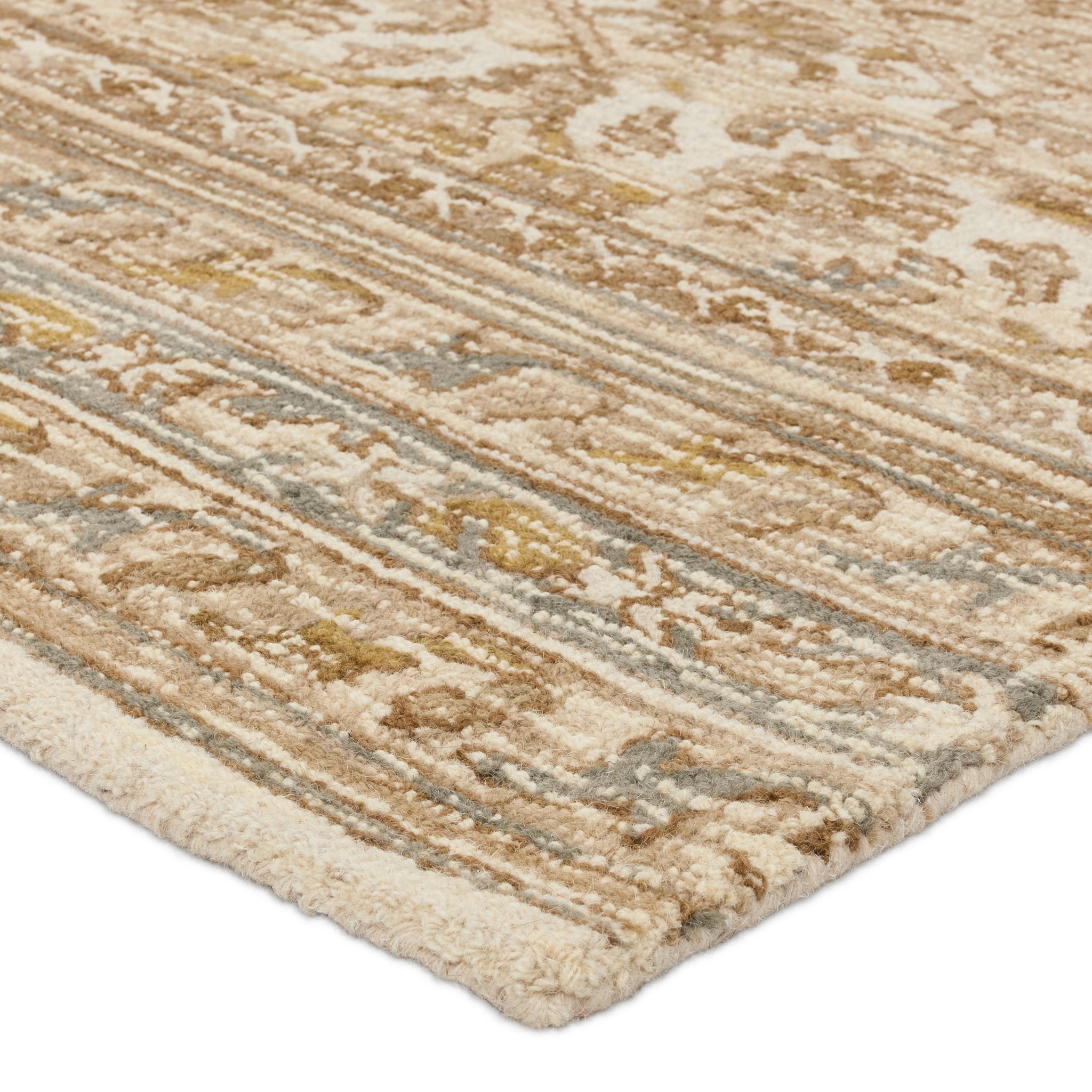 The hand-tufted Cardamom collection boasts vivid jewel tones and uniquely distressed Turkish motifs, crafted to emulate traditional sun-faded, vintage designs. The Sarang rug showcases a floral trellis motif in a mix of warm and earthy hues including brown, gold, cream, beige, and hints of blue. Inspired by the artistic imperfection of dye-lot changes in perfectly aged wool textiles, the looped pile of this rug features tonal colorway depth and textural dimension. This indoor rug best suits medium and low traffic spaces of the home such as formal dining rooms, bedrooms, and formal living rooms.
