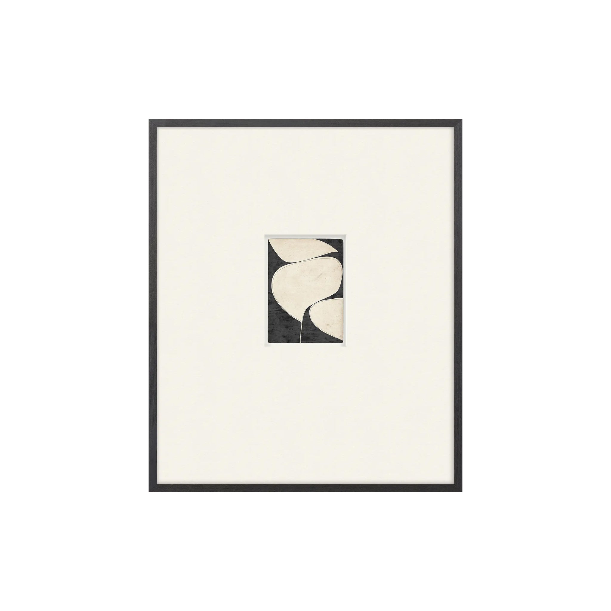 This impressive yet minimal composition comes to life in black and white; neutral tones that complement any decor style. And framed with a pebbled matte that contrasts its rustic charcoal frame, this small abstract work transforms into a focal masterpiece.