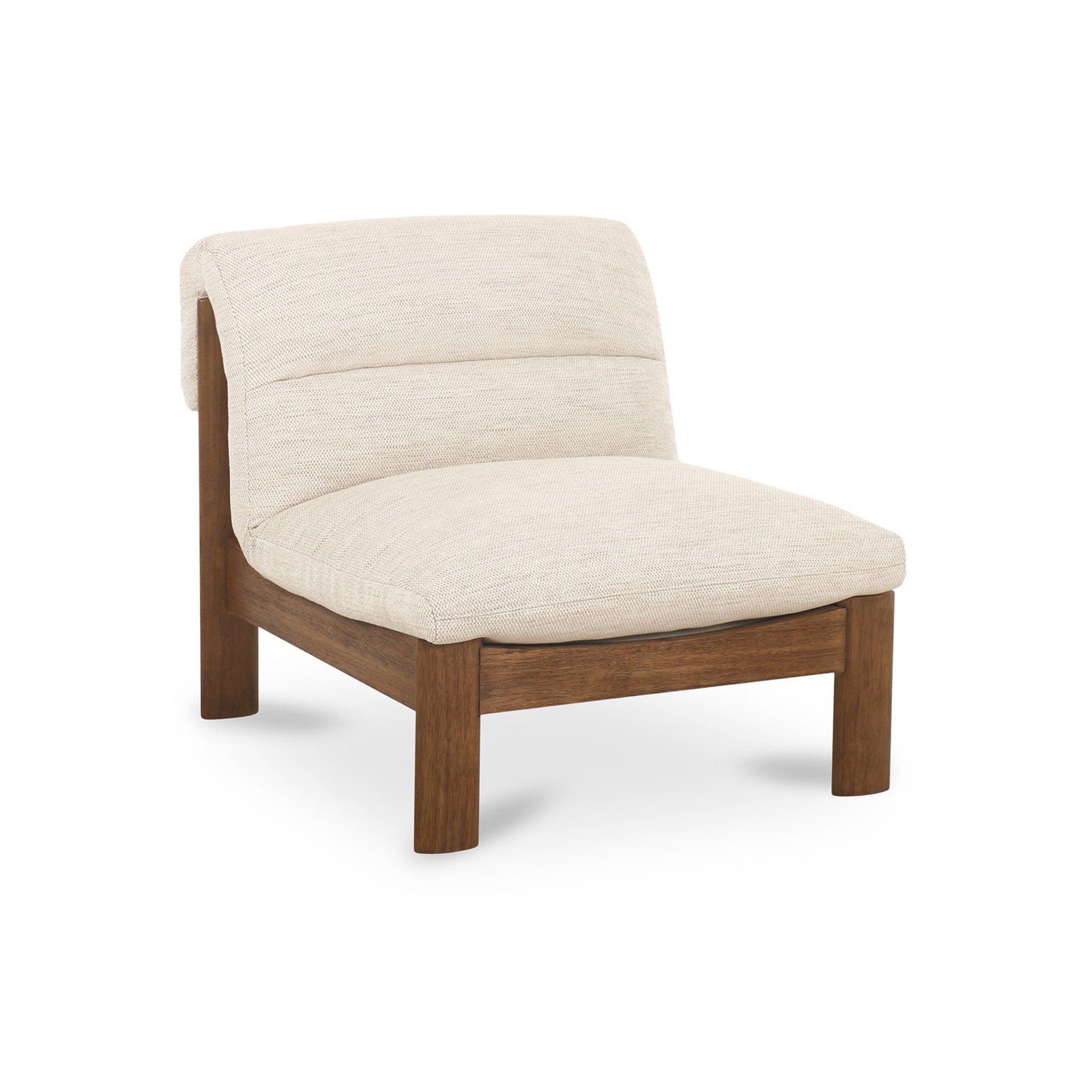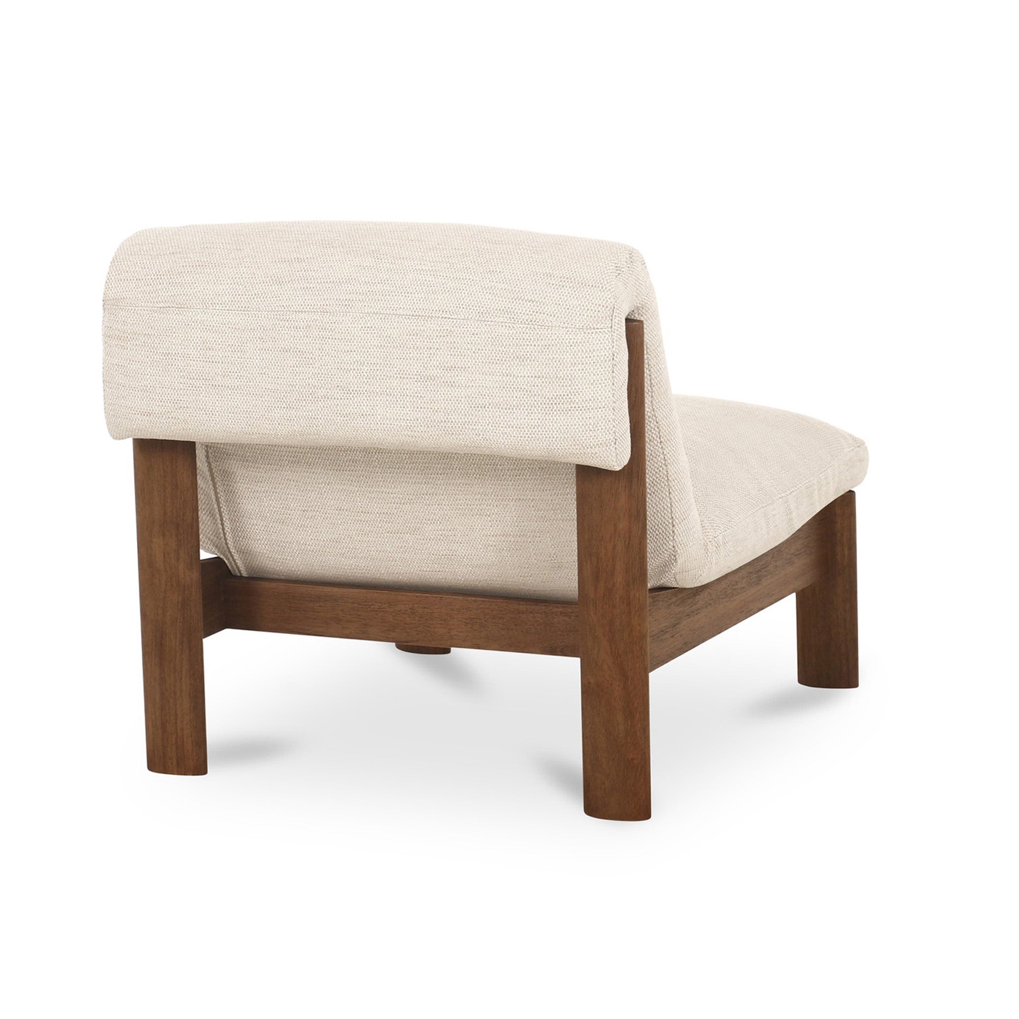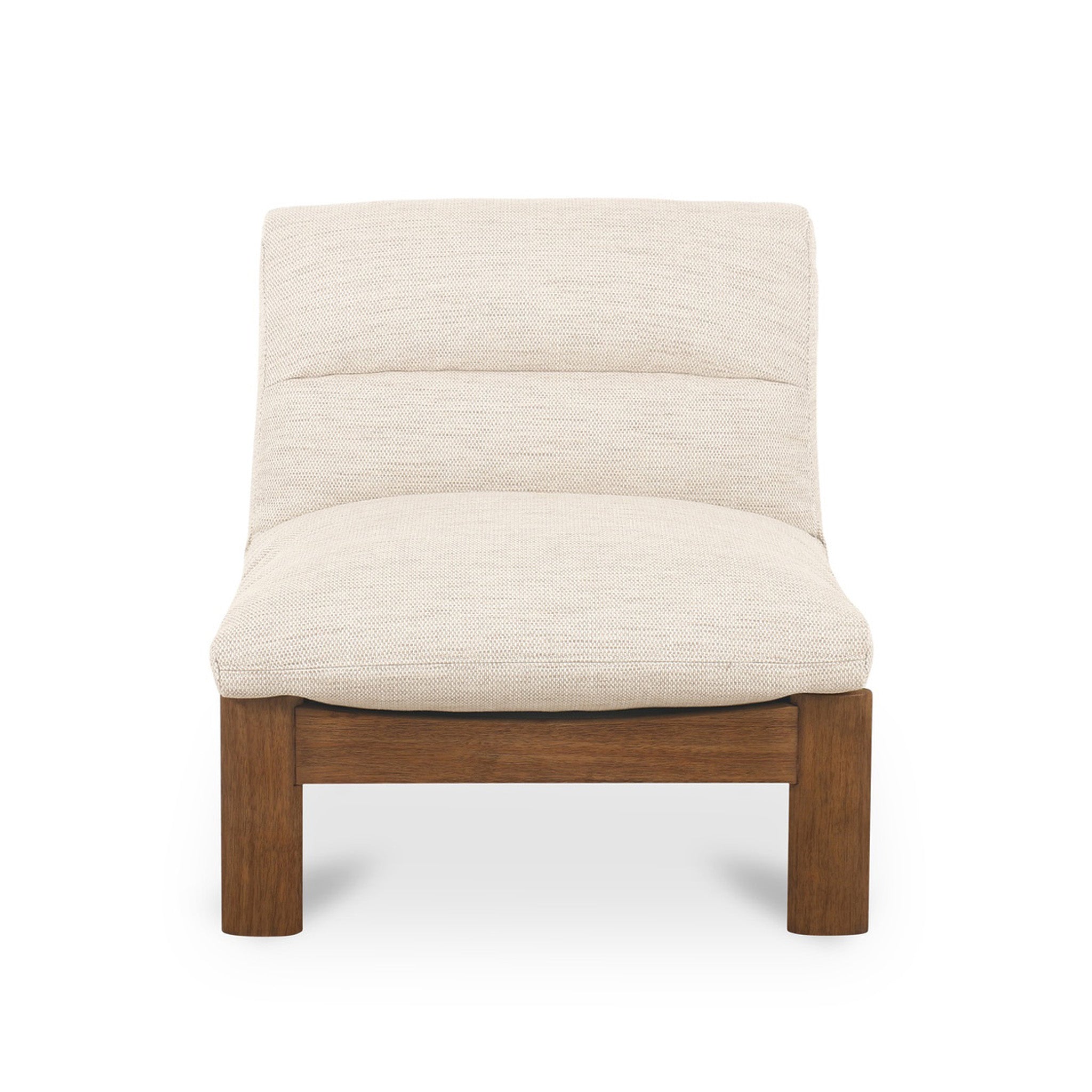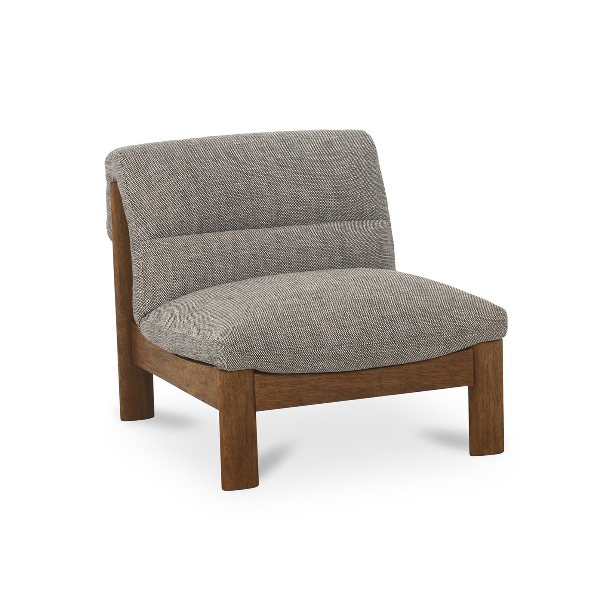 Folded to get noticed. Pierce leans into '70s spirit with its low profile, armless frame, and tufting. The foldover detail softens the structure, giving it shape and slouch in equal measure. Wrapped in a flecked fabric, it brings contrast with a solid wood base that keeps it grounded. The kind of seat that says, "stay a while"-and means it.