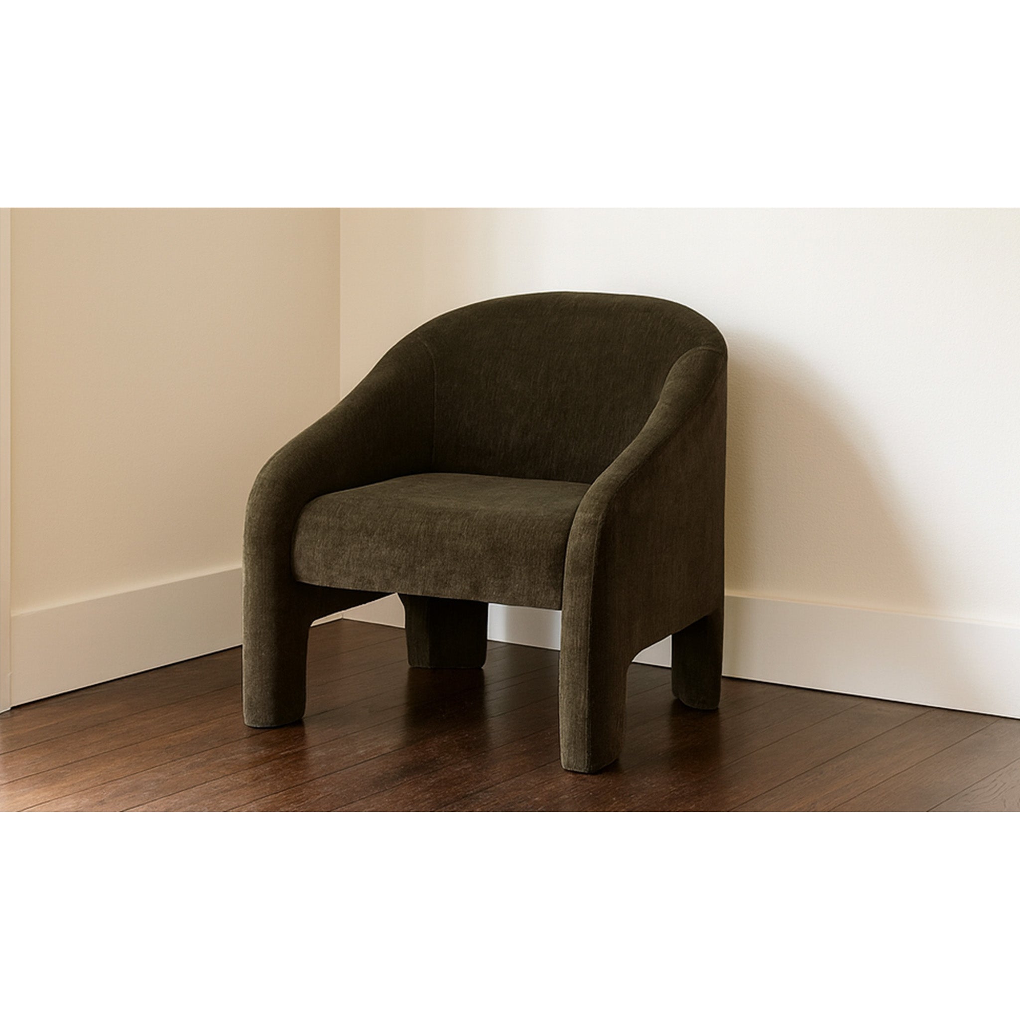 Meet the accent chair that knows how to work a room. The Tuva's sculptural curves and high back invite you to sink in while making a design statement all on their own. Upholstered in plush velvet with a soft sheen, it balances tactile richness with everyday durability. A sturdy plywood frame keeps the silhouette grounded while foam-and-fiber cushioning delivers lounge-worthy comfort. Bold yet approachable, Tuva is proof that function and form can both take center stage.
