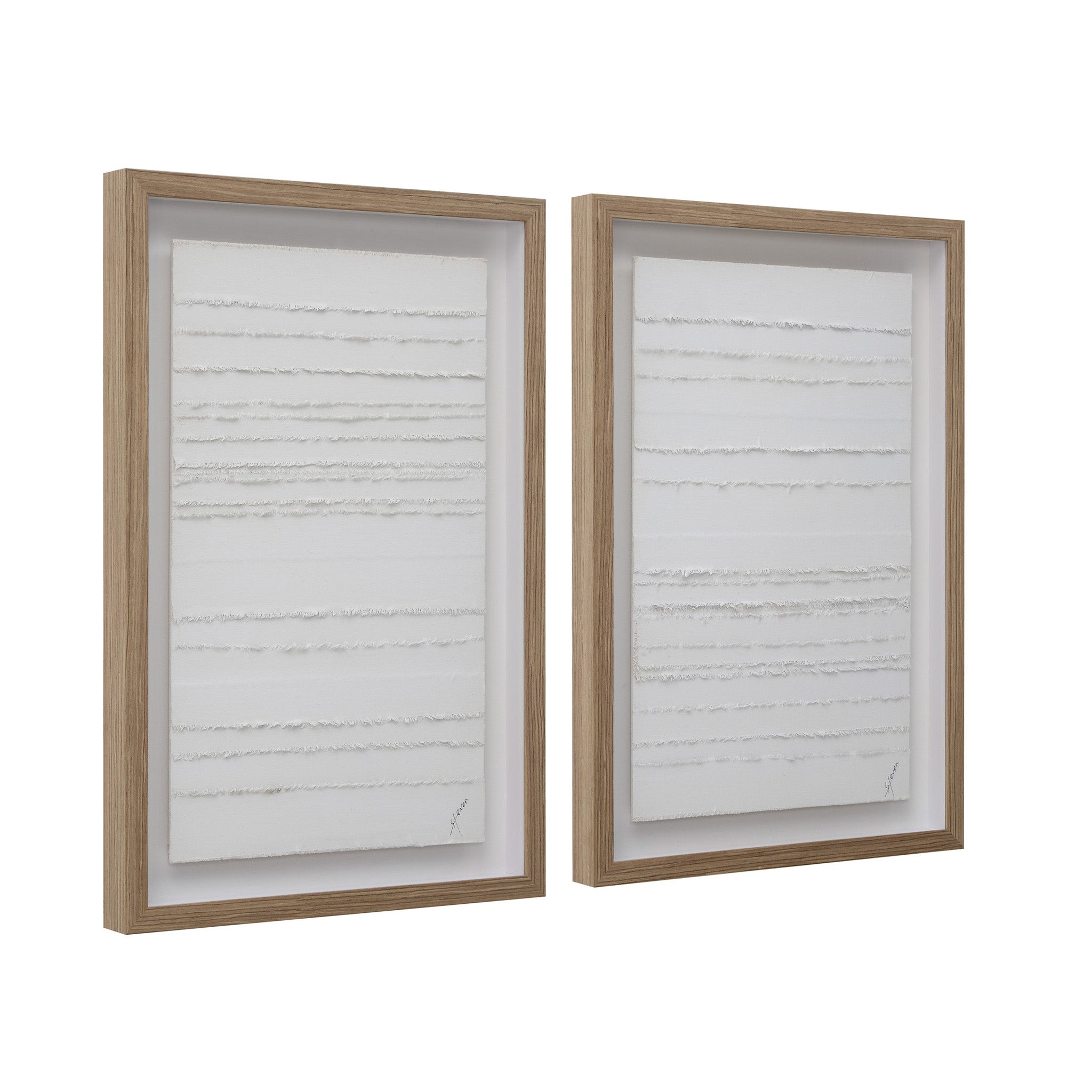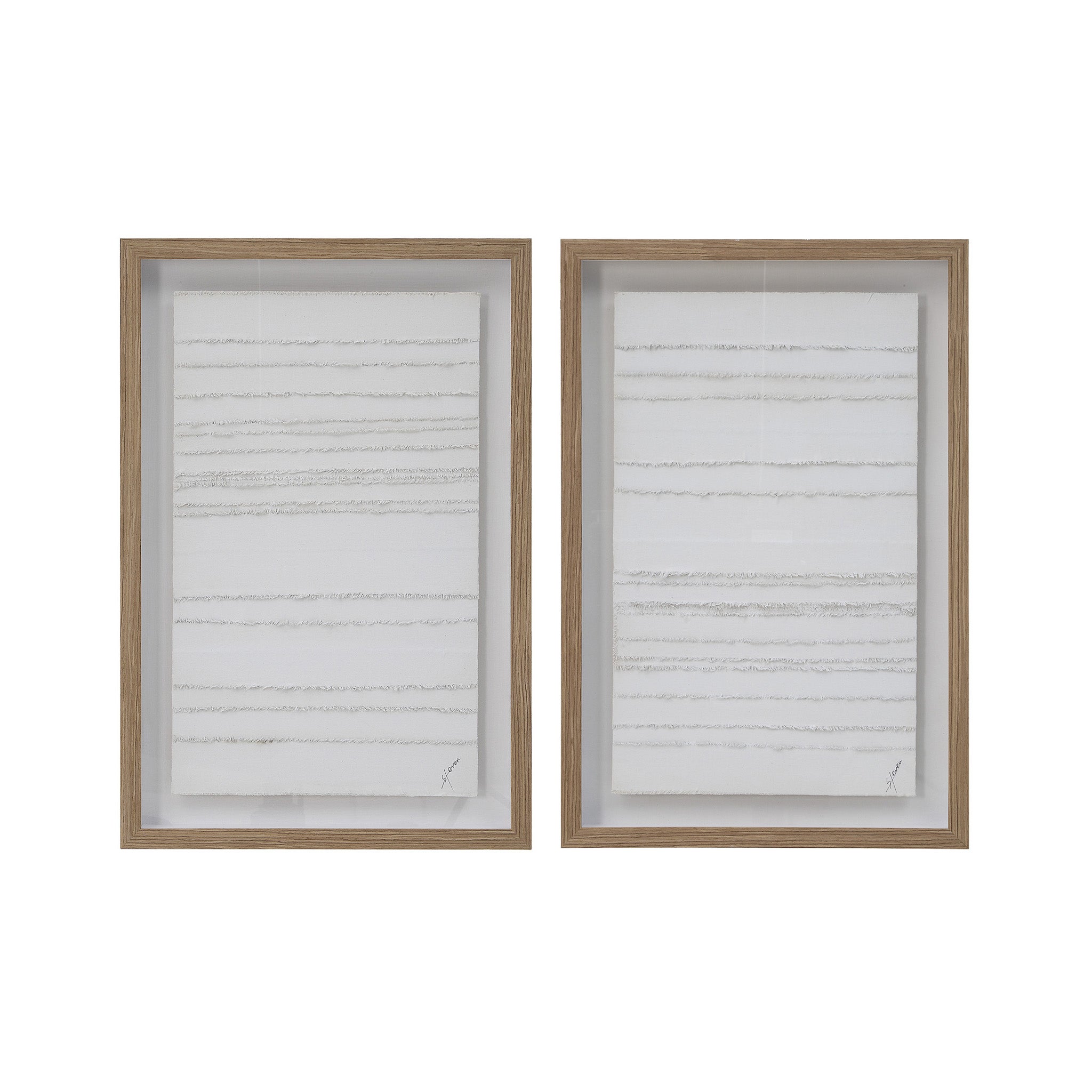 High style is a wrap when you have this unique wall art set from Canadian television host, artist and designer, Steven Sabados as part of your decorating plans. Each canvas is artistically wrapped with cotton strips, creating a textured base for its hand-painted finish. Encased under glass in a beautiful walnut shadowbox, it's perfect for putting the final touch on any room.