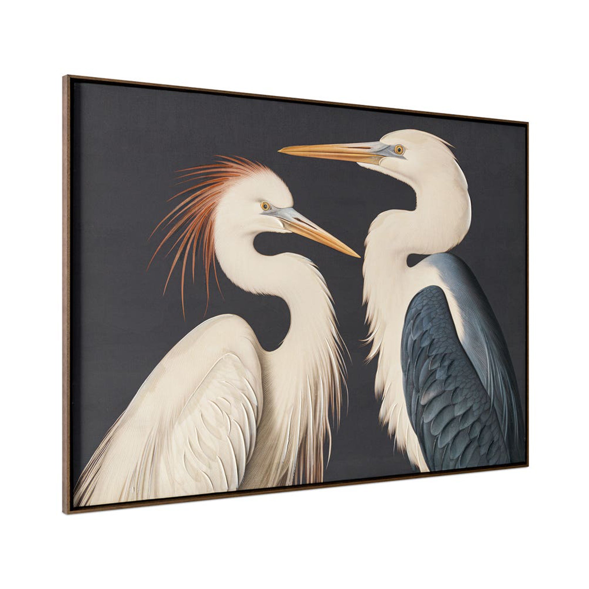 The Elegant Cranes painting weaves the elegance of the 1920s with its Art Deco inspiration. Acrylic on canvas breathes life into the majestic cranes, set against a backdrop of deep, expressive tones where dark meets light, offering a sophisticated narrative of beauty and heritage.