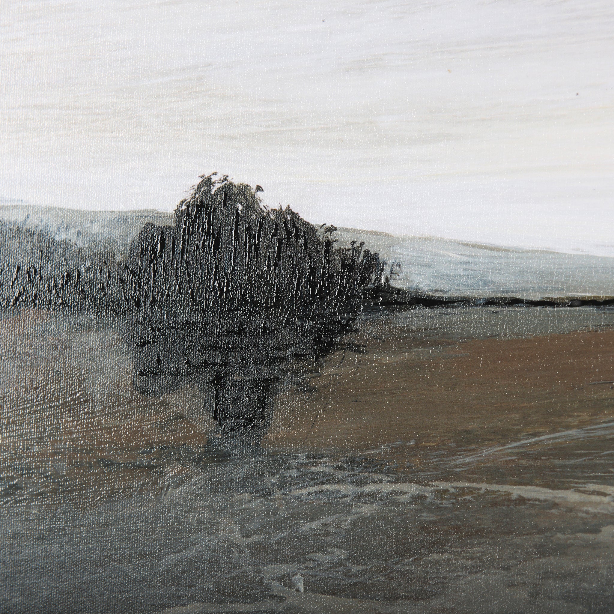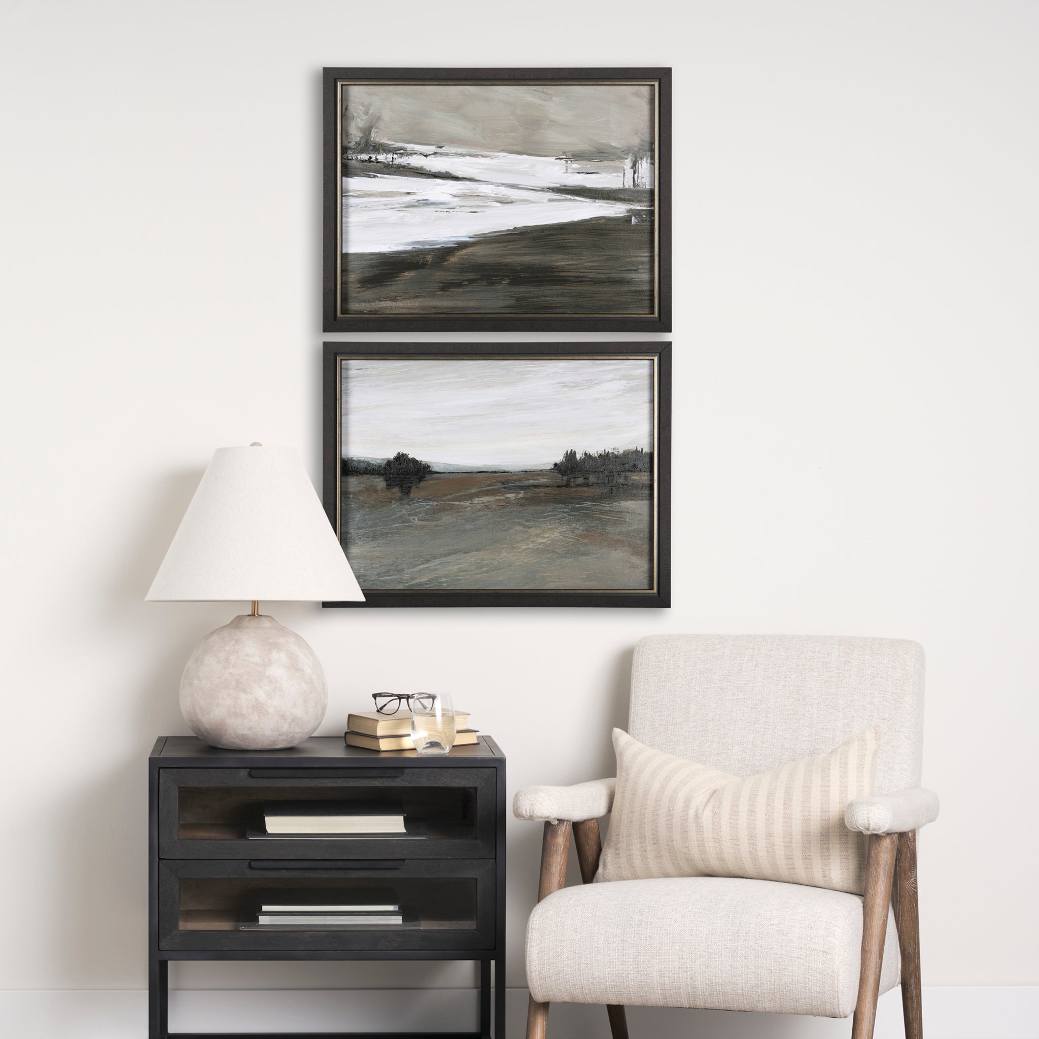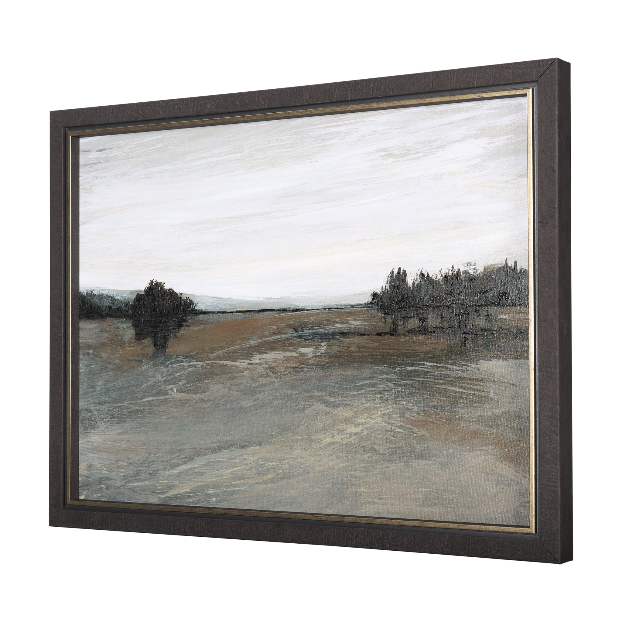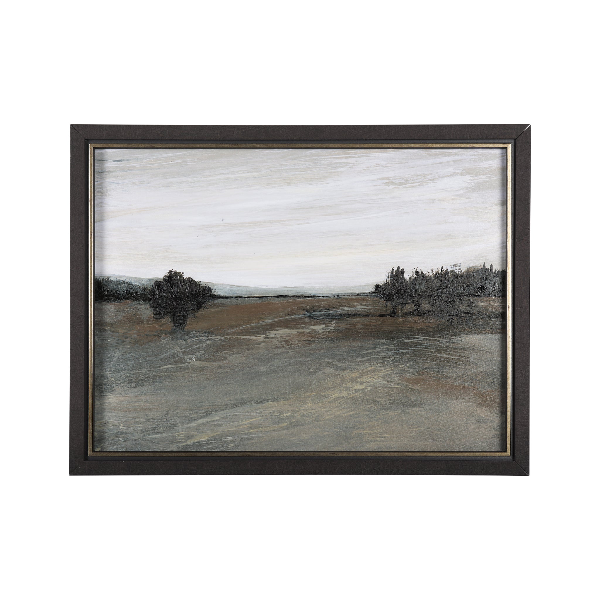 Bring a sense of vast tranquility to your walls with this captivating framed landscape art. Rendered in a serene palette of muted browns, greys, and pale creams, it depicts an open vista where a sweeping field meets a distant tree line under an expansive sky. The subtle brushwork creates a calming, textured scene, perfect for adding understated elegance and a feeling of quiet contemplation to any contemporary or transitional space.
