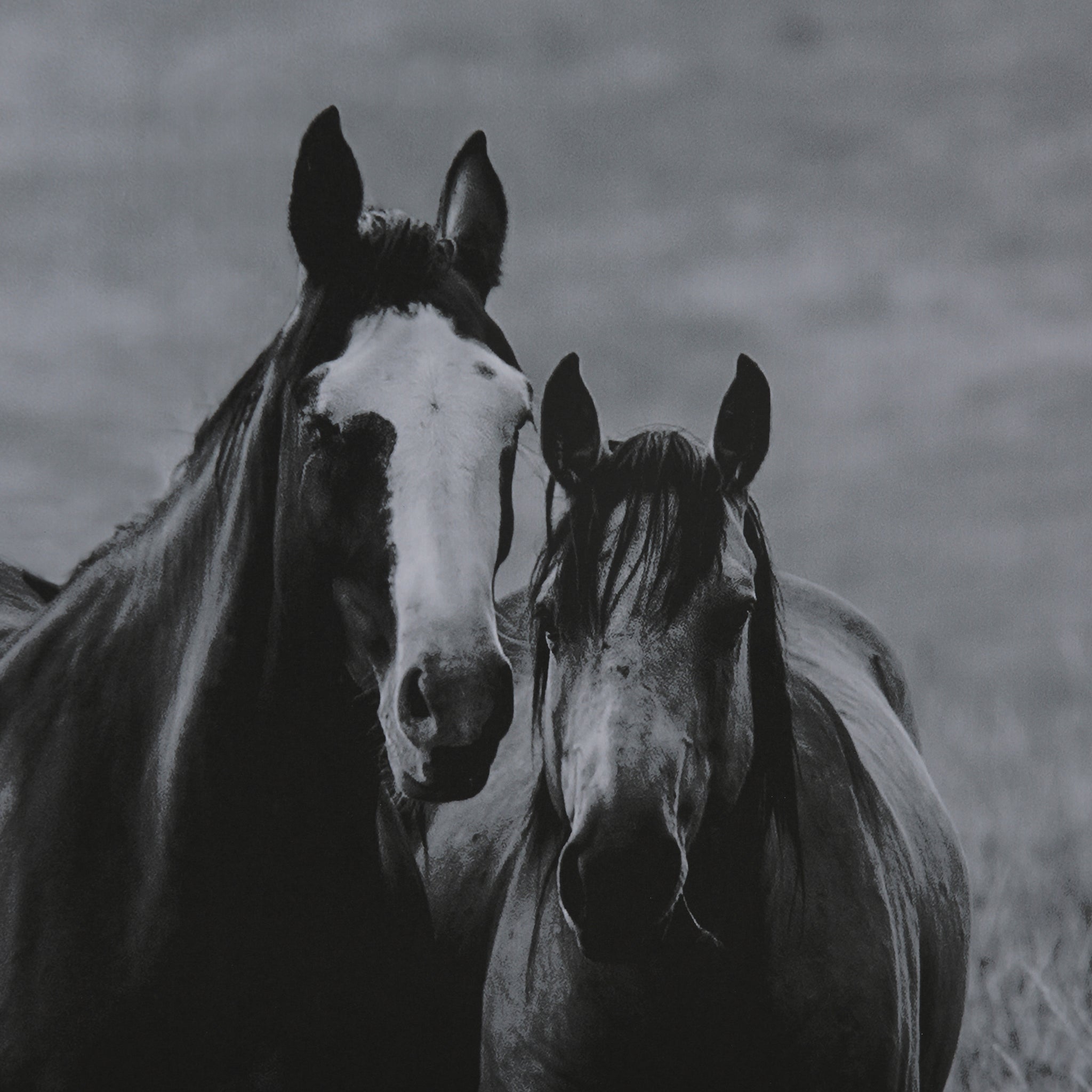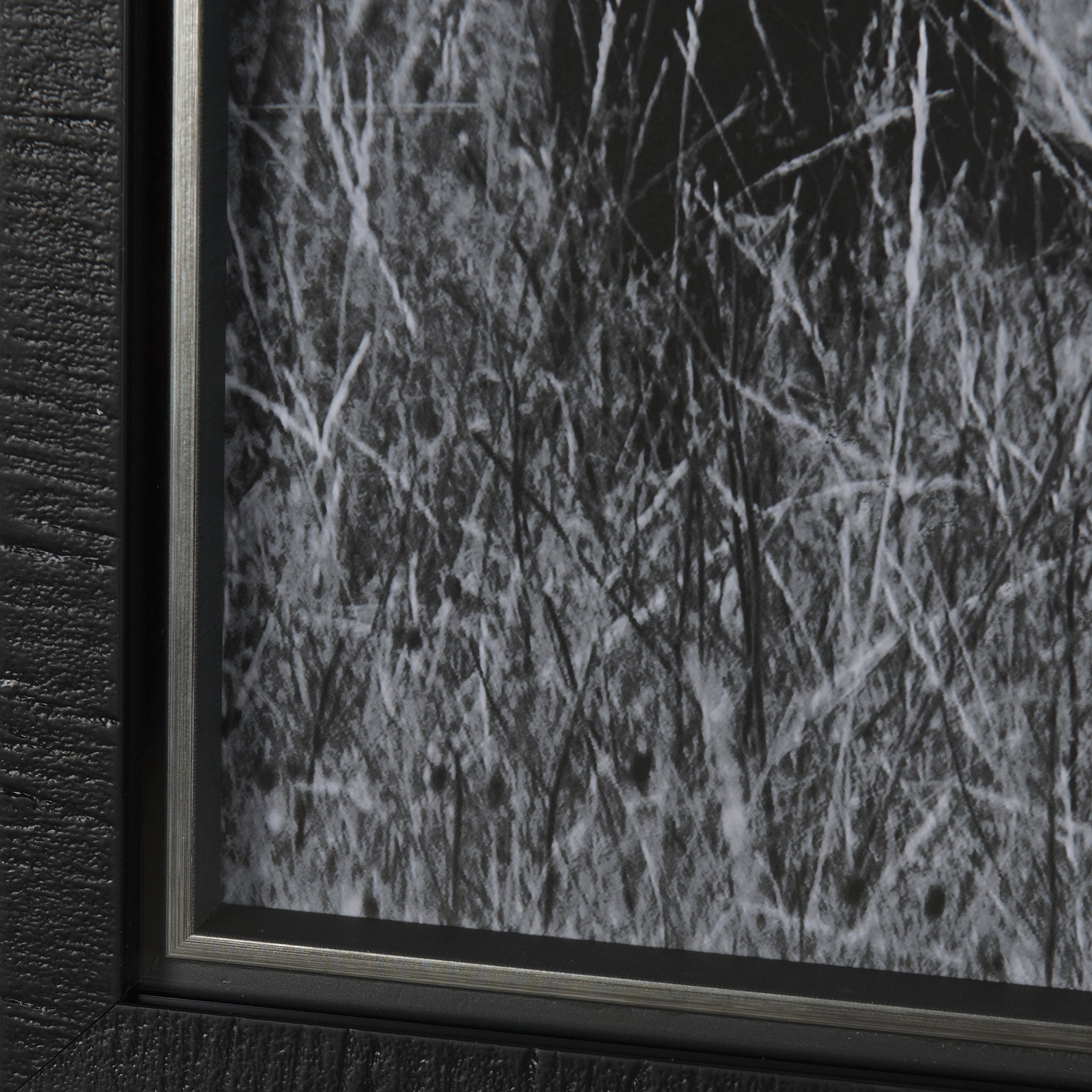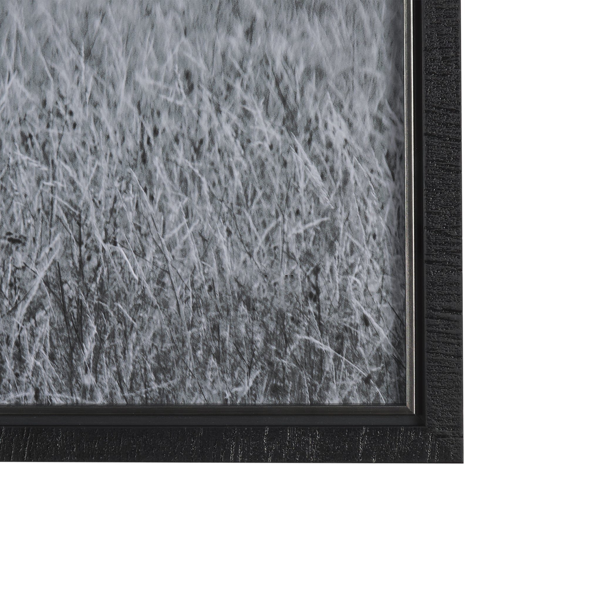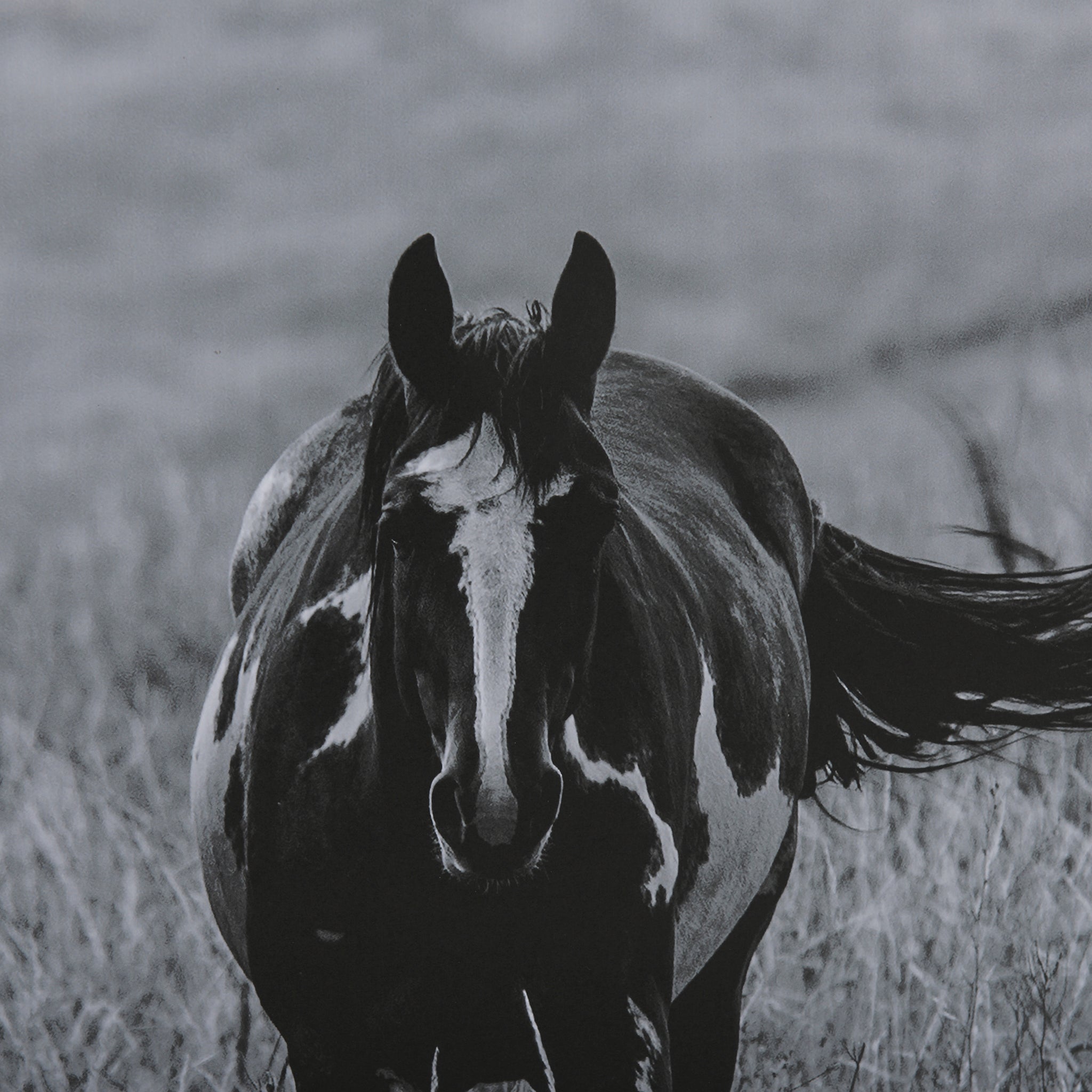 Bring the majestic serenity of the open plains into your home with this striking framed artwork. Captured in timeless black and white, three powerful horses stand amidst a windswept grassy field, evoking a sense of untamed beauty and quiet strength. This versatile piece adds a dramatic and classic natural element, perfect for a study, living room, or entryway.