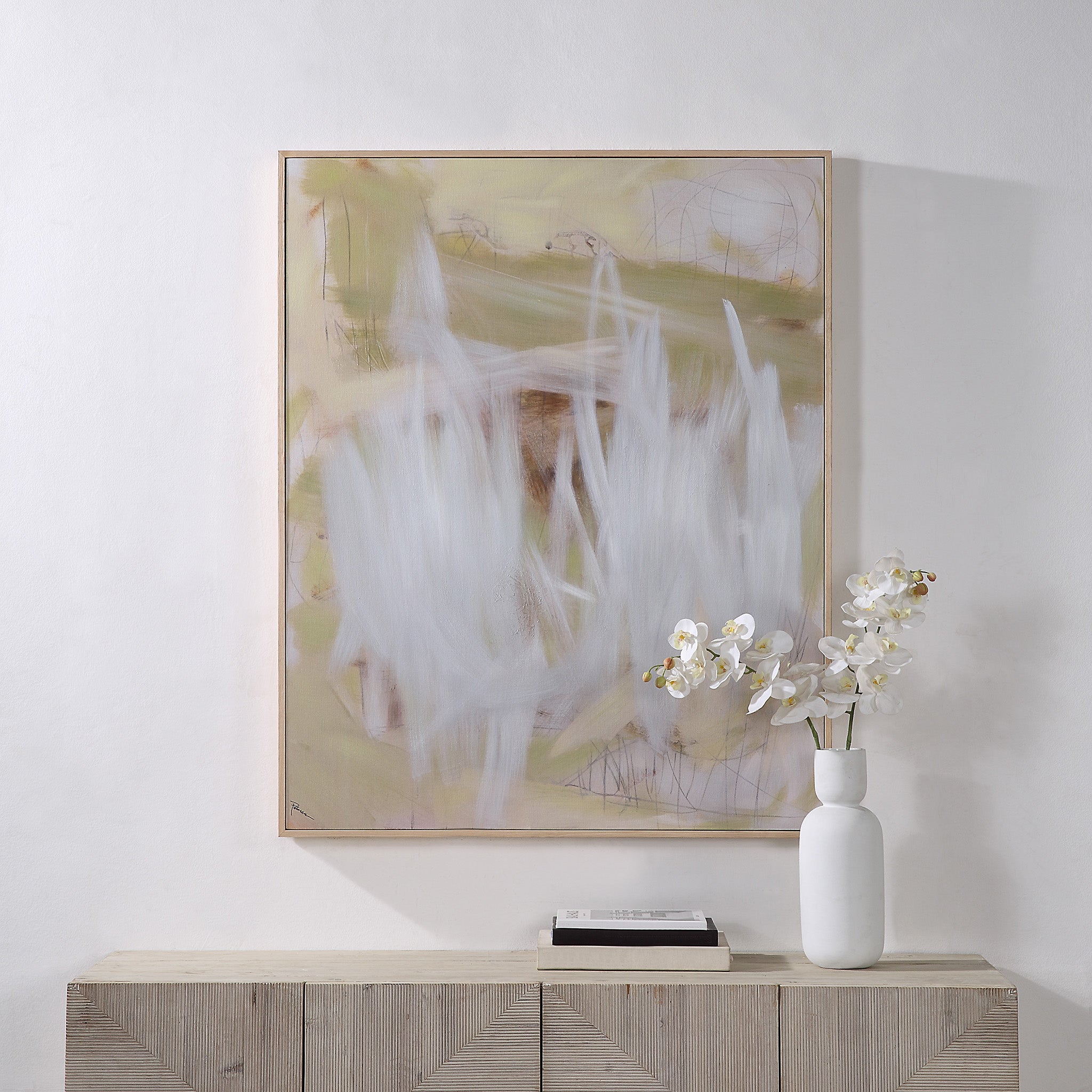 Add a touch of sophistication to your space with the Gary Canvas with Wood Frame. This high-quality canvas is made from 100% cotton and is hand-painted, ensuring that each piece is authentic and unique. The wooden frame perfectly complements the canvas, creating a seamless finished look that's both polished and sophisticated. With vertical and horizontal hanging options, this canvas is versatile and will enhance any space in your home or office. The canvas comes pre-framed for immediate enjoyment, making it the perfect addition to any art collection.