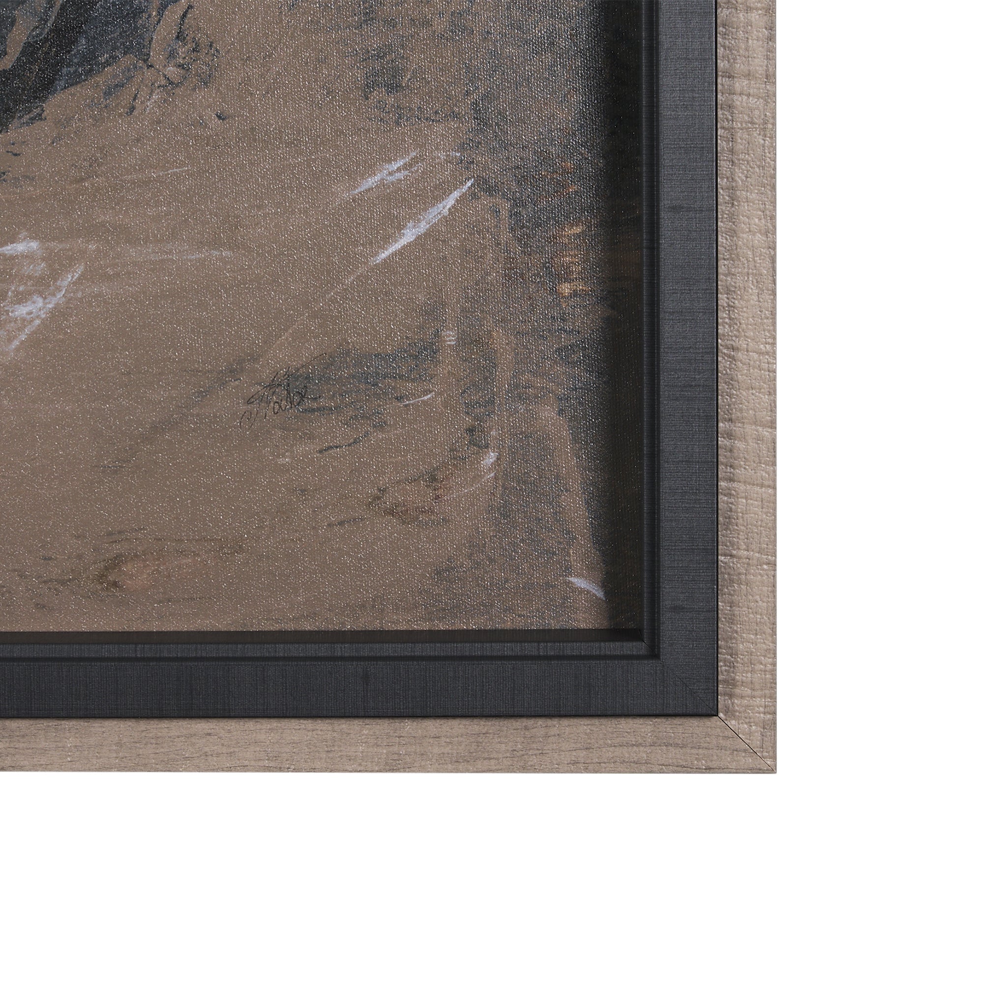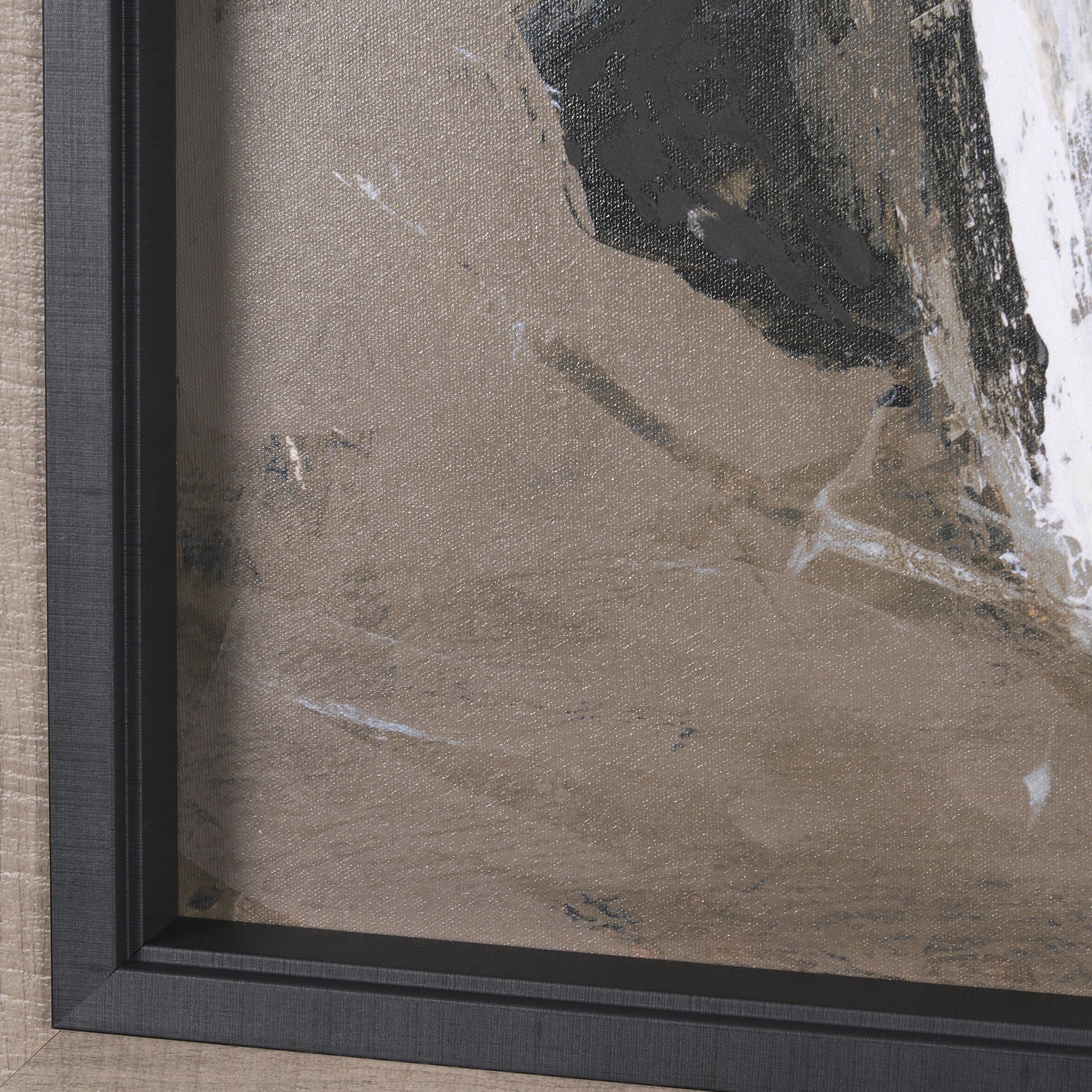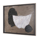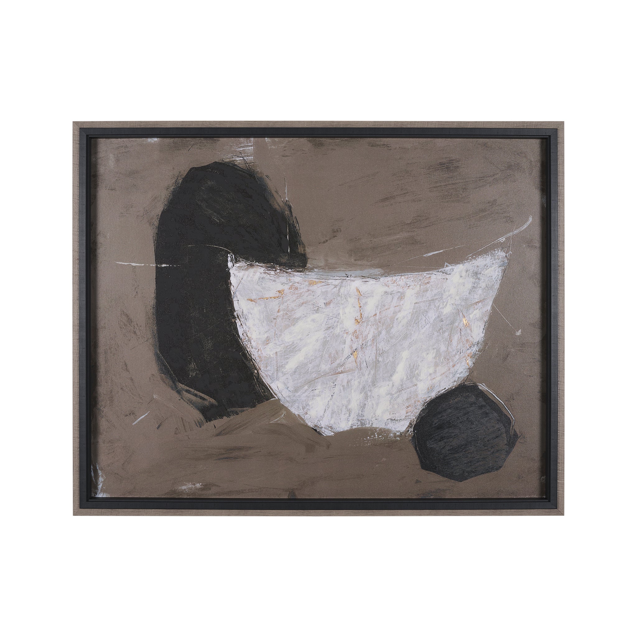 Introduce modern sophistication to your space with this captivating abstract artwork. Bold, organic shapes in stark black and textured white stand in striking contrast against a rich, muted taupe background, accented with subtle hints of metallic gold. This piece offers a dynamic yet balanced composition, perfect for adding an artistic and contemporary focal point to any room.