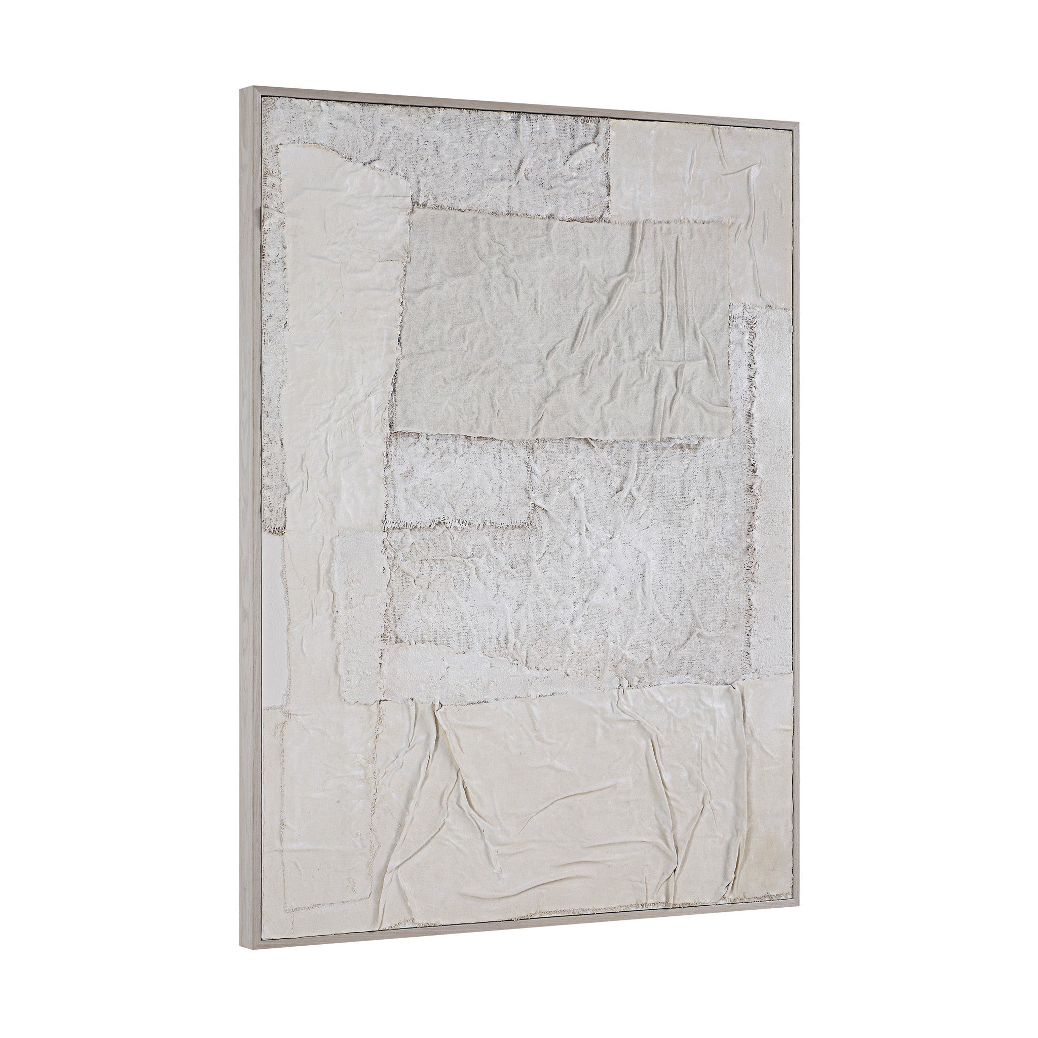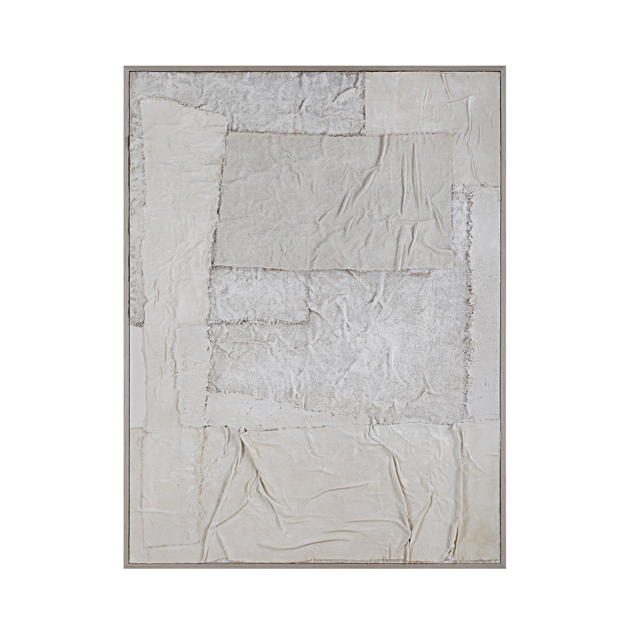 A vision in mixed media, this canvas wall art is poised to deliver modern style to your decorating scheme. Framed in light walnut, this collage blends burlap, cloth and paper to create a striking impact that's perfectly at home in contemporary settings.