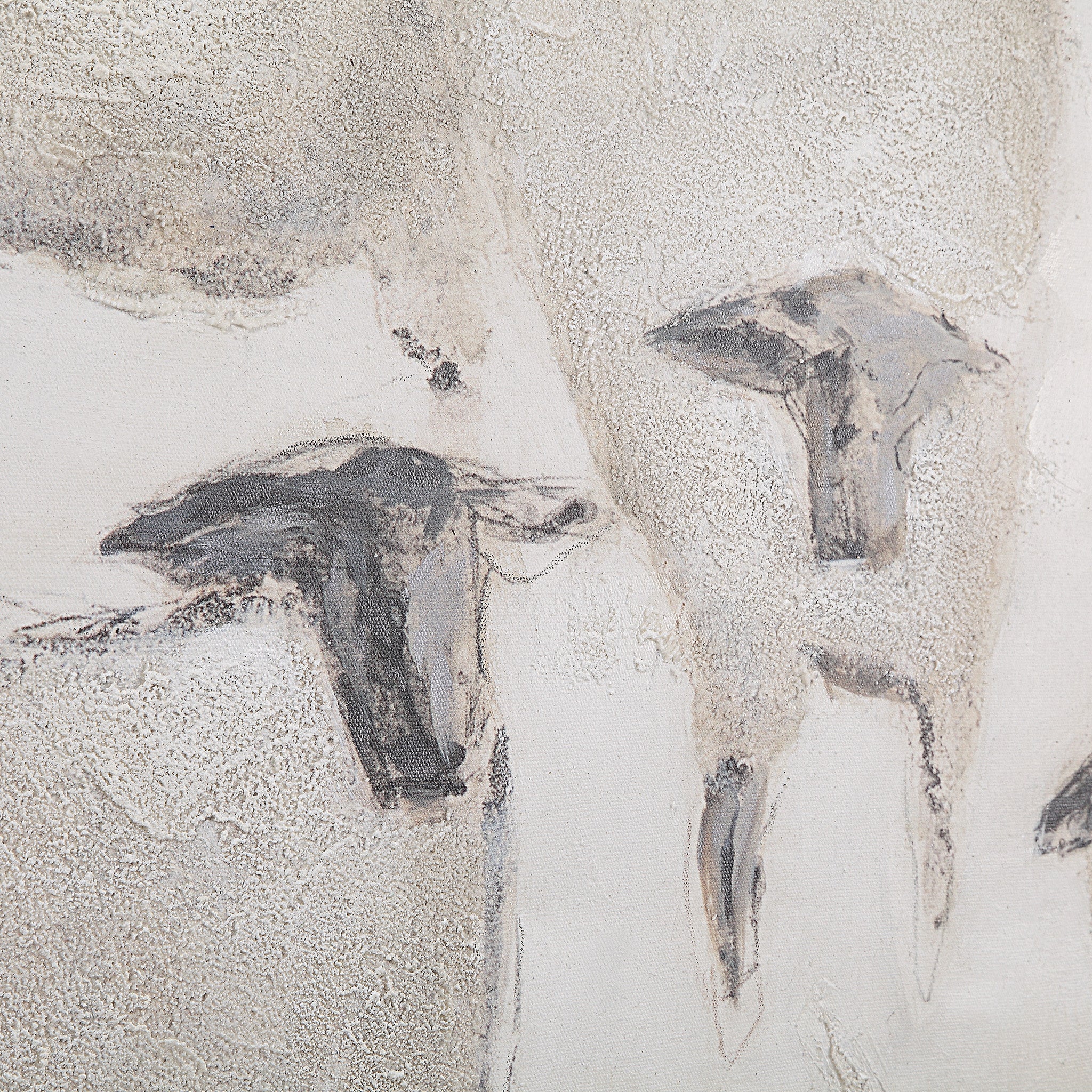 Enhance the aesthetics of any room with the Jesse Canvas in Dark Grey. The art piece is skillfully crafted with high-quality canvas and durable wood frame, ensuring its lasting elegance and durability. Its rich dark grey color adds depth and dimension to the painting, making it a great statement piece. The 100% hand-painted design offers a unique and one-of-a-kind artistry, meaning no two pieces are alike. The seamlessly finished continued edges give it a polished look from every angle, while horizontal hanging options provide versatility in how you choose to display it. The versatile size also allows for easy placement in any room, be it a living area, bedroom or study.