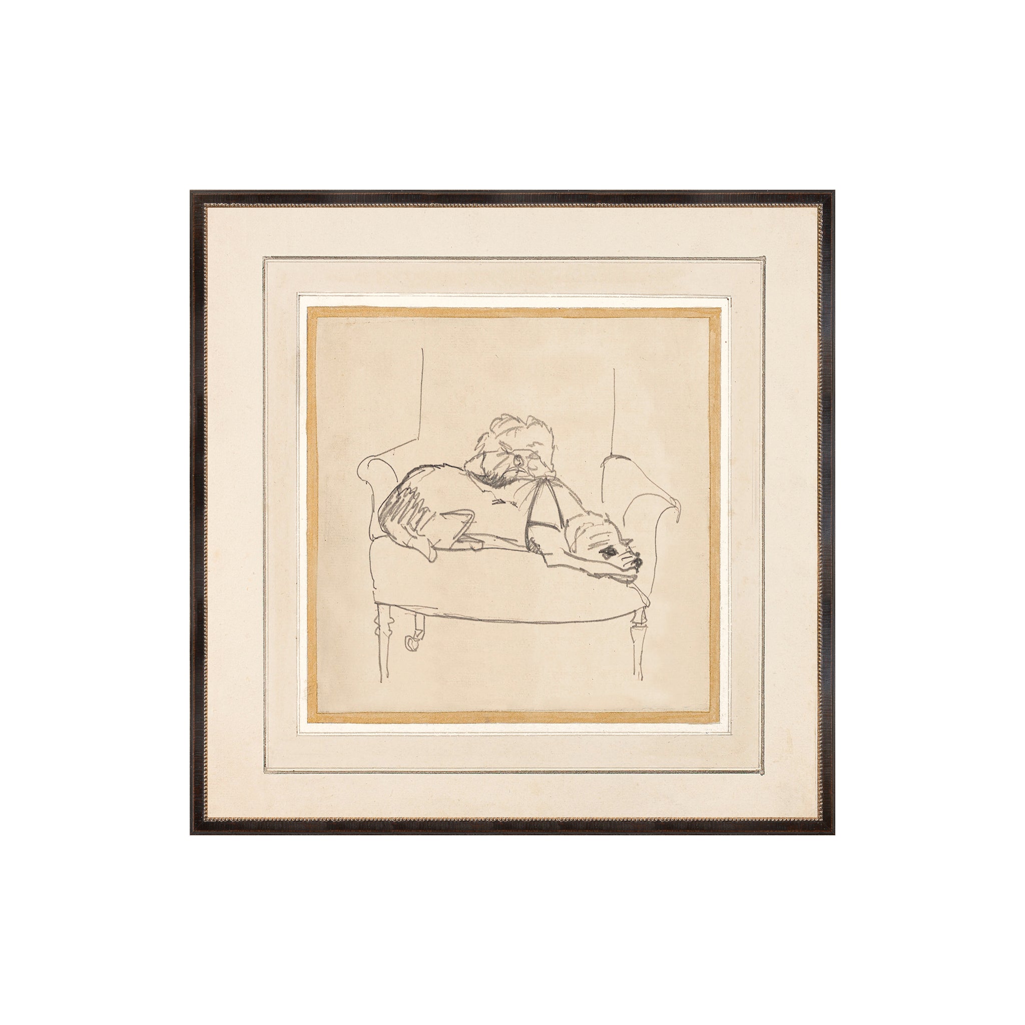 Simple yet charming, you'll fall in love with the innocence of this loose pencil drawing. Featuring two dogs happily cuddling on an armchair, this petite sketch is complemented by a dark wood frame with beaded detailing, giving it an impressive presence. Add some personality to a cozy corner or group this piece with others to make a bigger statement, but either way, this artwork is your perfect accent piece.