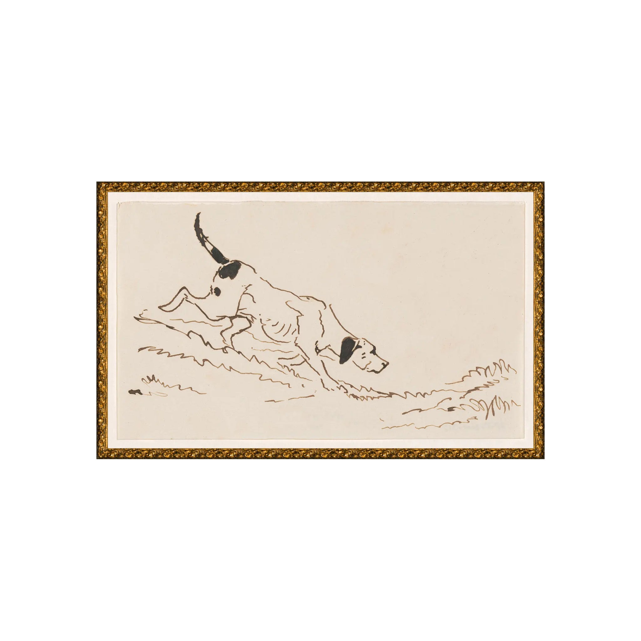 The simplicty and precision of this pen and ink sketch go hand in hand, depicting a hunting dog in action. The details and personality of this hound are expertly captured in neutral tones and complemented by an ornate frame - a beautiful addition to your decor. The Hound Dog will give character to any room, but to make an even bigger impression, group it with other stunning pieces from the Jovian Series.