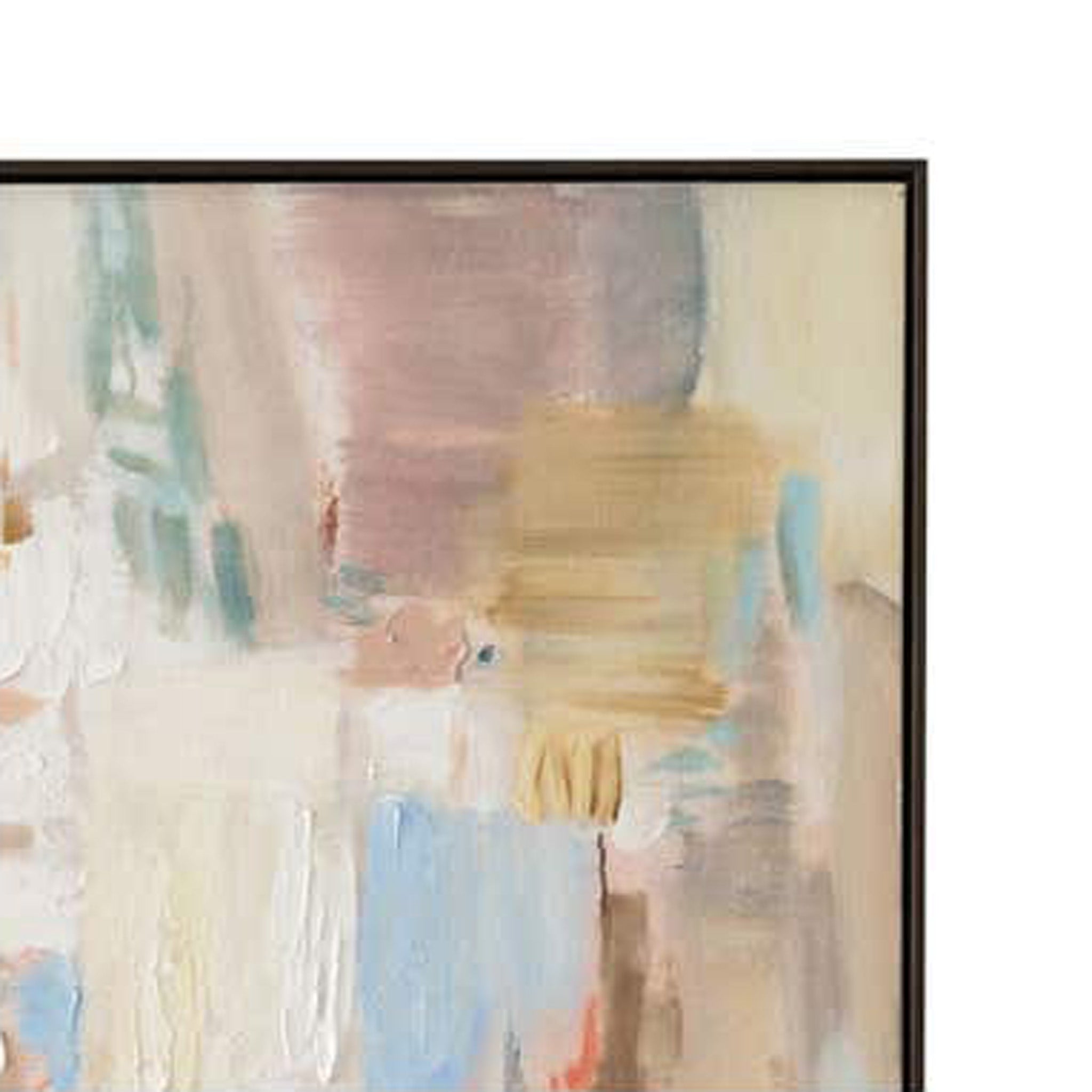 When your neutrals need a little light. Lumen brings softness and subtle surprise to the walls, layered pastel tones, tactile brushwork, and just the right pop of blue to keep things interesting. Its abstract composition is warm but weightless, with a neutral palette that still manages to glow. Gentle, modern, and full of texture.