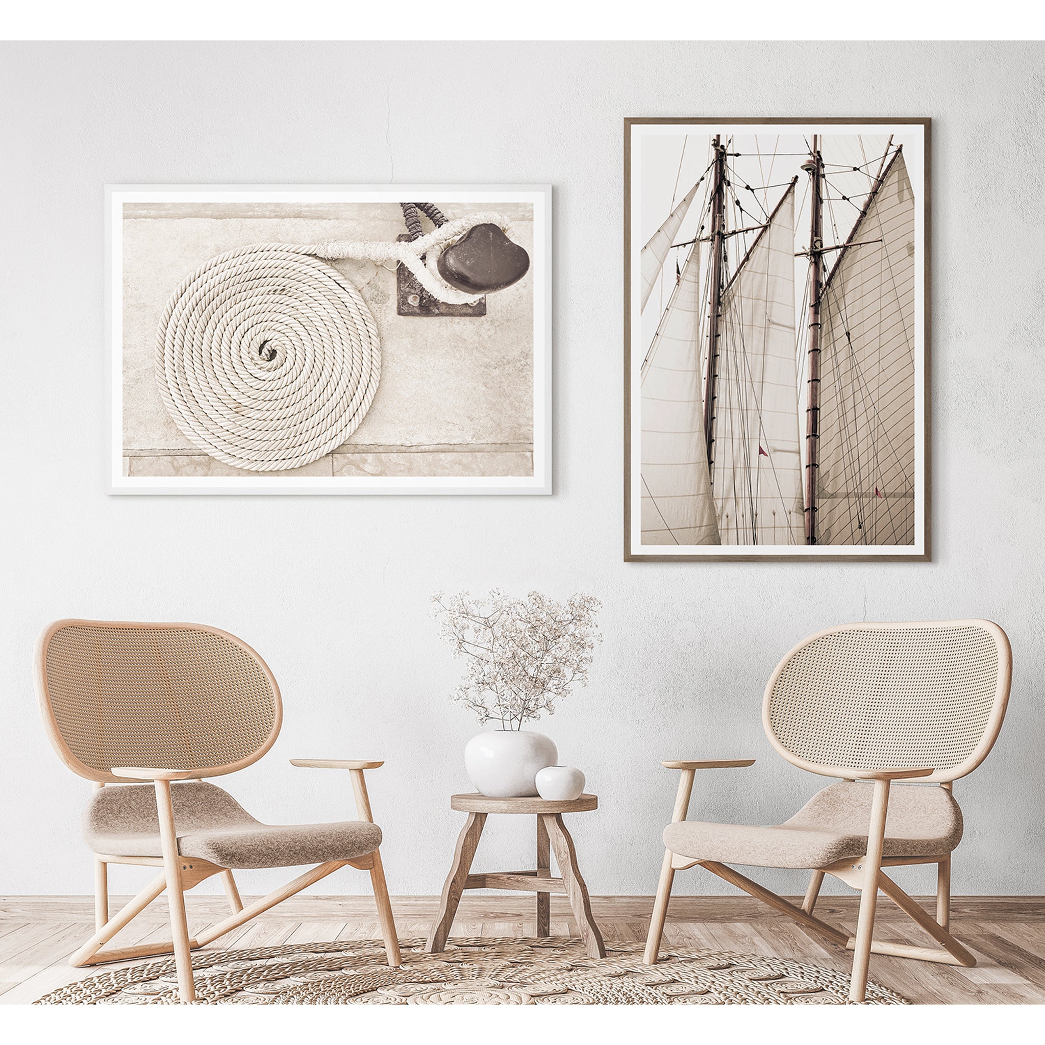 This captivating collection of nautical photographs beautifully captures the intricate details of maritime life, each image telling its own story. Tied together by a harmonious color palette of weathered browns, the photographs evoke the rich textures and timeless charm of the sea.