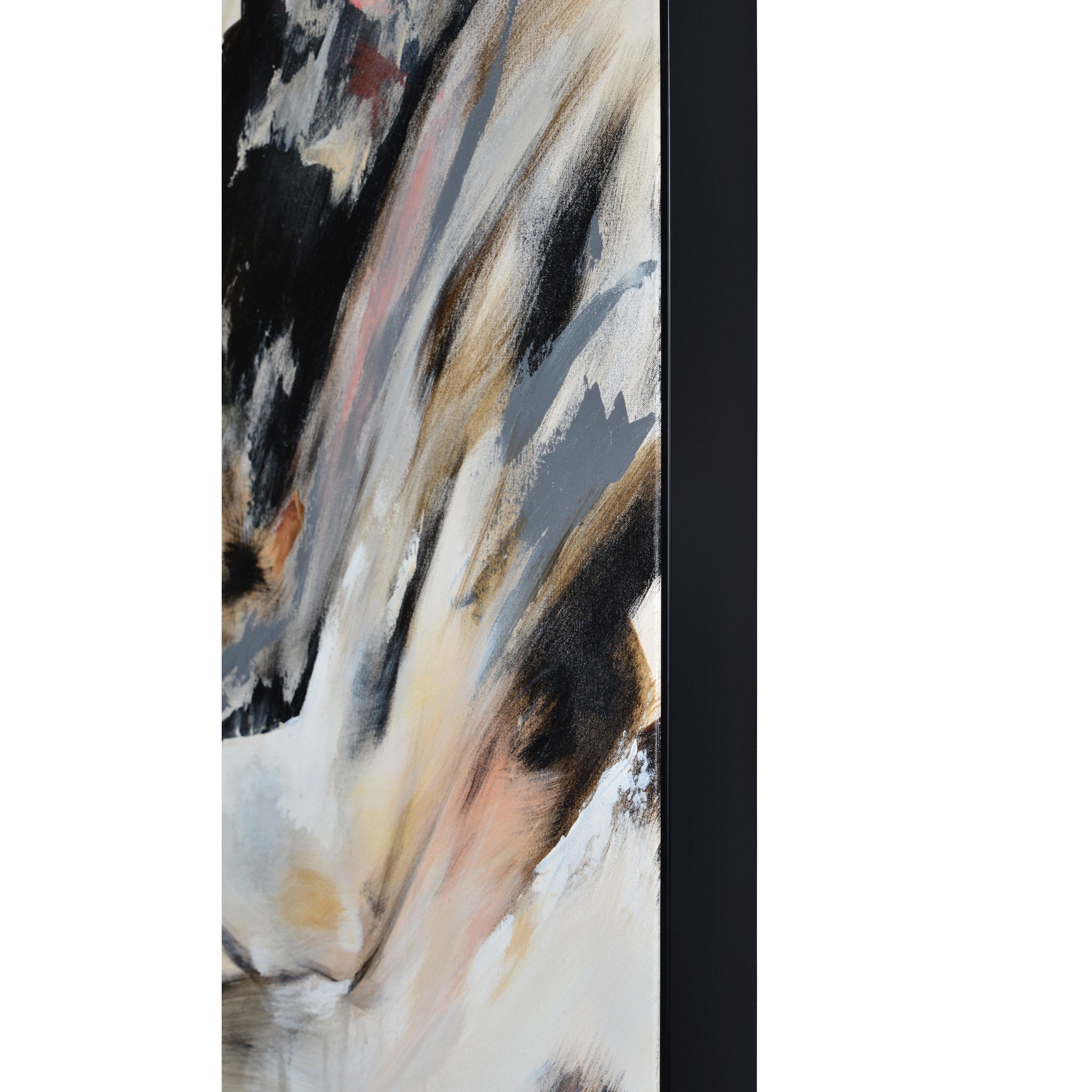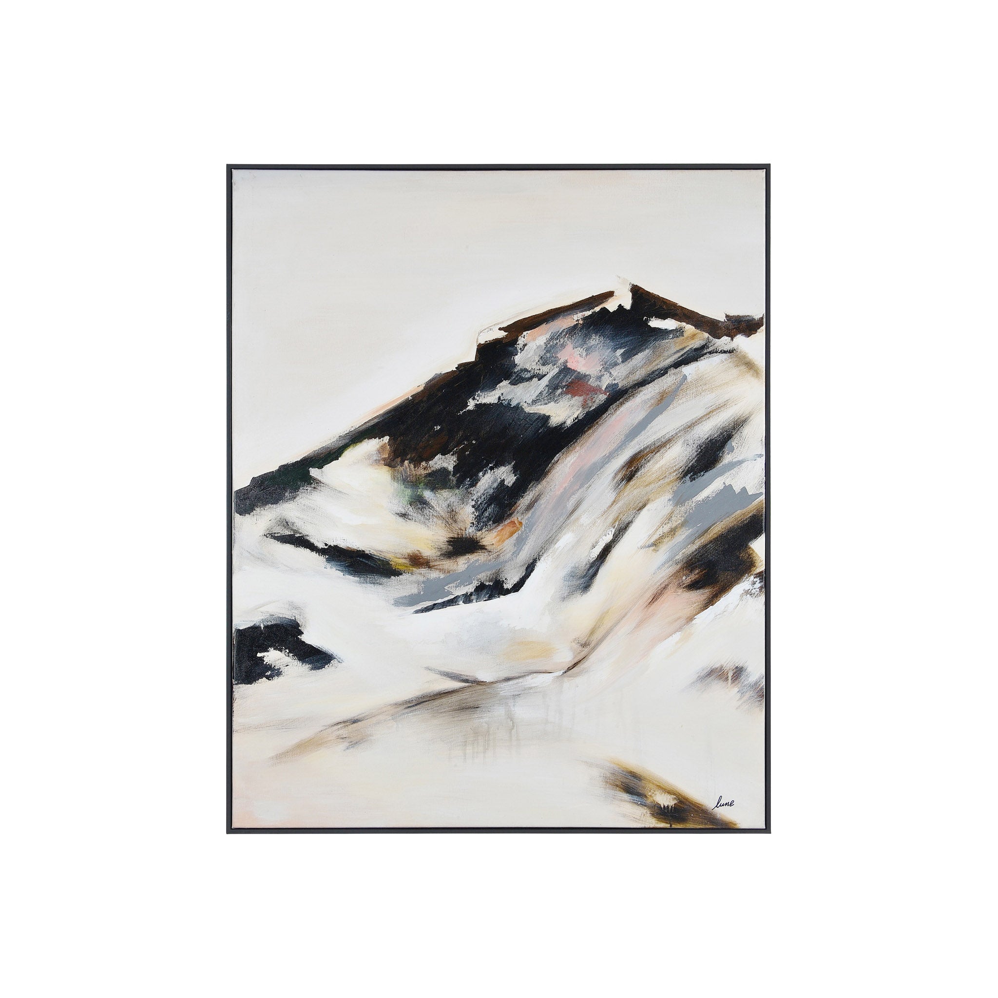 A modern mountain fit for city dwelling. This hand painted abstract mountain is both modern and inviting. The black framed canvas looks smart over a bedroom dresser or desk.