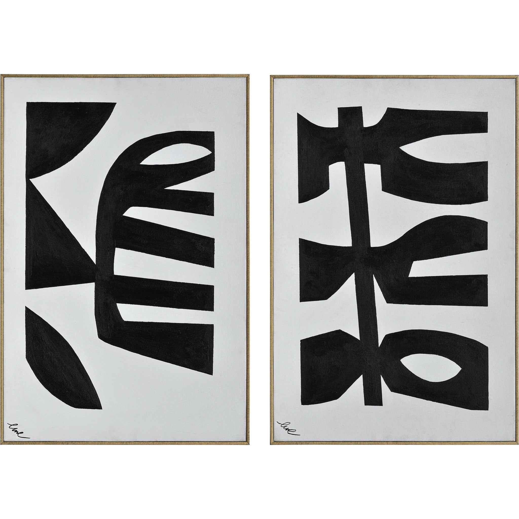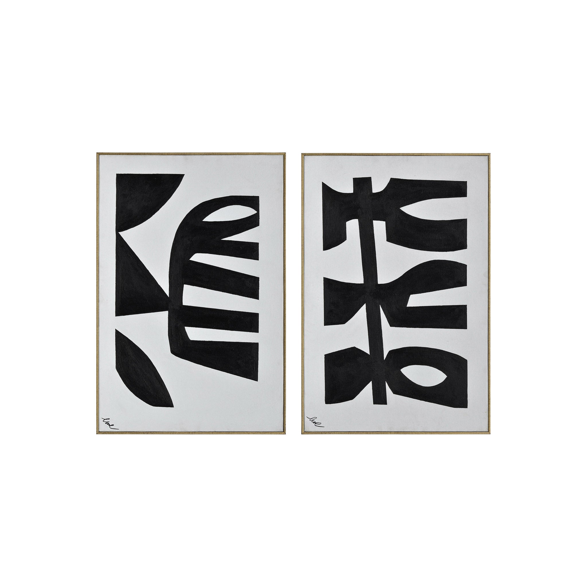 This set of graphic paintings on Cotton Canvas add a bold touch to the mid-century modern living space. With strong black lines creating shapes akin to leaves on a vine, their vivid designs have a familiar quality. Hang them together or separately within the interior, for a dose of personality.