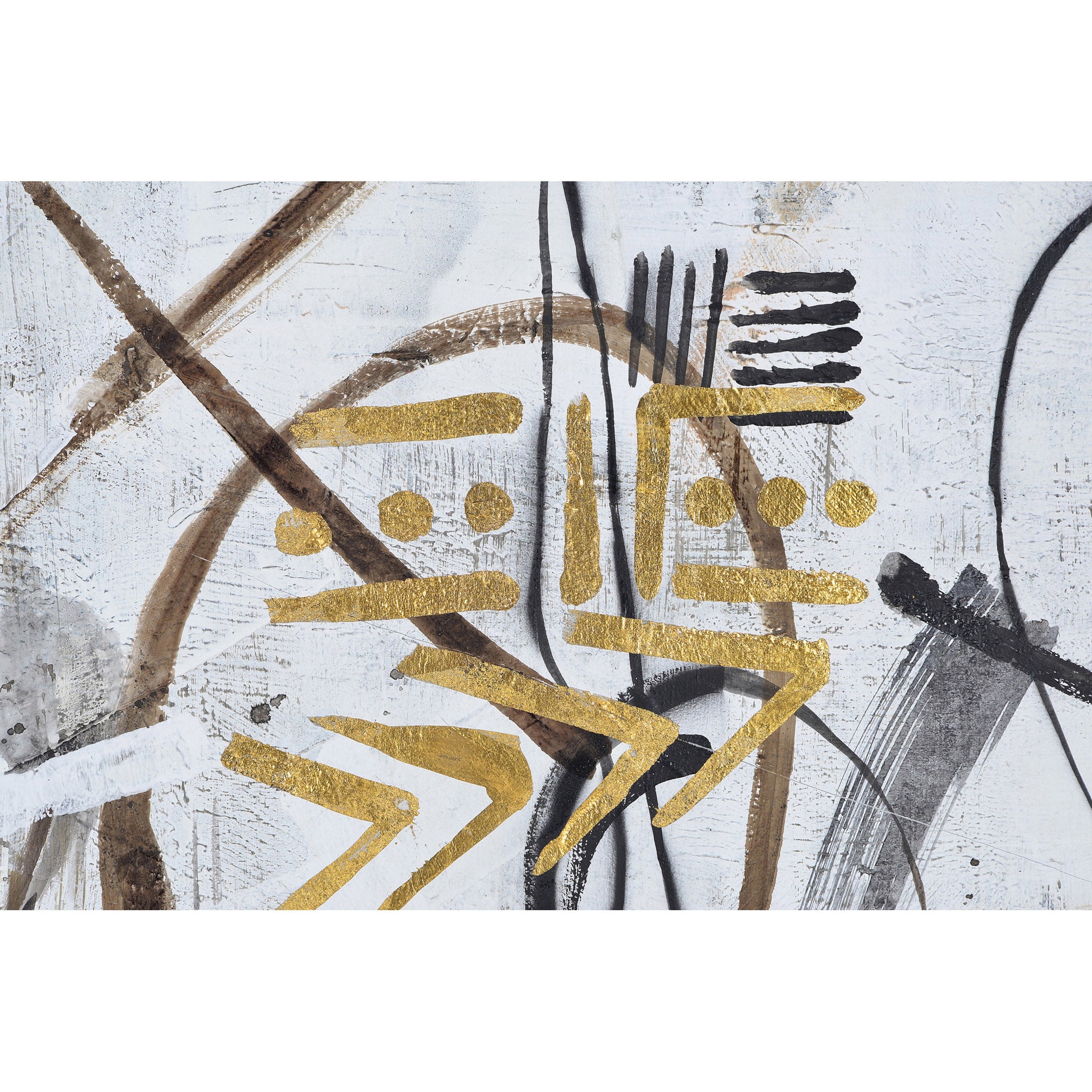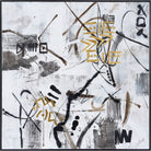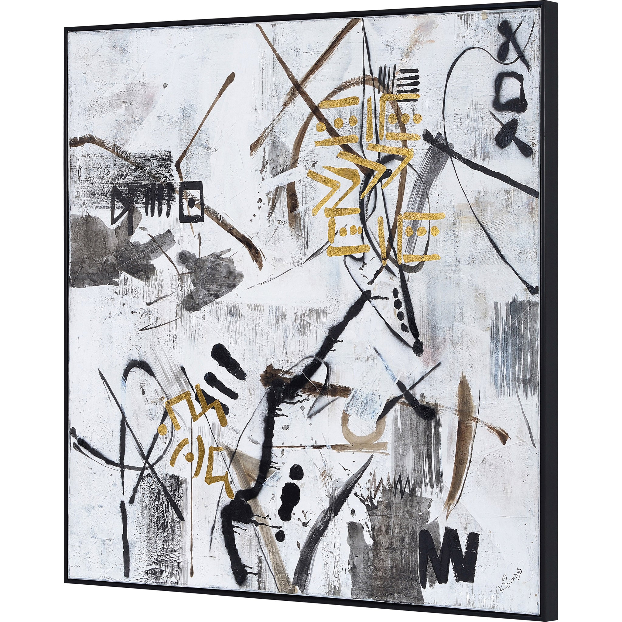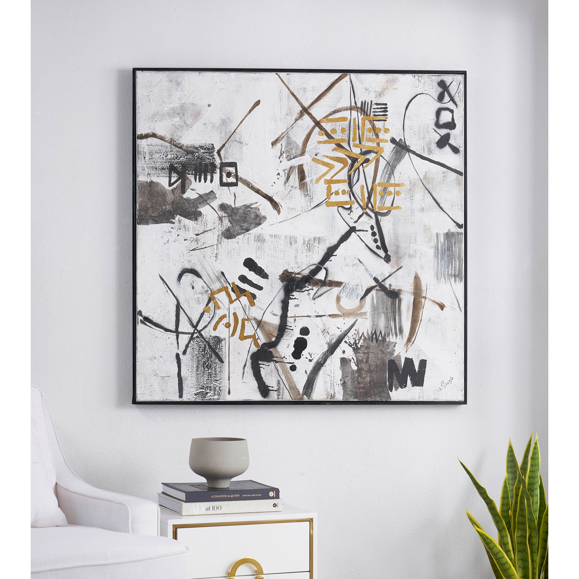 The modern interior takes on an artistic urban energy with this piece of textured art. Set against a square Cotton Canvas, the captivating graffiti-style prints intertwine with glimmers of golden sheen. While abstract in design, its blend of elements allows one to create their own story from its imagery.