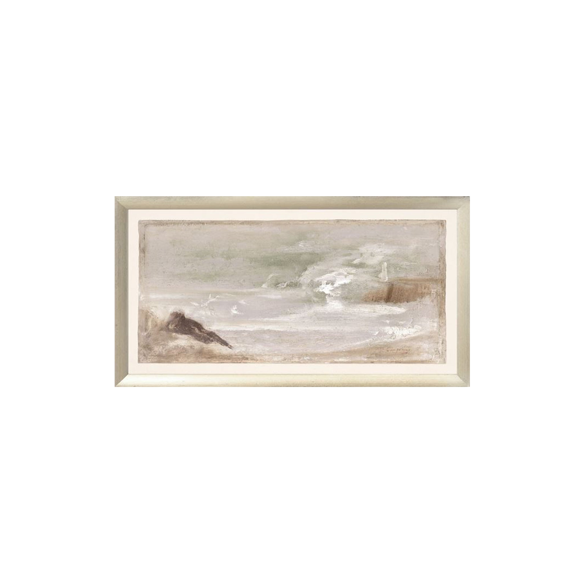 A muted champagne wood frame subtly compliments the neutral blue-grey of crashing waves and sky captured in this painting by French sculptor/painter Jean-Baptiste Carpeaux. Wonderfully evocative, this piece is a textural element to add life to any space.