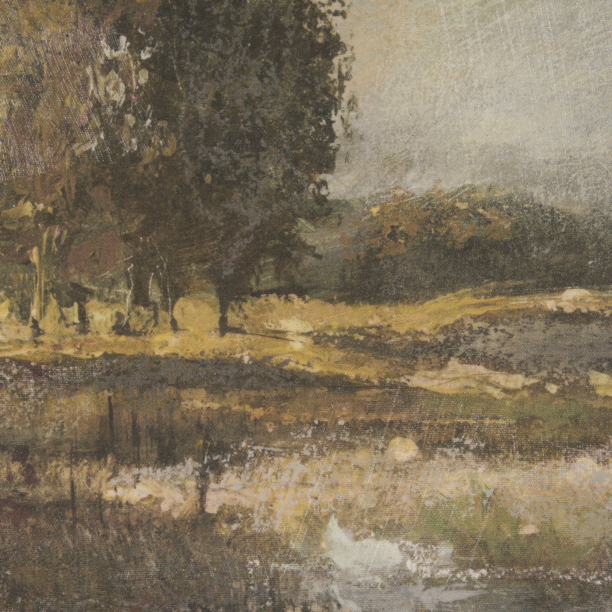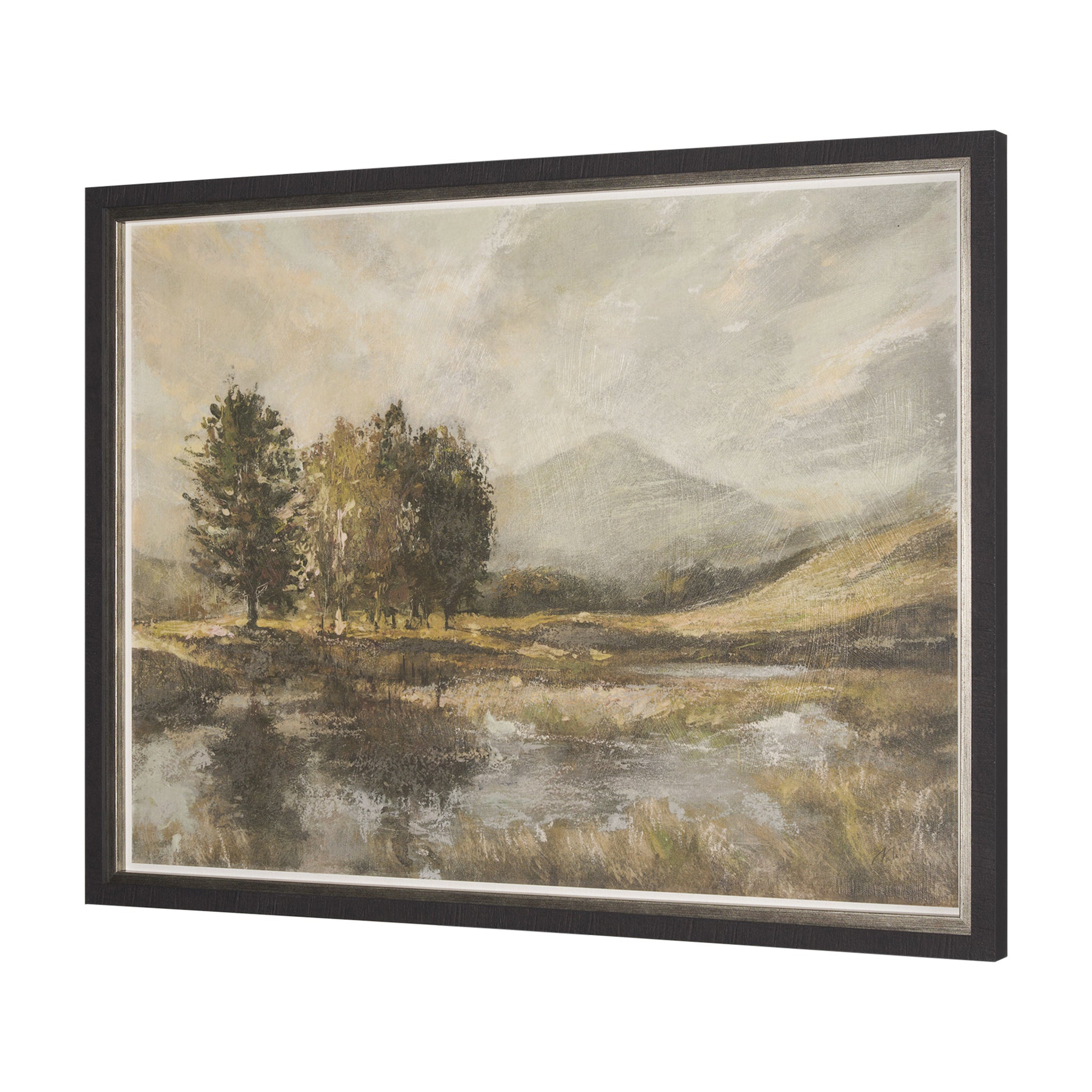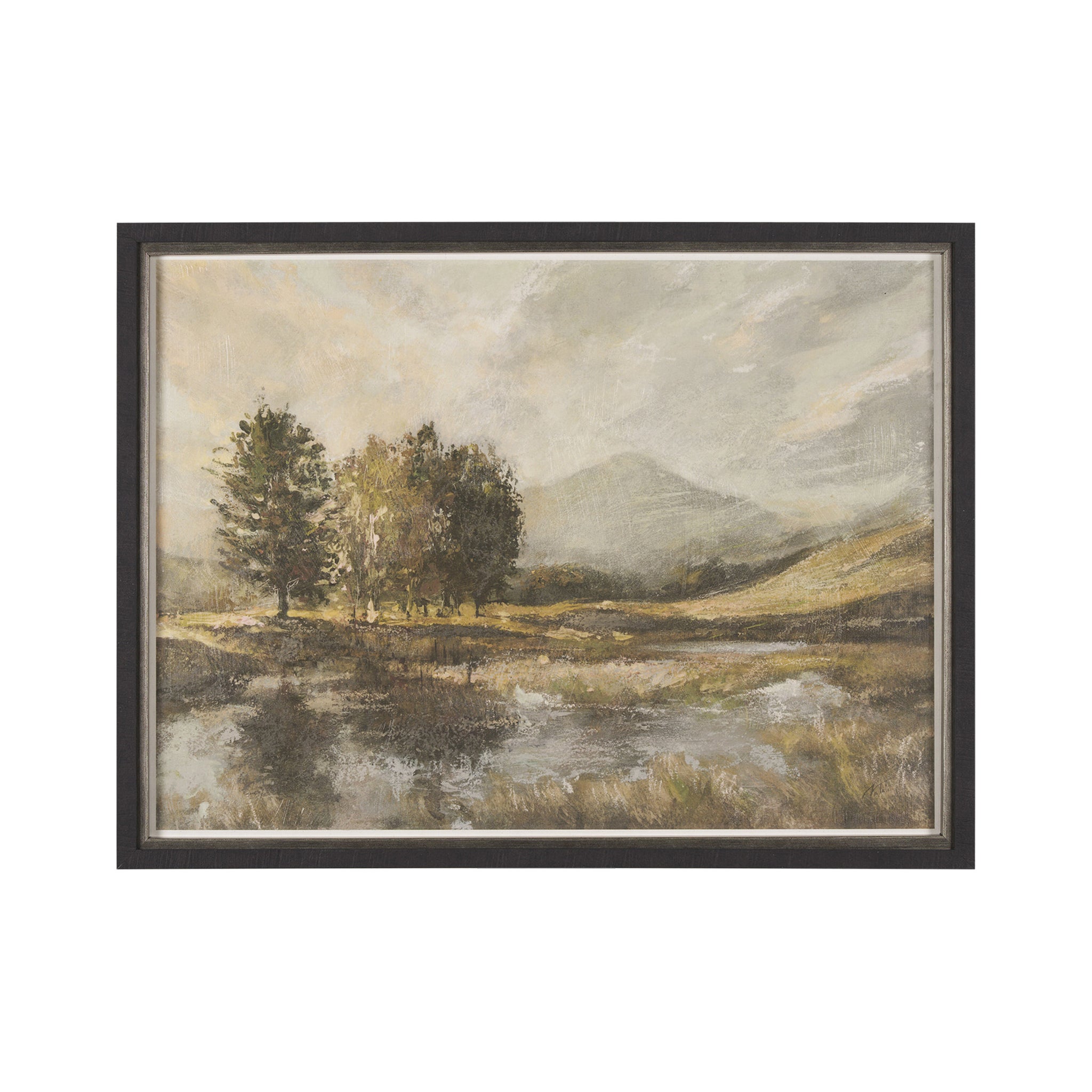 Bring the serene charm of a rustic landscape into your home with this framed artwork. An ancient, gnarled tree gracefully anchors the scene, overlooking sun-drenched fields and distant farmsteads, all rendered in a soft, impressionistic style with a muted palette of earthy greens, browns, and ochres. This timeless piece evokes a peaceful, nostalgic ambiance, perfect for adding a touch of pastoral beauty to any traditional or farmhouse-inspired space.