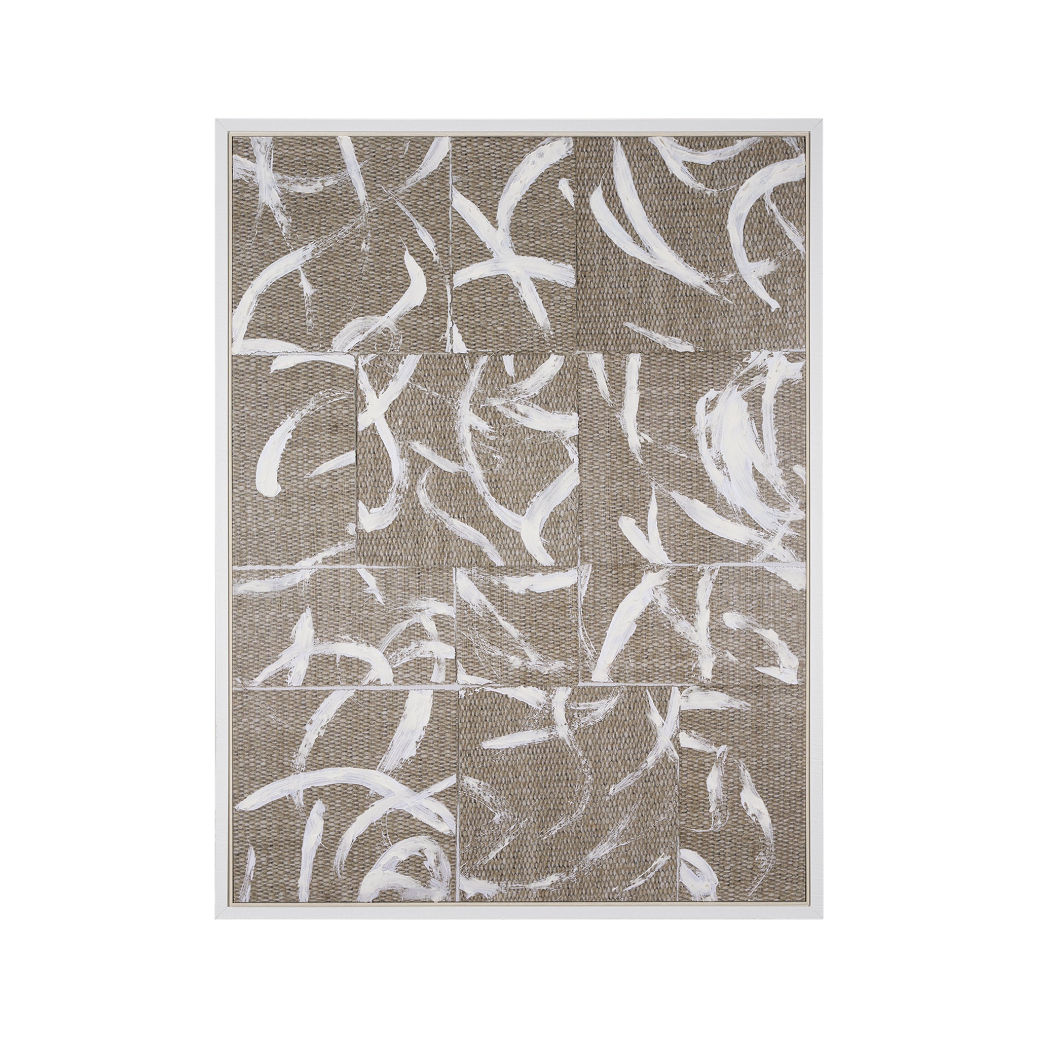 Introduce contemporary flair with this striking abstract art piece. Bold, expressive white strokes sweep across a richly textured, woven background, creating a dynamic visual flow across its multi-panel design. This artwork offers a modern, sophisticated statement, perfect for adding an artistic focal point and unique texture to any living space.