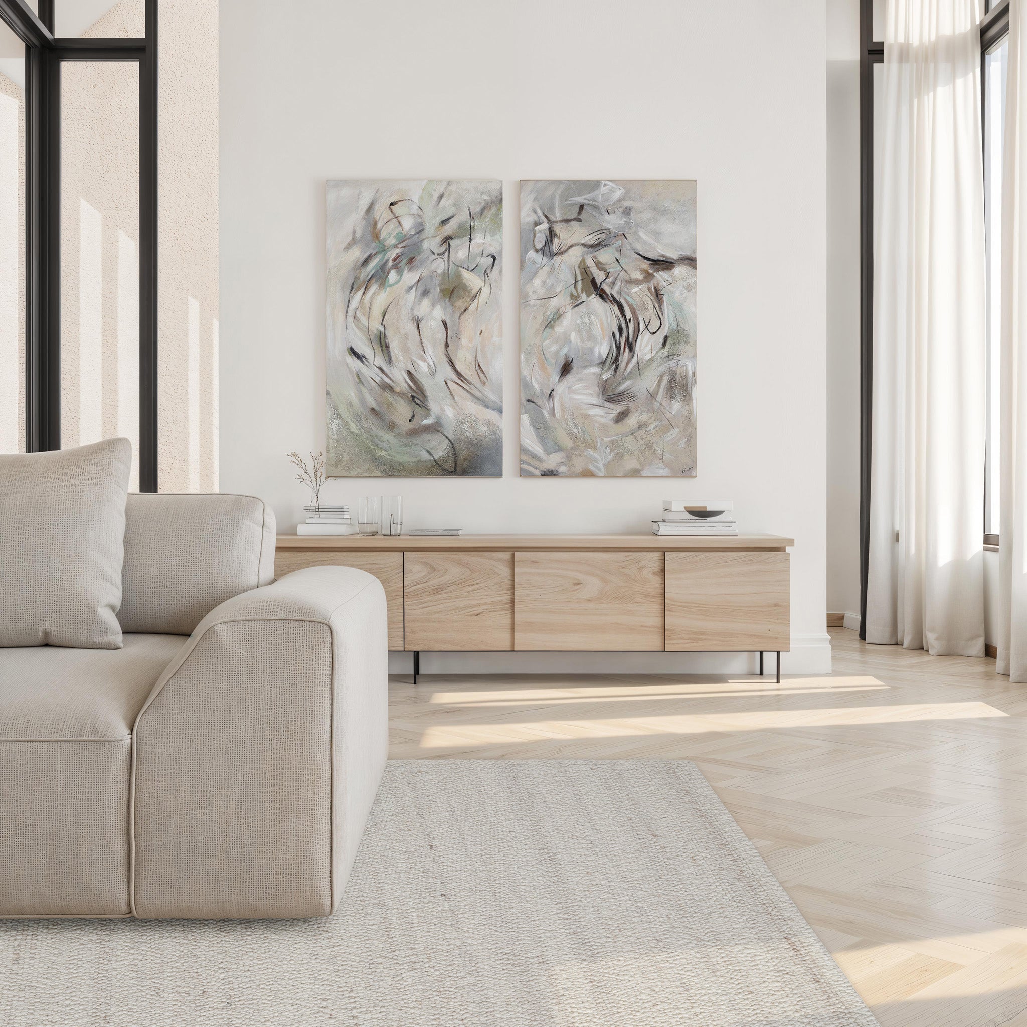 Hand painted on high-quality stretched canvas, this set of two wall art canvases is ideal for interiors that lean transitional or modern. Generous dimensions and 2-way hanging allows for a multitude of display options letting you choose the arrangement that best suits your design vision for the space you're perfecting.