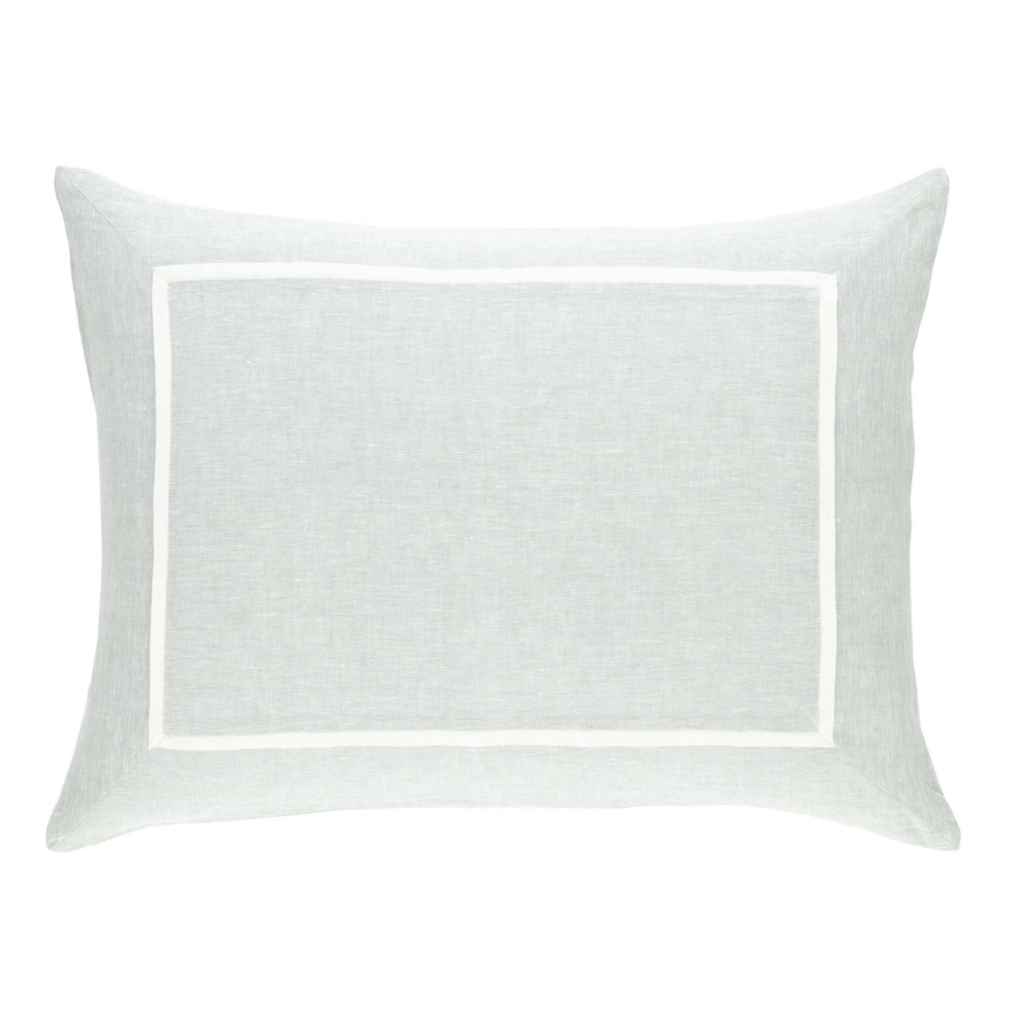 With its single ivory, tailored pleat and comfy linen chambray fabric, this neutral sham is a natural choice for the beach house or home, sweet home. Crafted to be an exact color match to our Hampton Ticking Linen Natural duvet, shams, and decorative pillows. Natural fibers. Closure: Ties. Edging: Knife Edge.