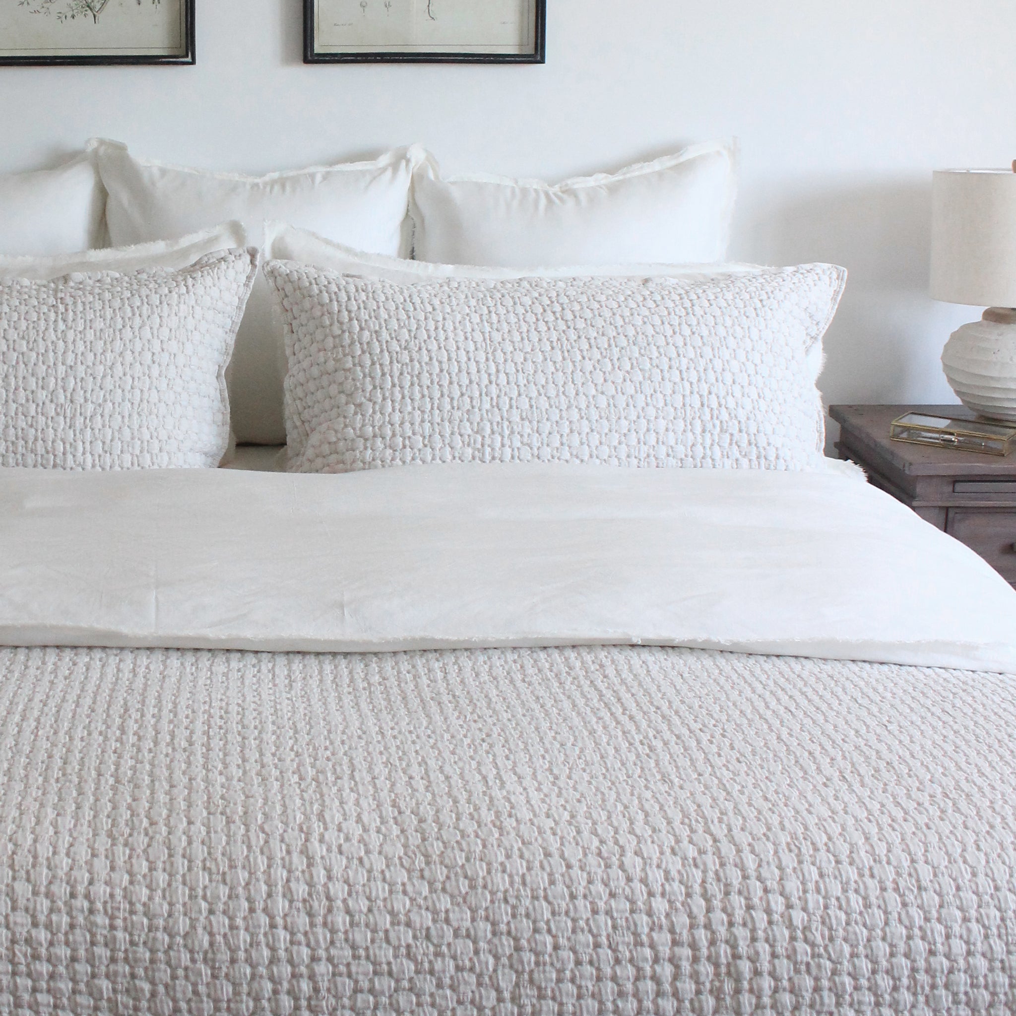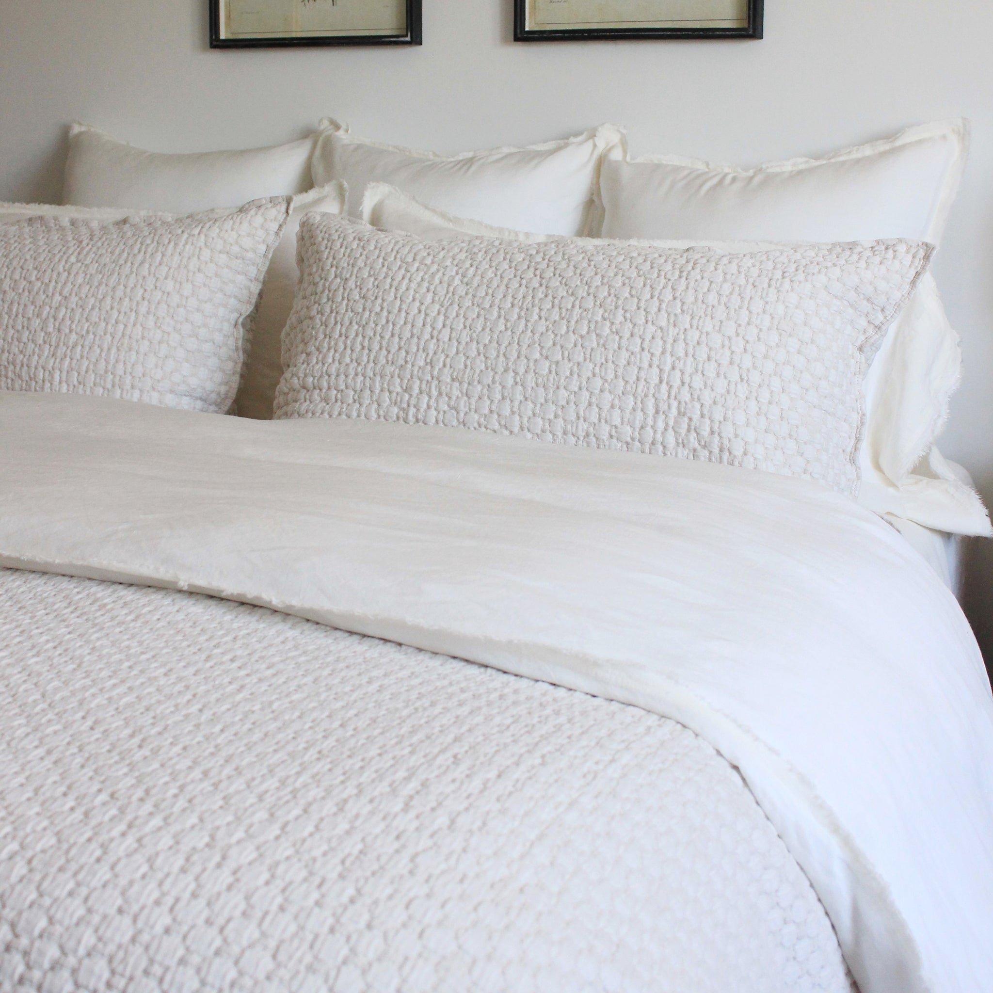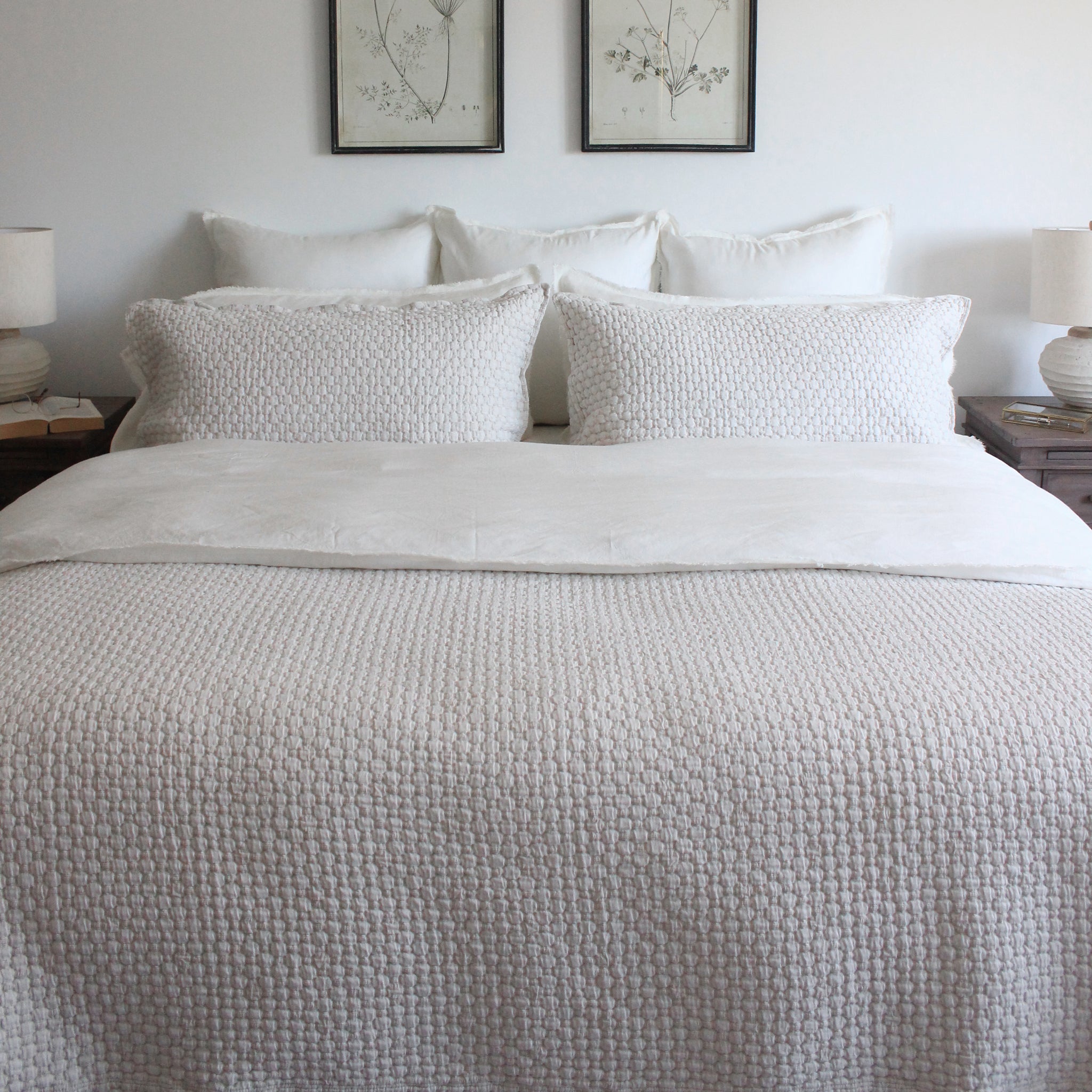 With its tempting texture and sensuous feel, the Lodi matelassé coverlet features a stonewashed design in a pattern of neutral sand that adds richness and dimension to a beautifully layered bed. Crafted by artisans committed to fair-labor practices. Machine washable. Eco-friendly. Natural fibers. 1" hem on 3 sides with 1/2" top hem. Reversible. Made in Portugal.