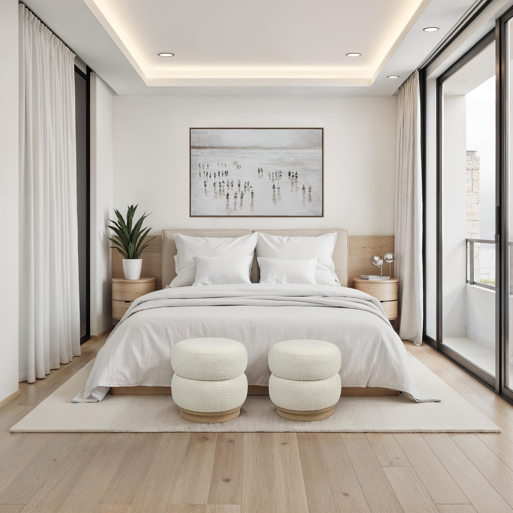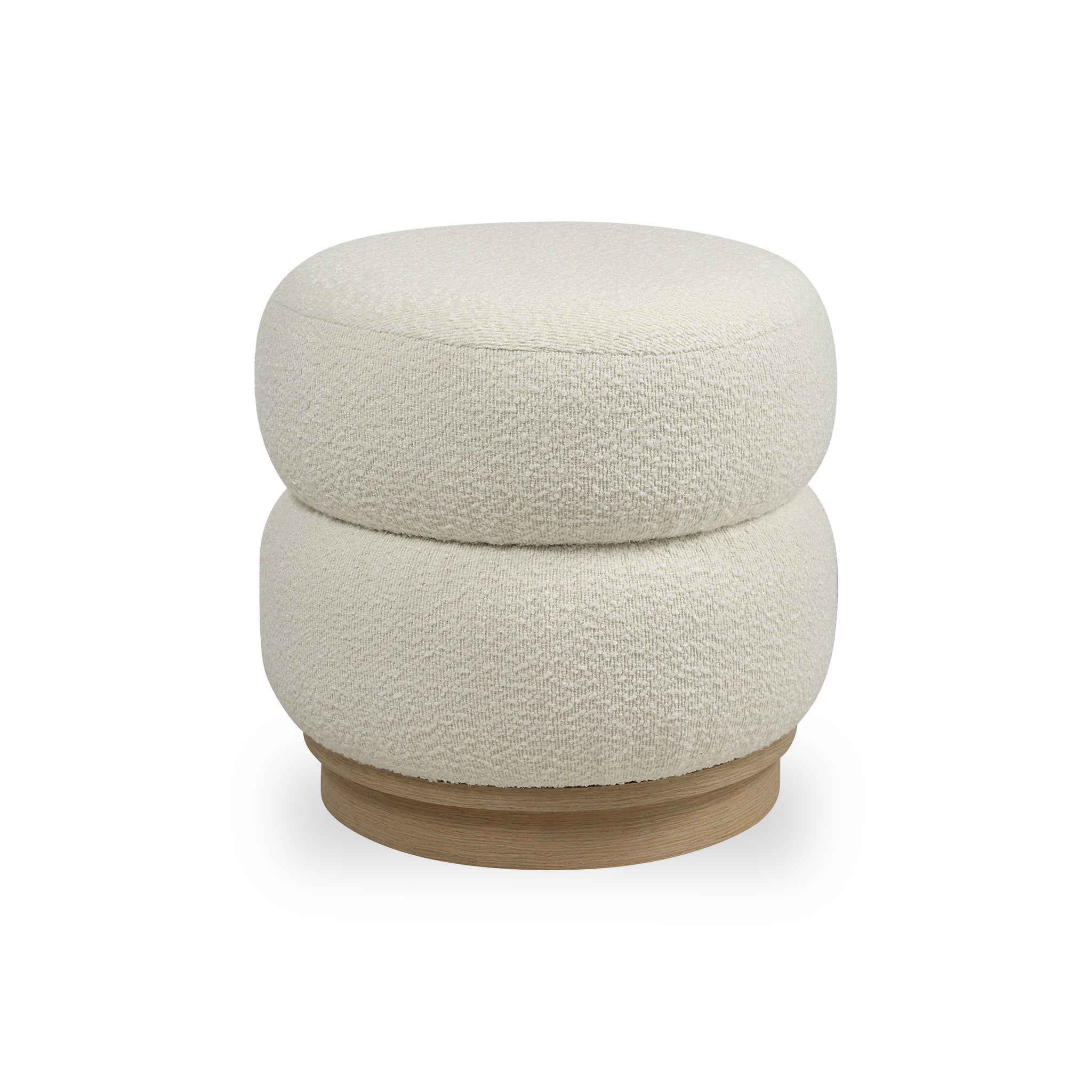 Brimming with texture, this ivory boucle ottoman will bring an of-the-moment aesthetic to any modern interior. Designed with rounded channelling, its cozy cushioned body sits on a light oak veneer base to create a piece that's as comfortable as it is stylish. Perfect for rooms with a Scandinavian or transitional vibe, pick up one or more to complete the look you're after.