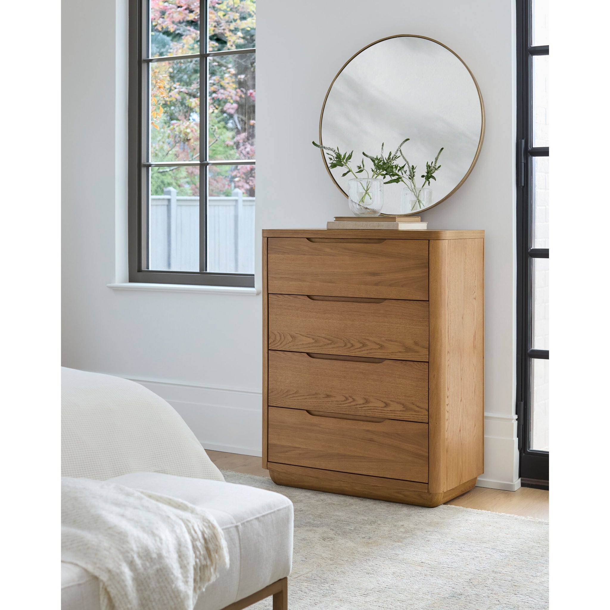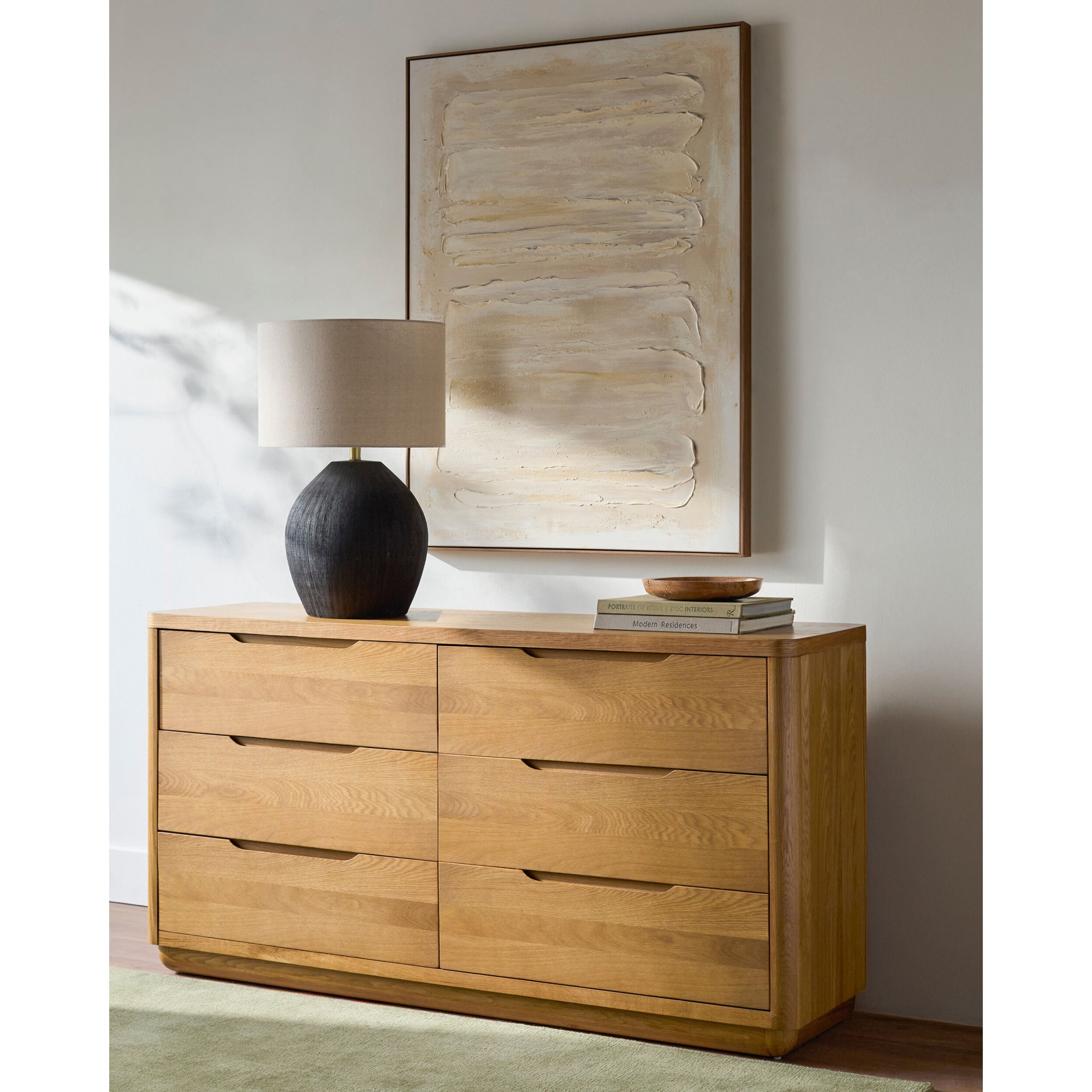 Introduce a touch of minimalist modern style to your home with the Hundley Dresser. This chic piece is made from sturdy white oak veneer and manufactured wood, with an elegant oak base for added stability. The dresser's clean lines and simple design exude a contemporary vibe that seamlessly blends into any decor. Its durable construction, manufactured in Vietnam, ensures long-lasting use while its surface is easy to maintain?simply wipe clean with a dry cloth and avoid harsh cleaners to protect the finish. Upgrade your bedroom space with this functional yet stylish Hundley Dresser.