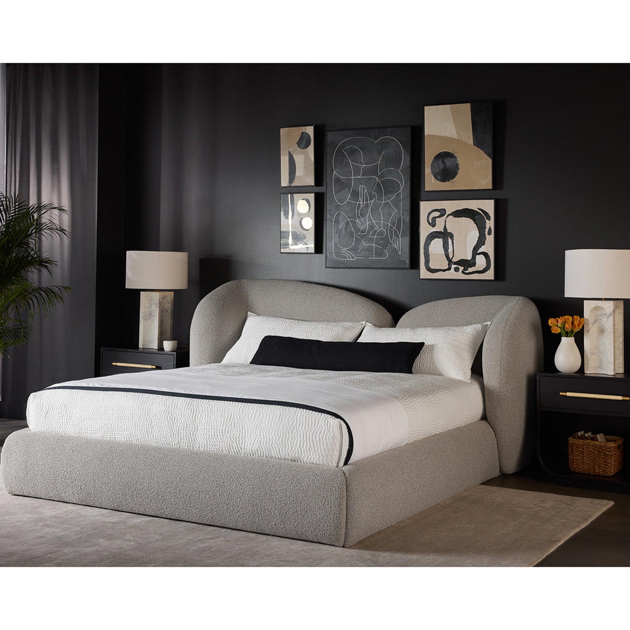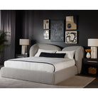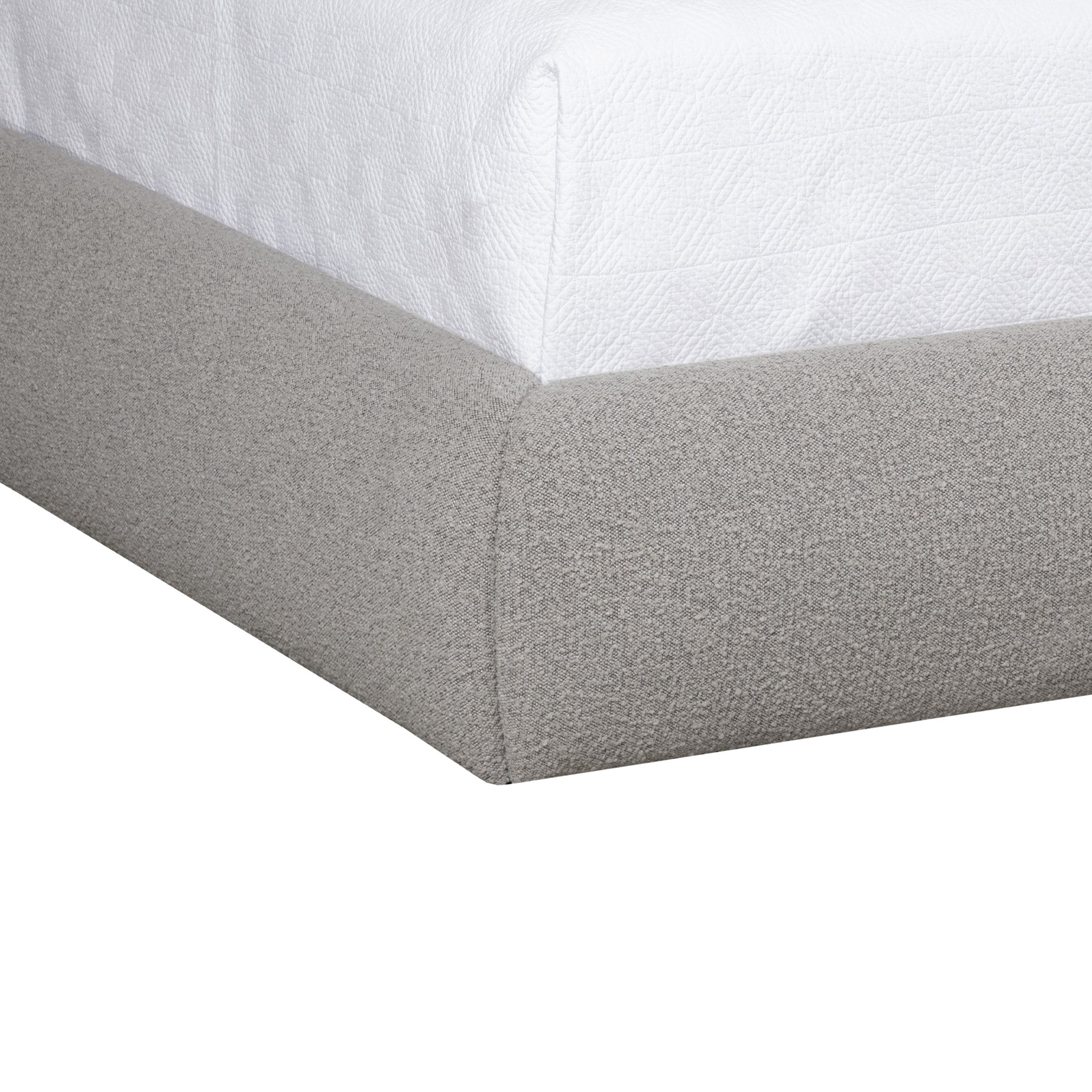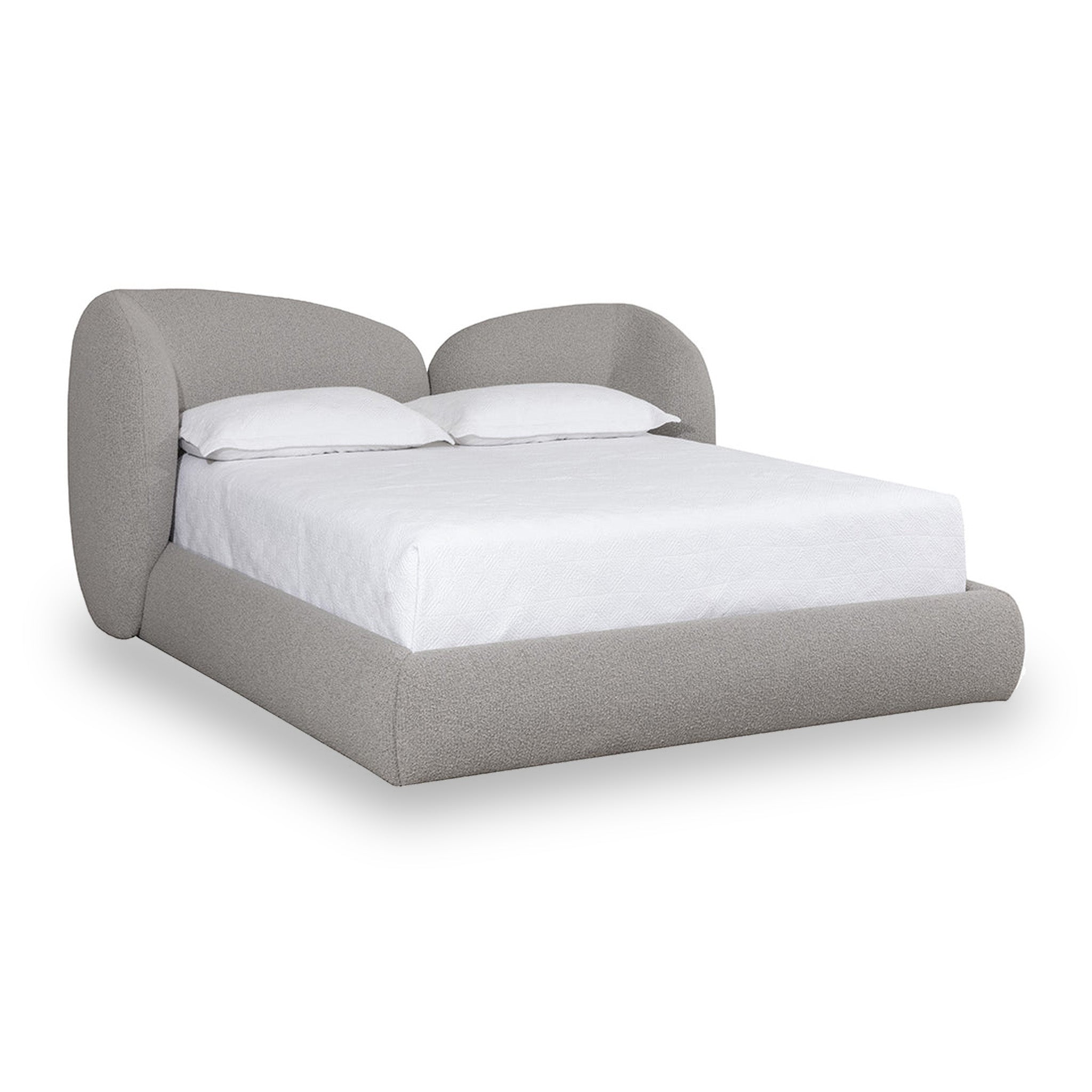 The Ross Bed is bold, shapely and more importantly, slumber-ready. Textured boucle is formed into voluminous curves with a foam-filled cushioning headboard to impart durable, unending comfort. Fabric emphasizes Garcias cozy feel.