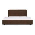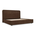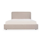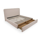 A bed with a hidden trick. The Simon Bed features a rounded silhouette with piped detailing, upholstered in flecked beige polyester for softness and durability. The full footboard pulls forward to reveal storage divided into two panels, keeping essentials organized without clutter. Built with engineered wood, solid wood, and MDF, Simon turns practical storage into part of the design story.