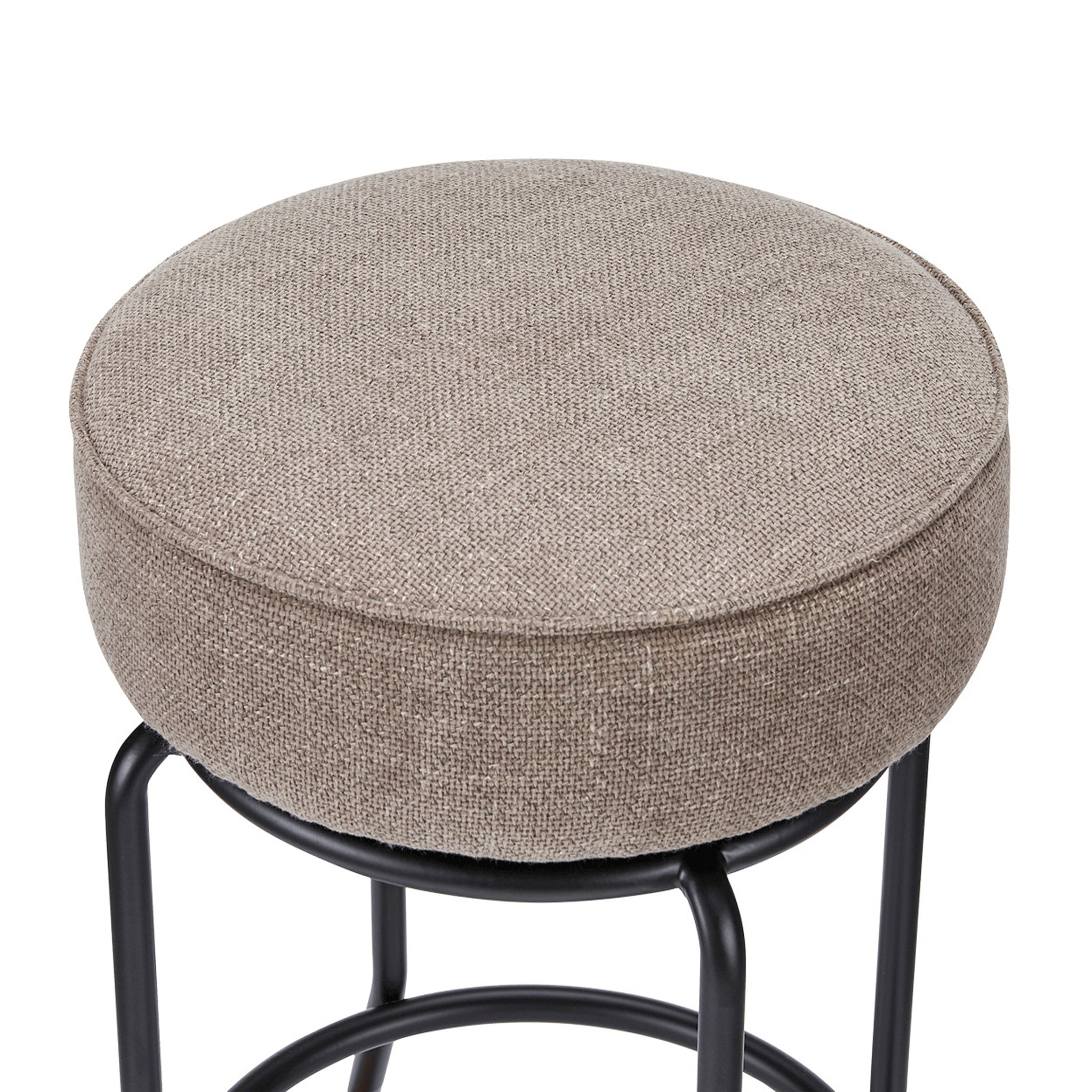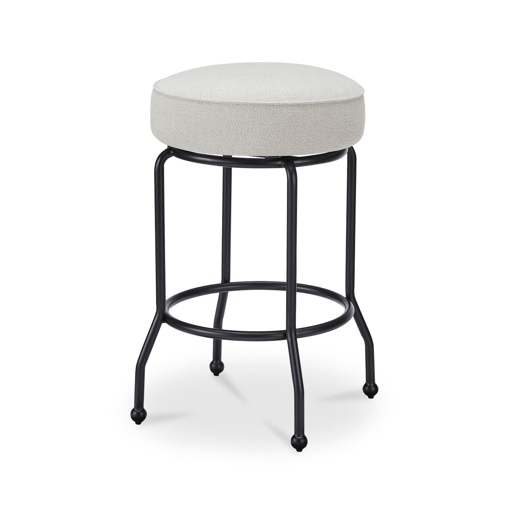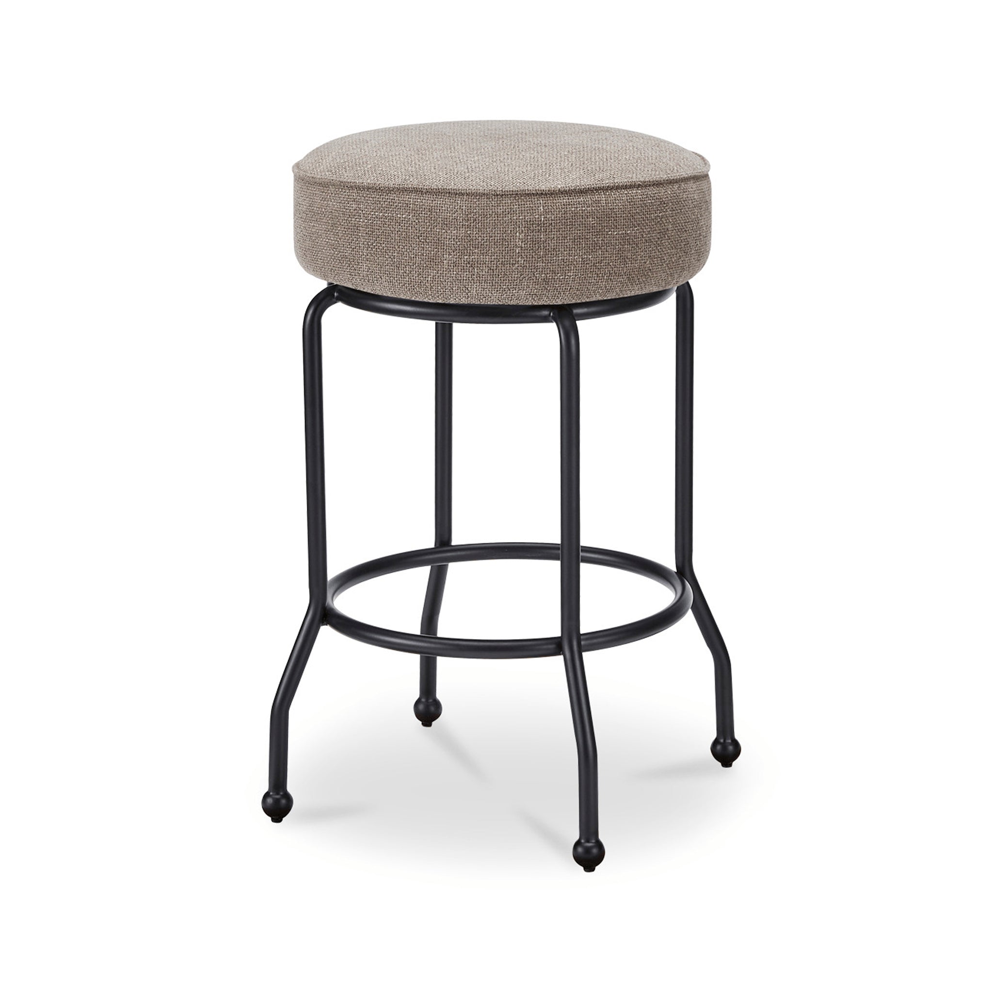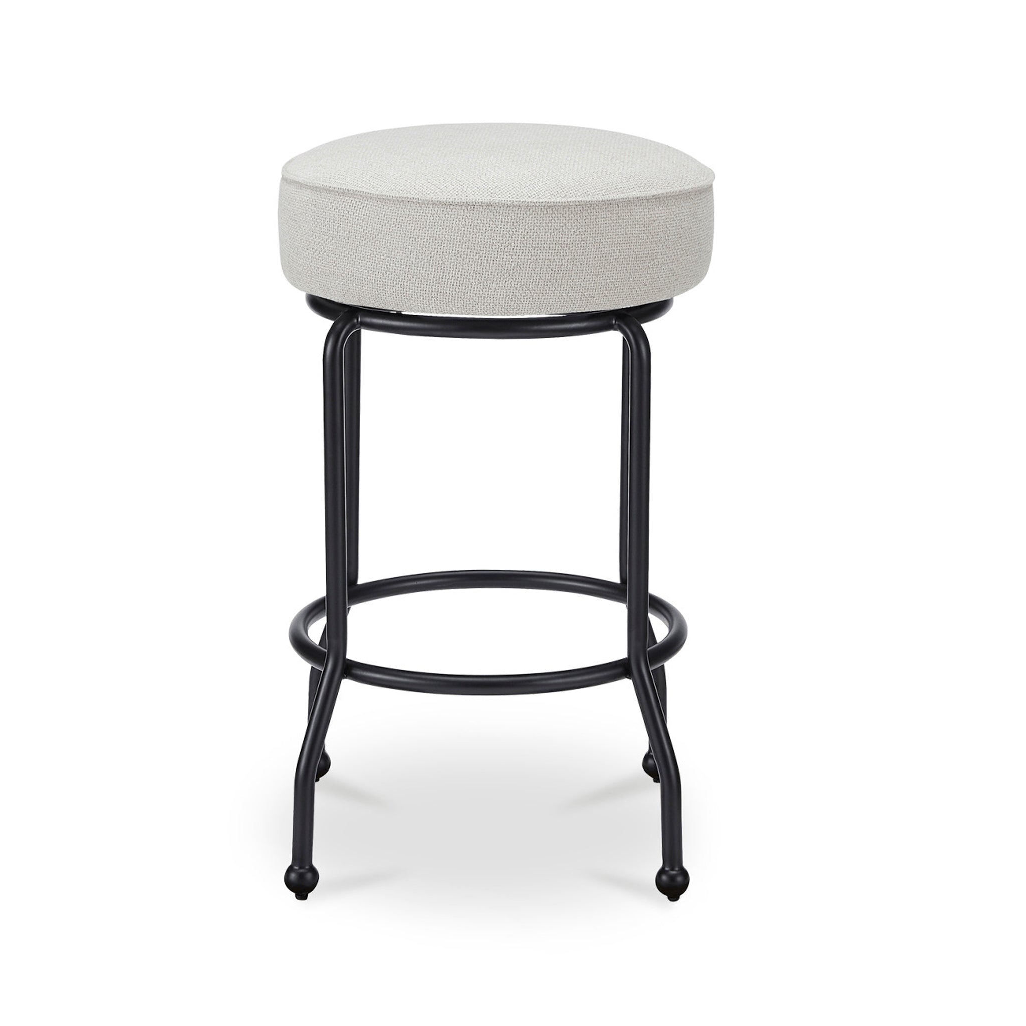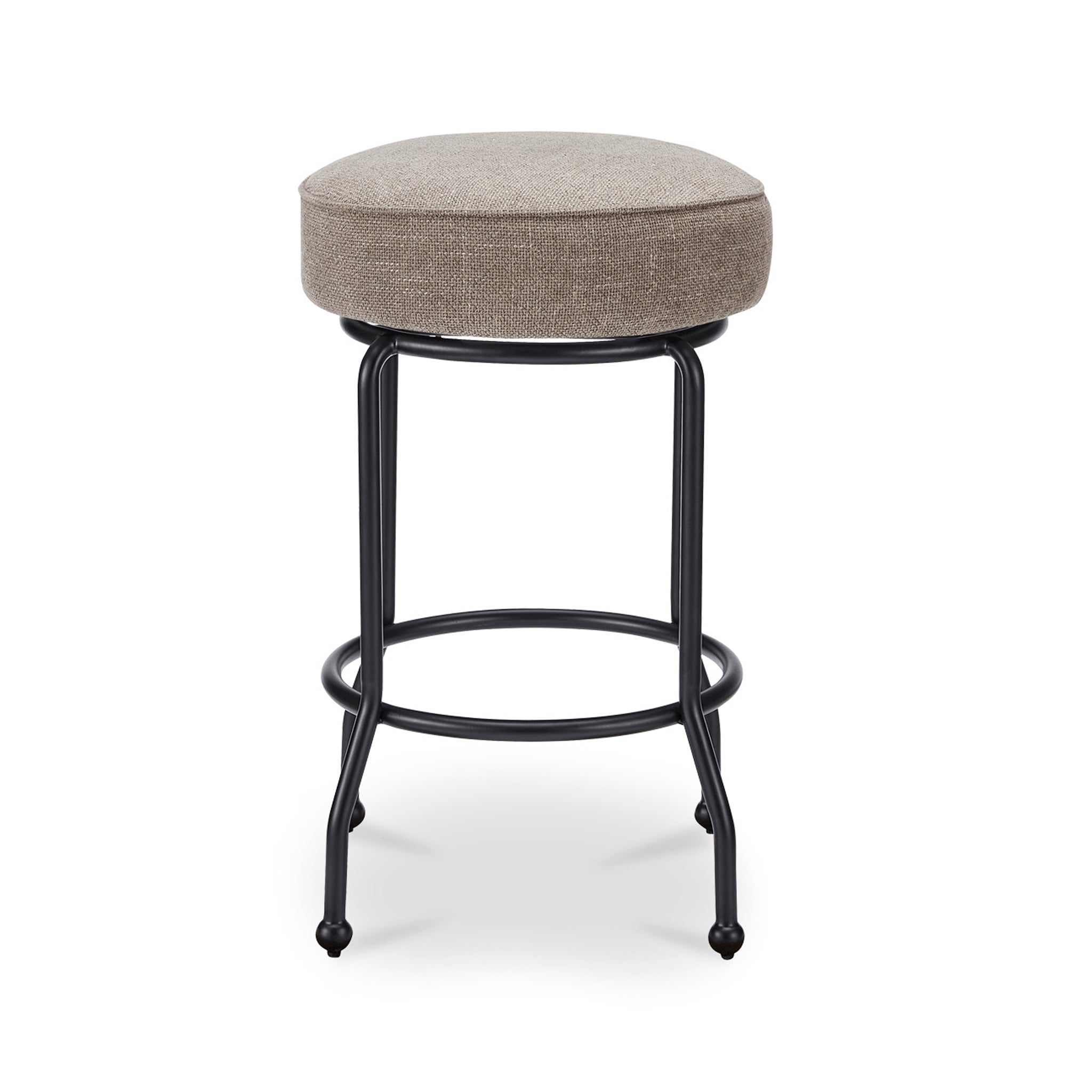 With elegant piping detailing and easy-to-clean performance fabric upholstery, the Lillo swivel counter stool's generously padded round seat invites lingering conversations. Curved iron legs, accented by delicate finials, add a touch of subtle sophistication, while the 360-degree swivel function offers effortless movement.