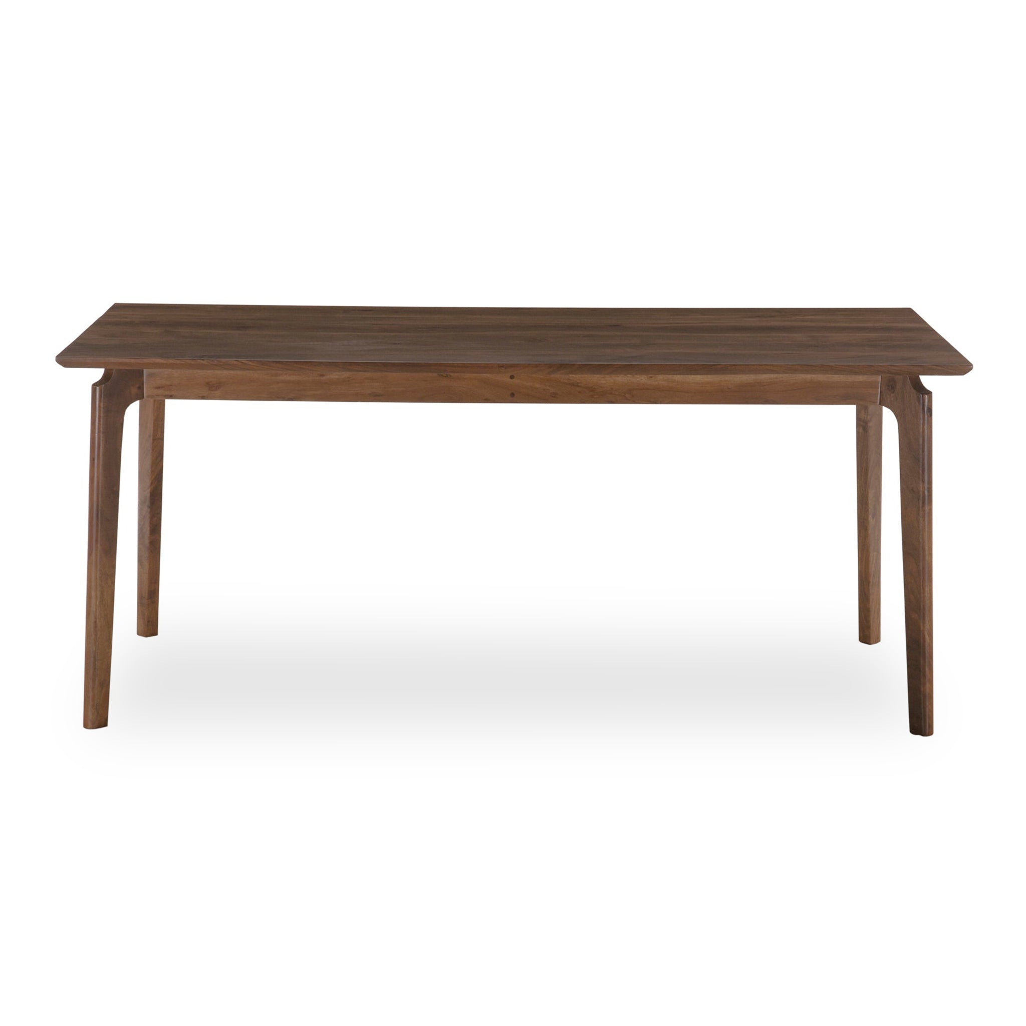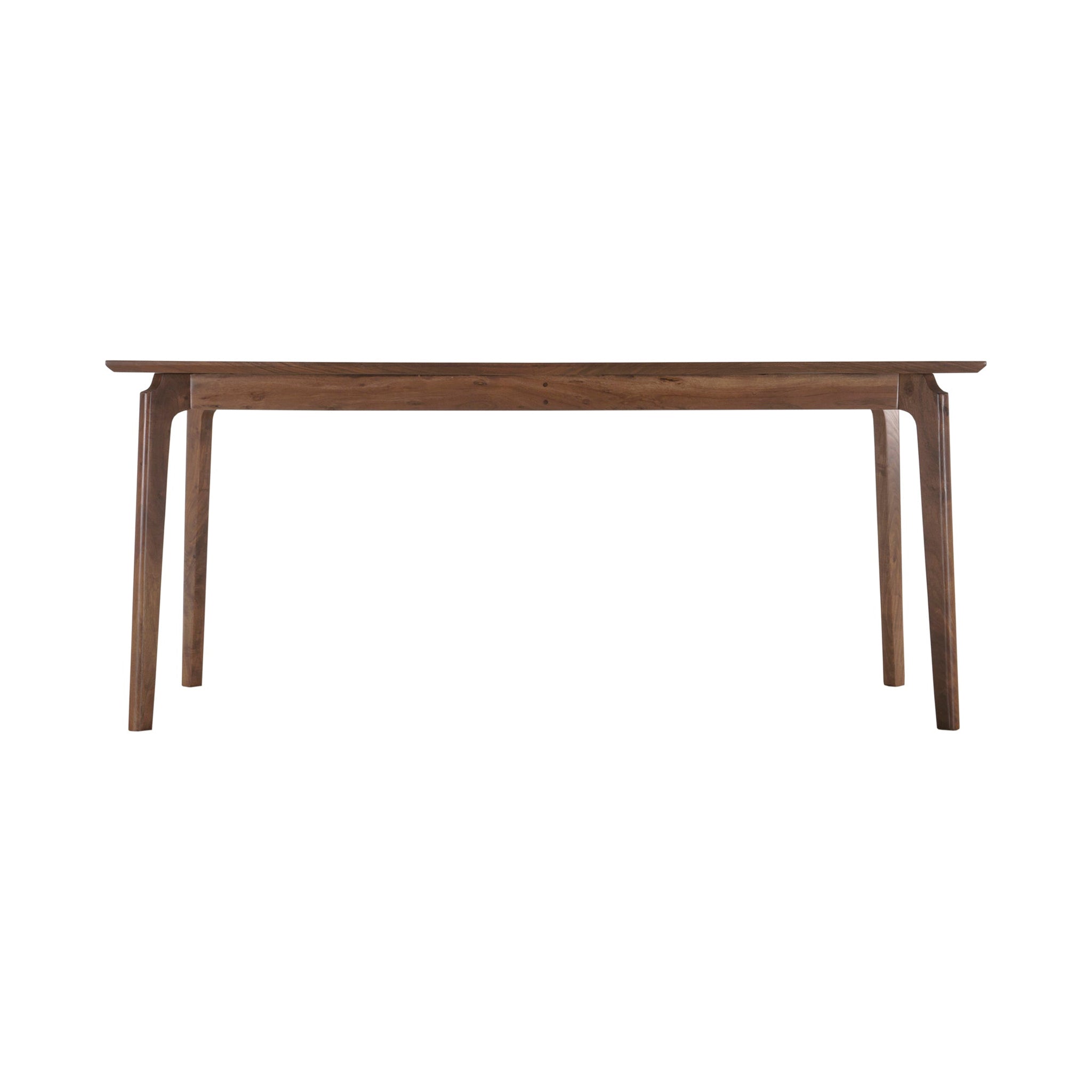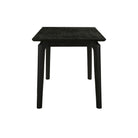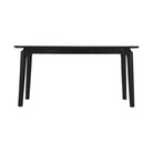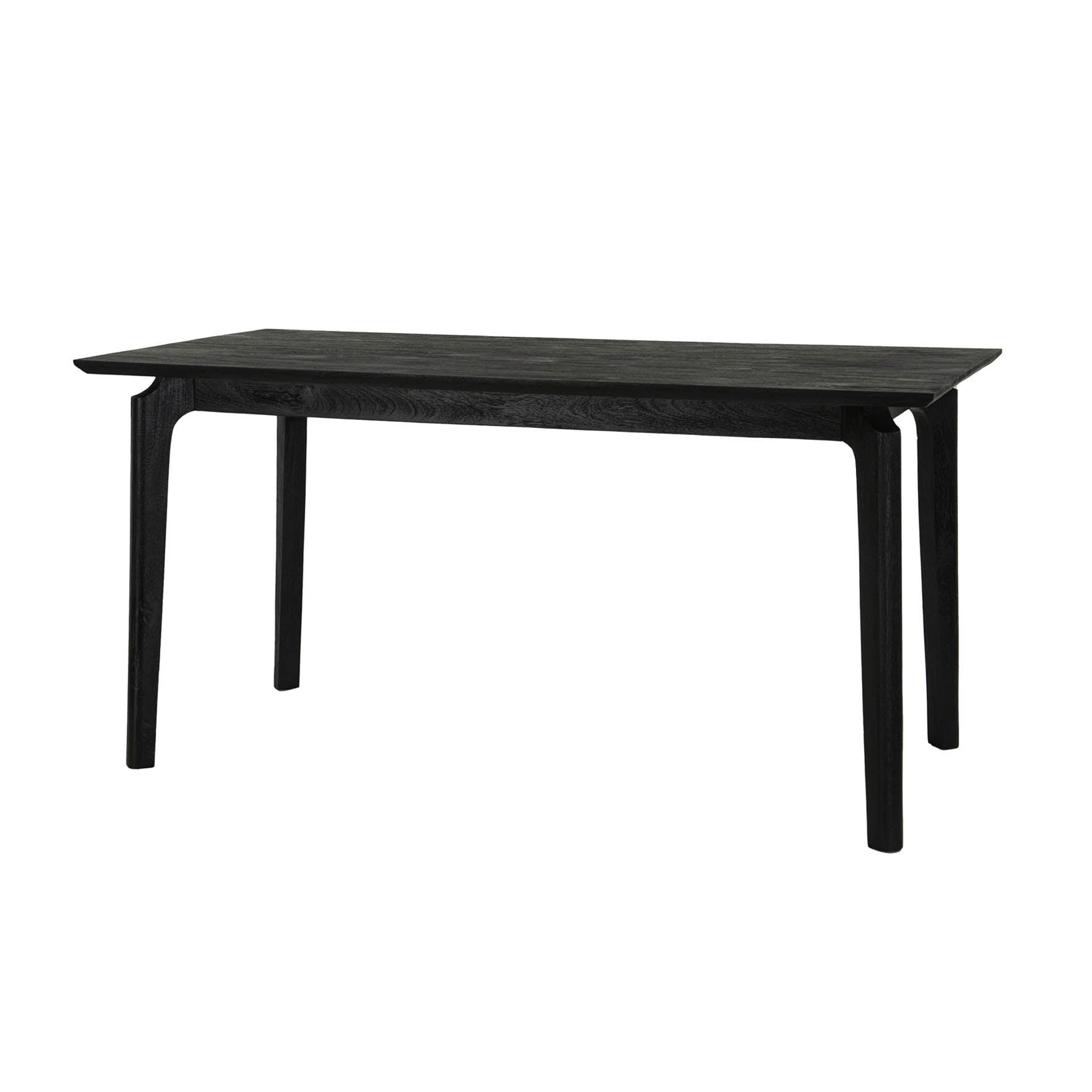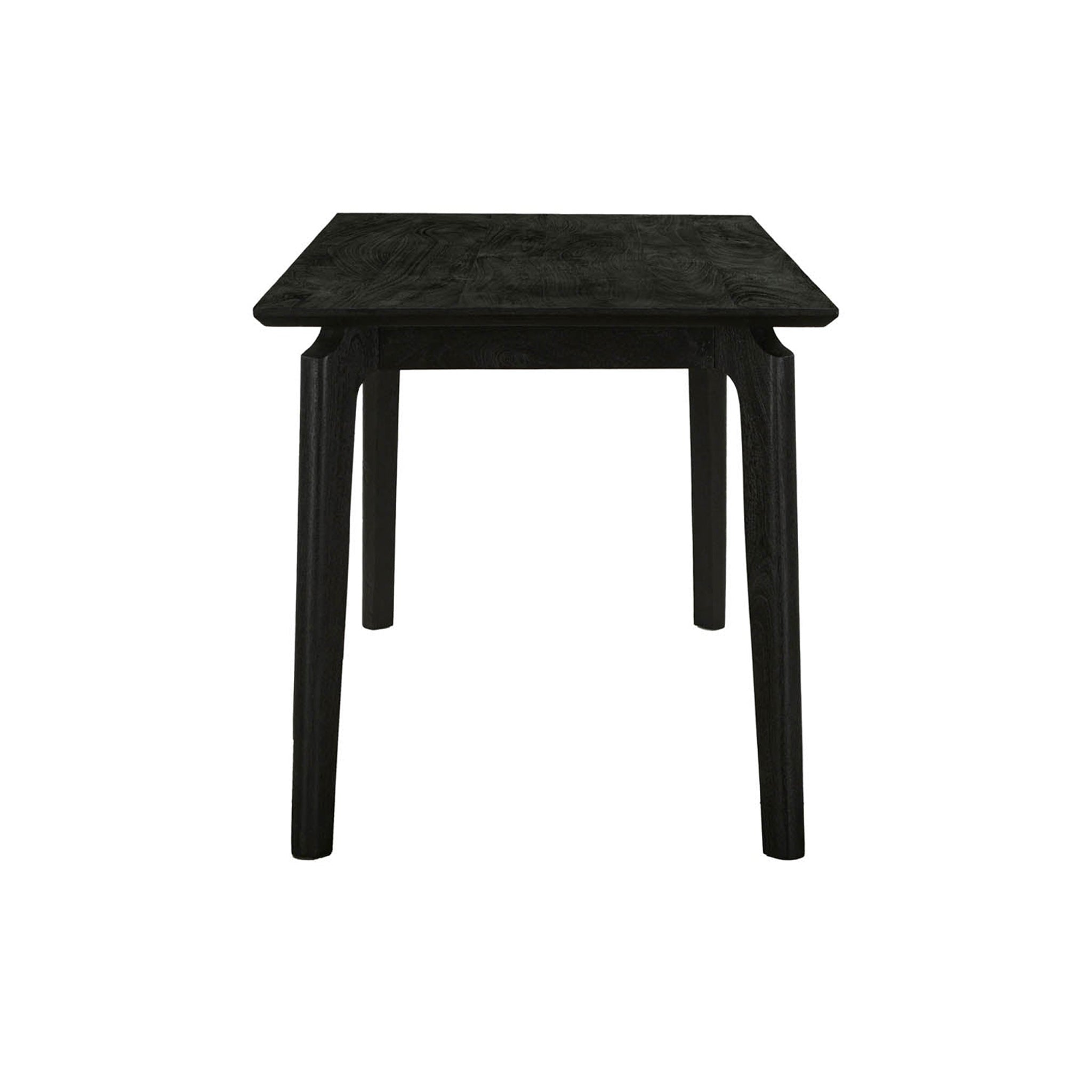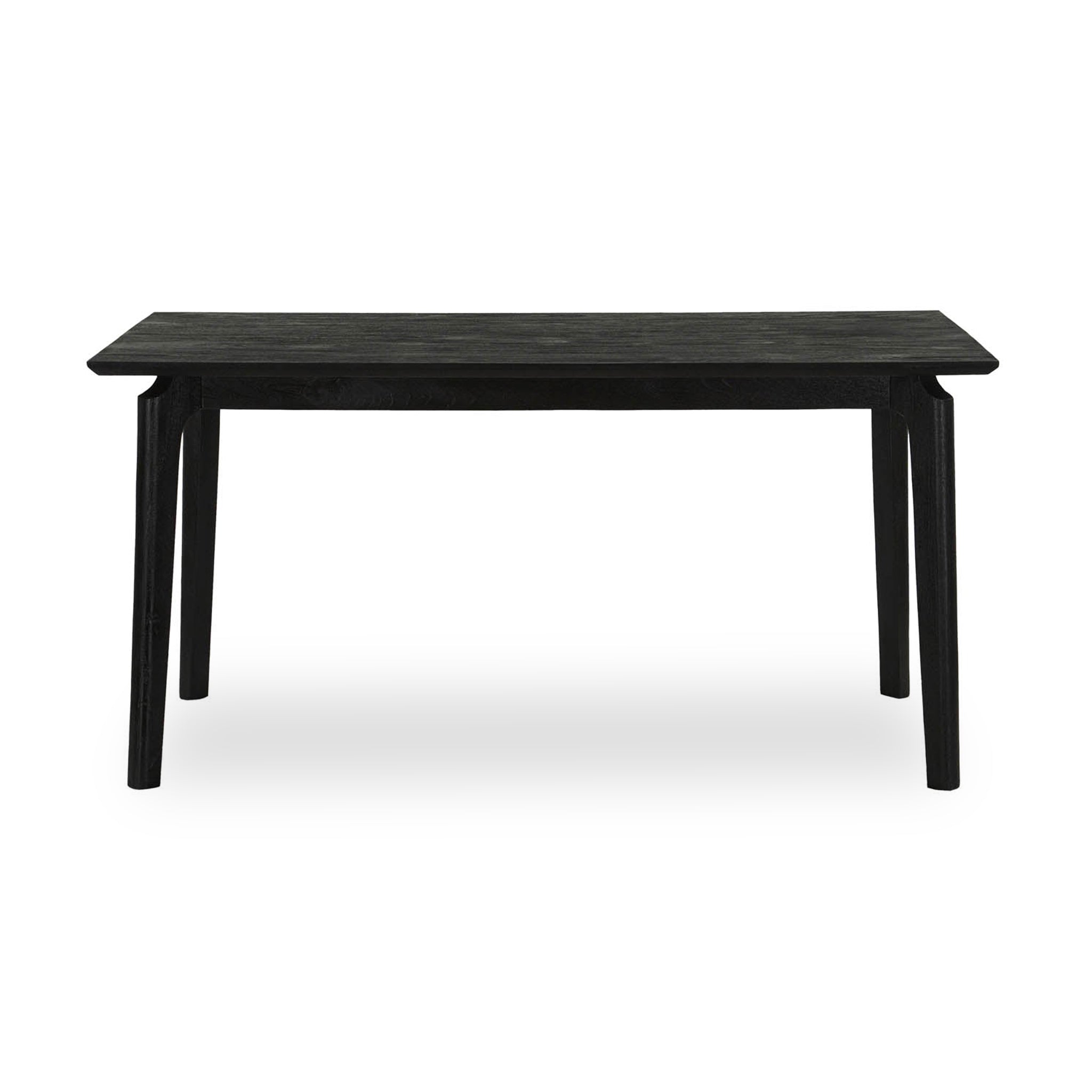 Beautifully crafted from mango wood, this mid-century modern inspired dining table comfortably seats up to six guests. With its black stain finish and angled legs, this dark, bold, and minimal table caters to an array of aesthetics.