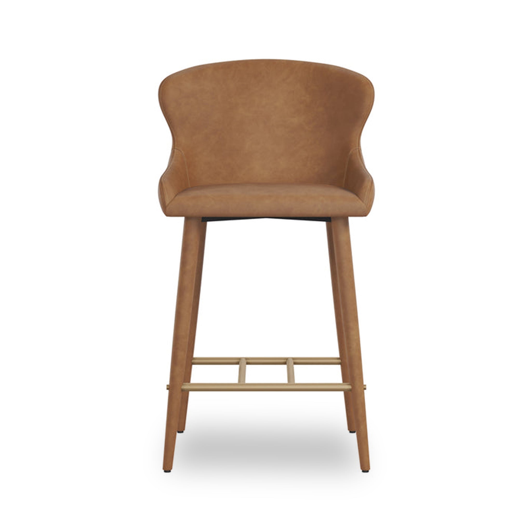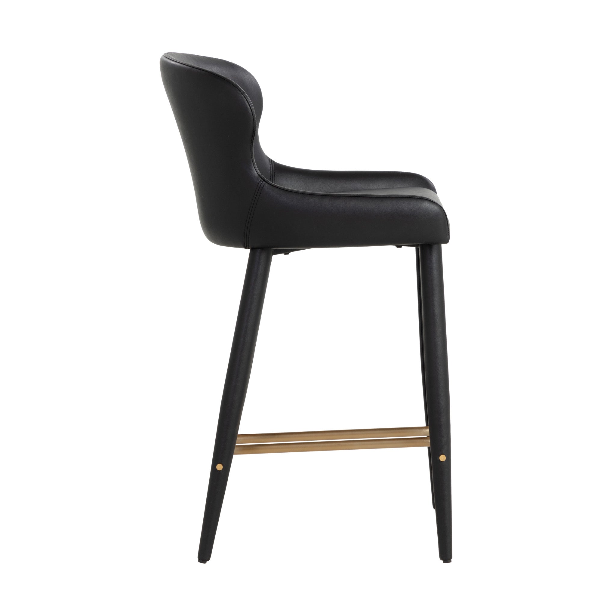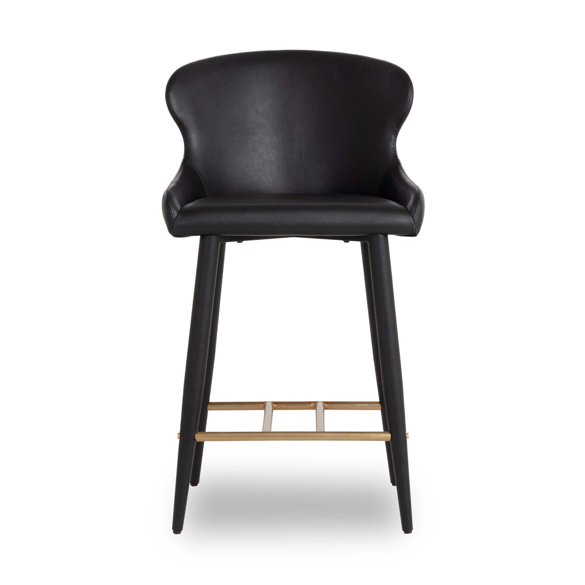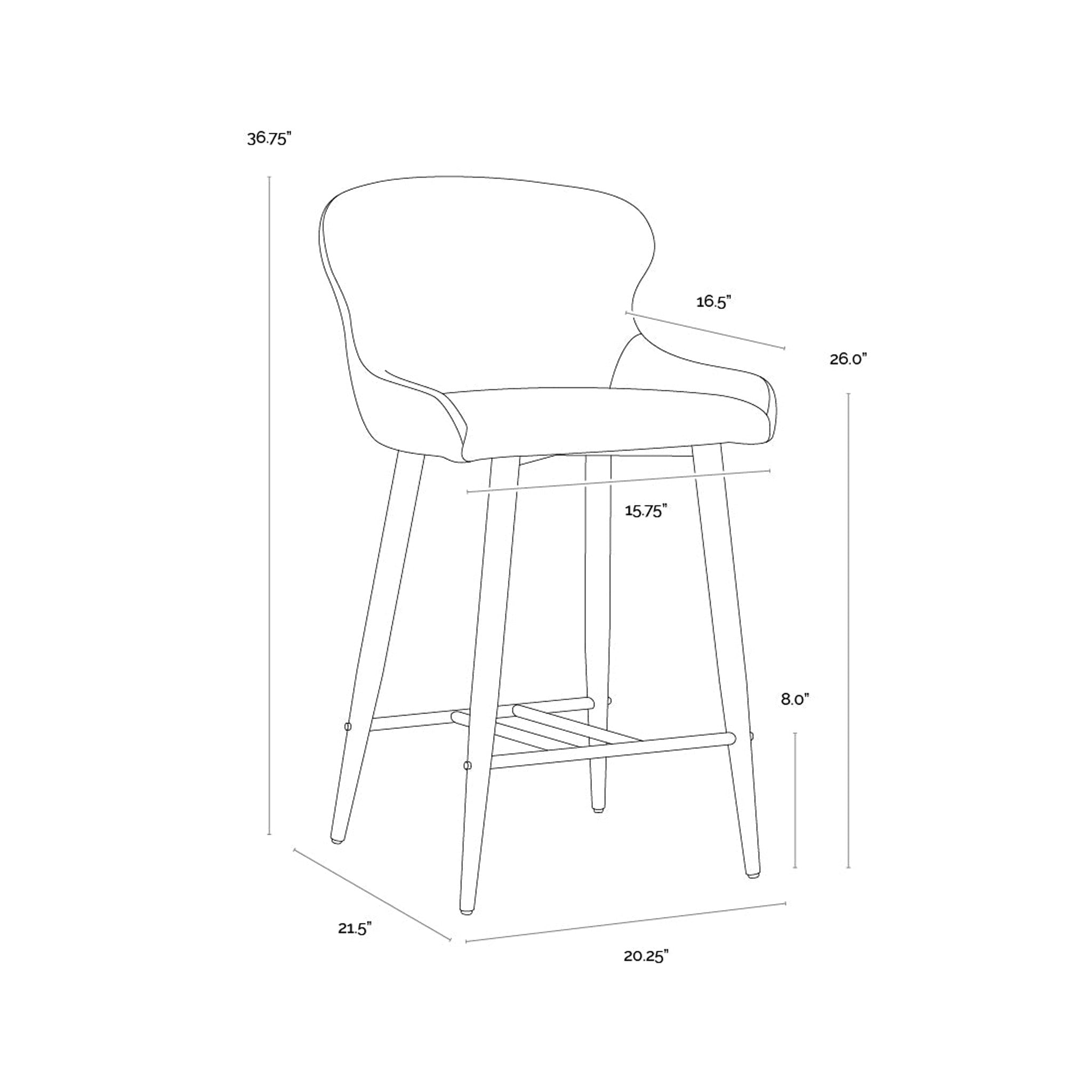 A gorgeous counter stool that features a sleek and minimal profile. Stylishly designed with tone-on-tone colours, this chair is stocked in faux leather and completed with metal upholstered legs.