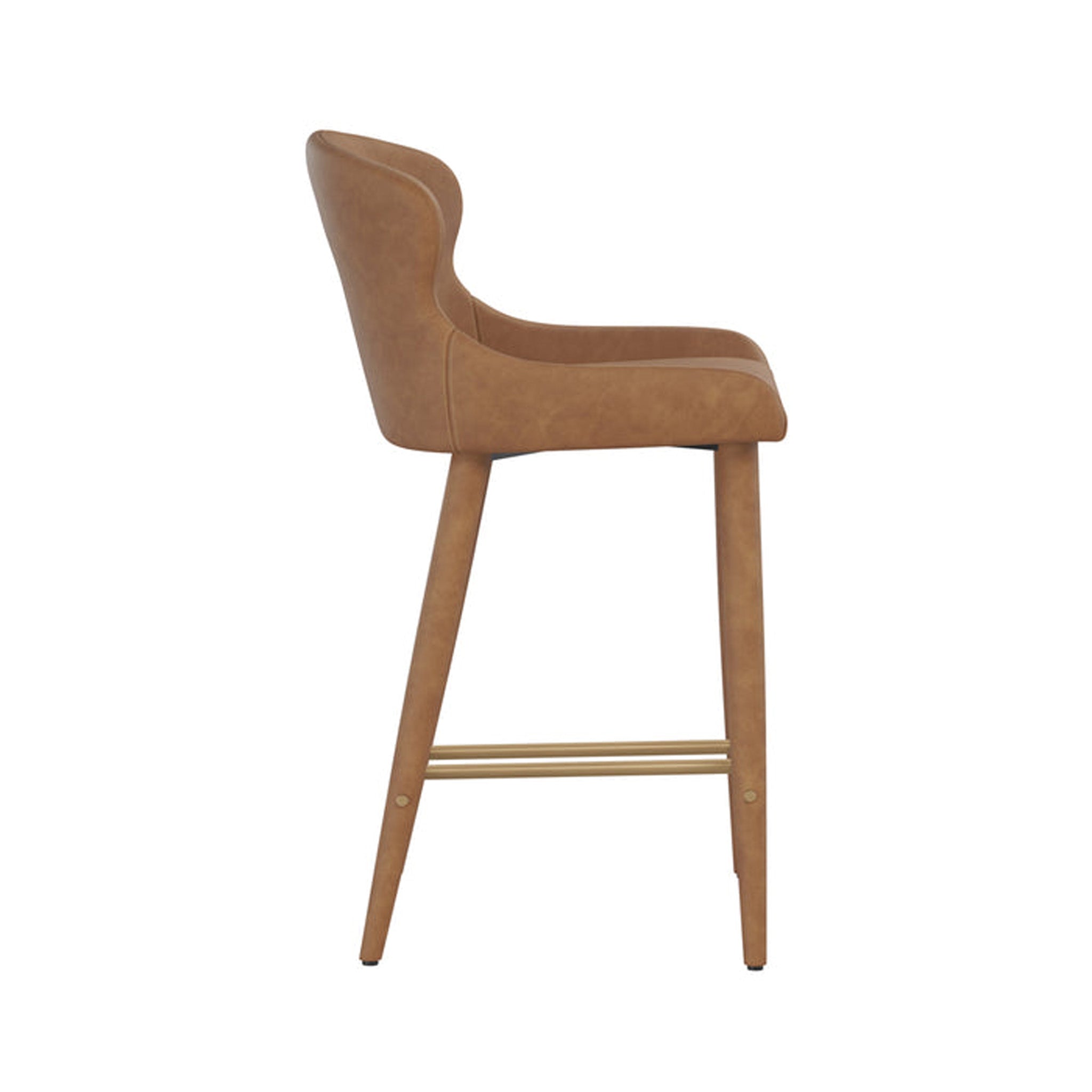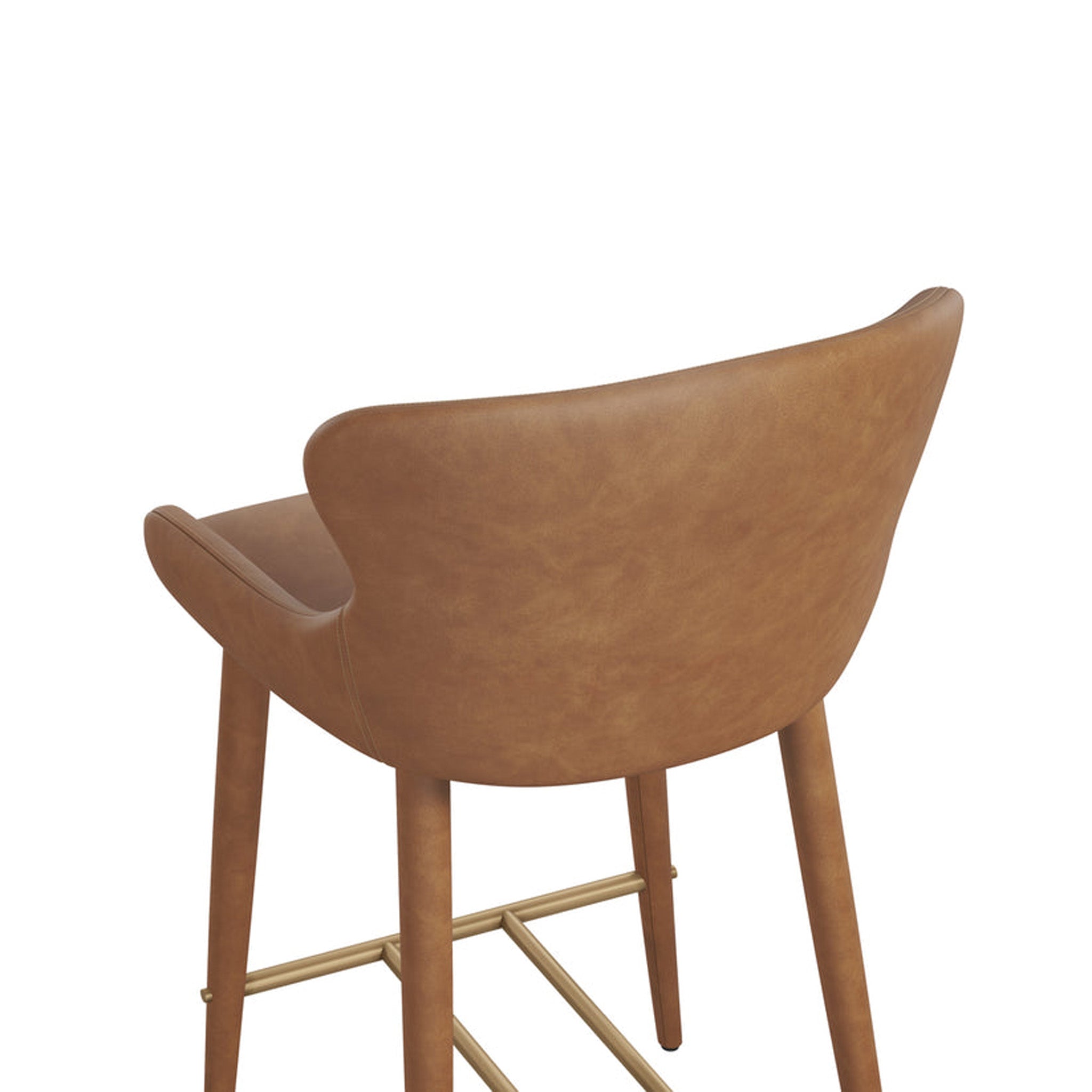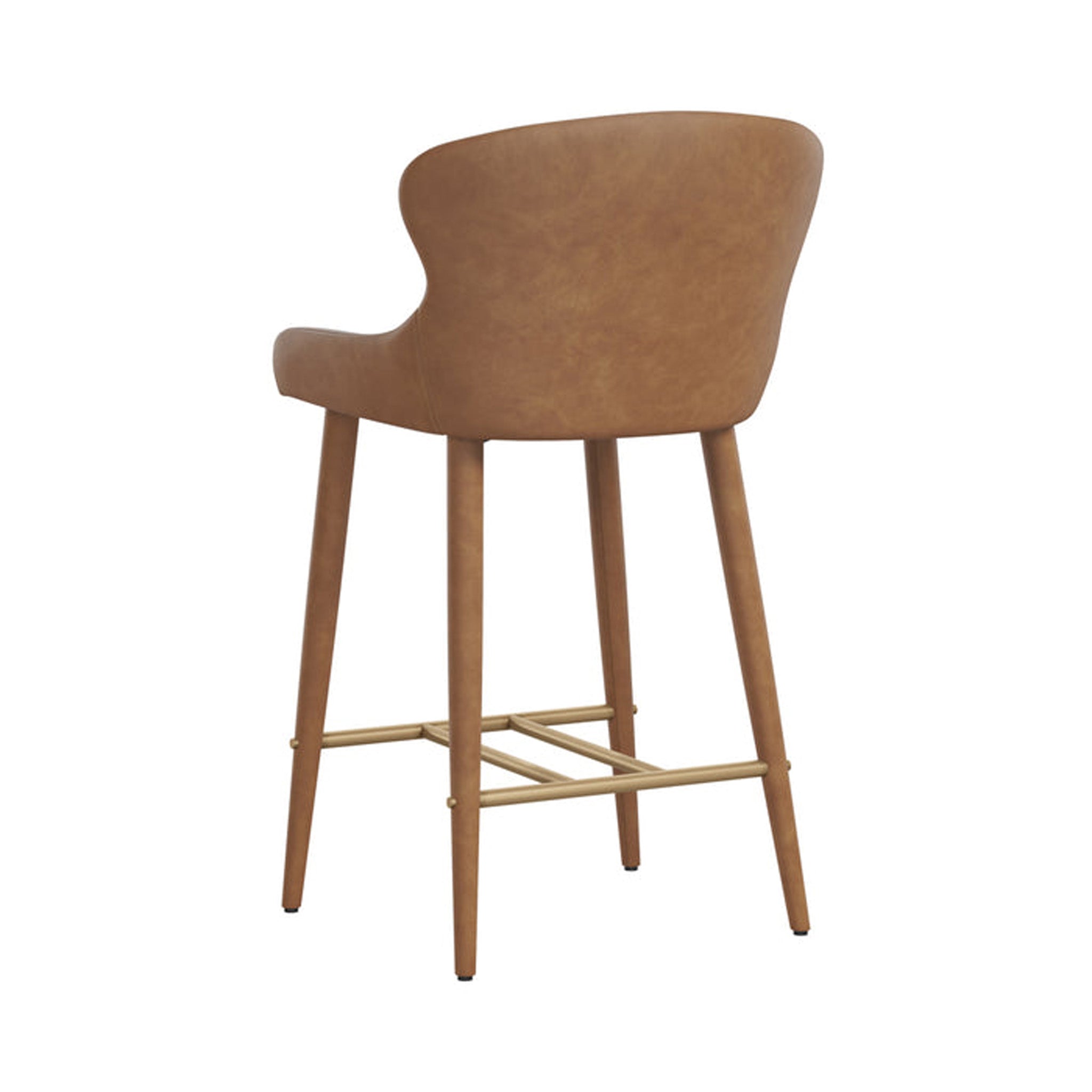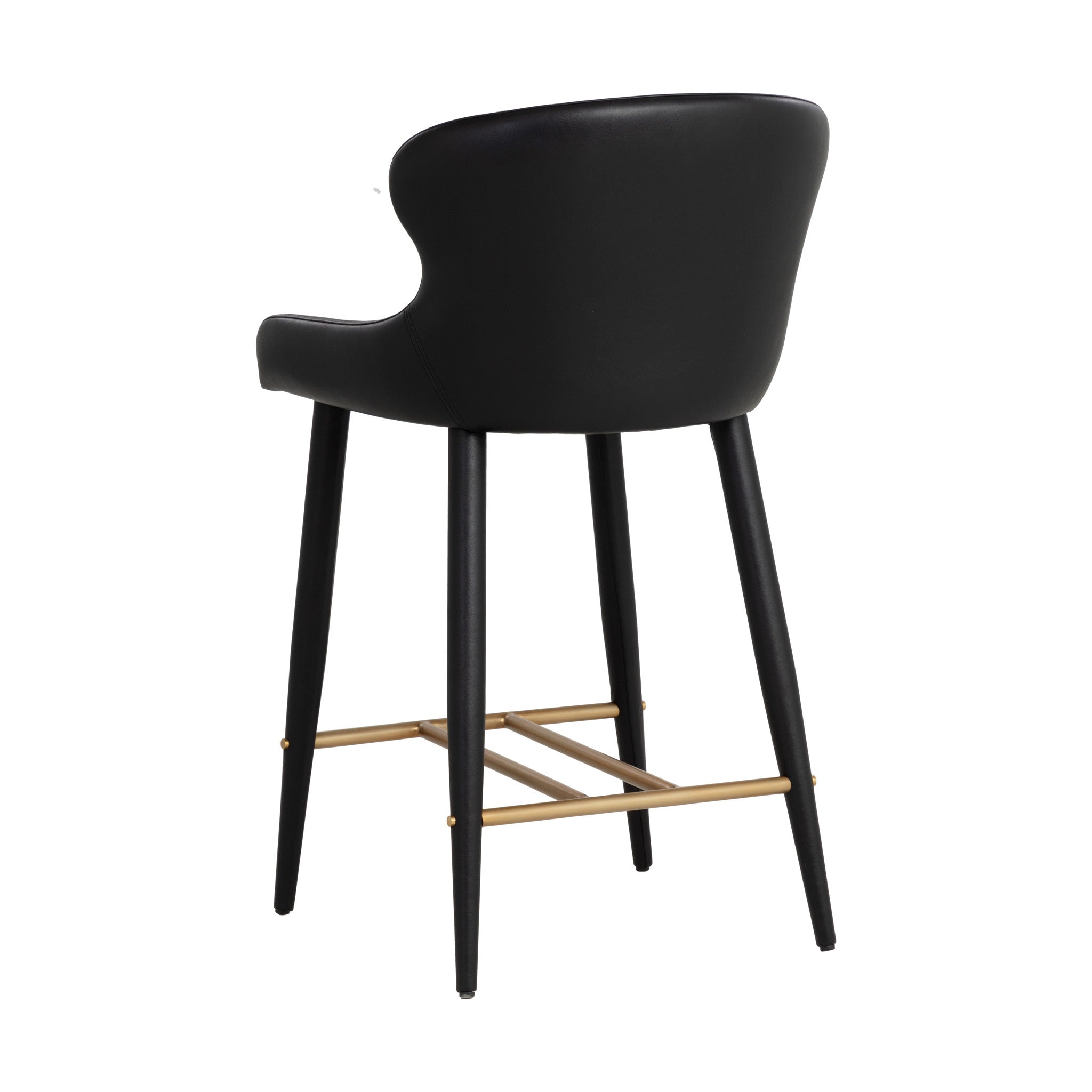 A gorgeous counter stool that features a sleek and minimal profile. Stylishly designed with tone-on-tone colours, this chair is stocked in faux leather and completed with metal upholstered legs.
