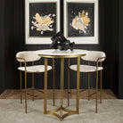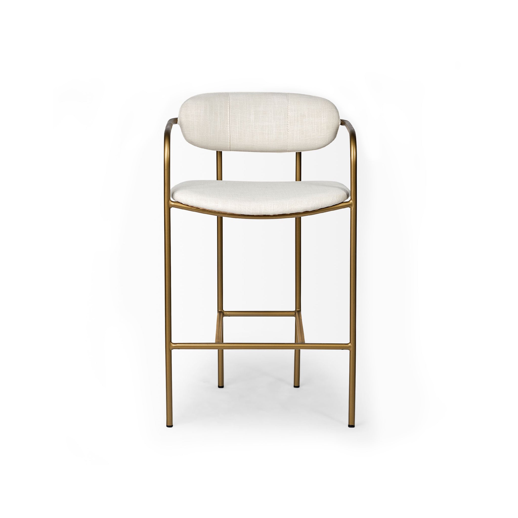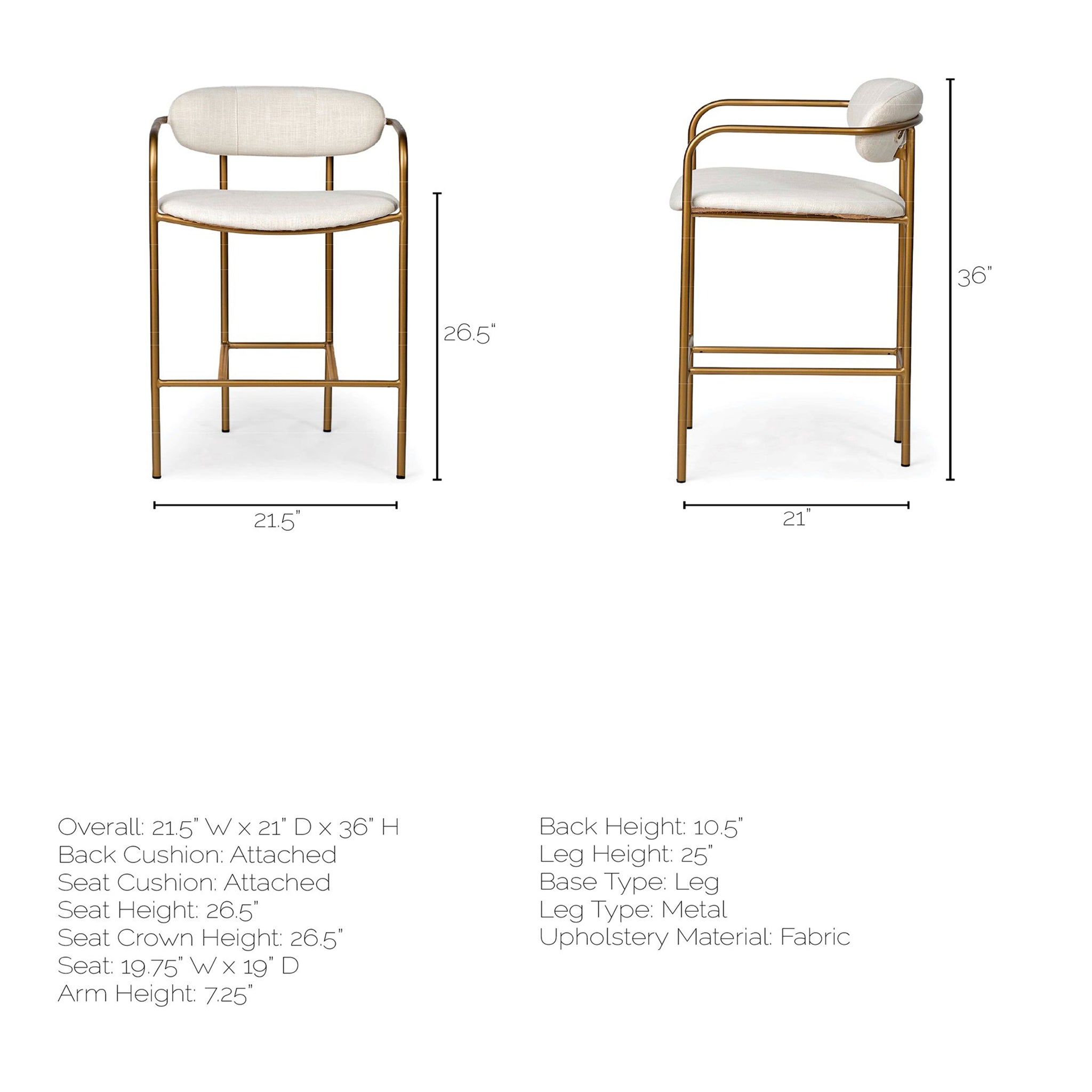 Wow your guests with the stunning Peyton II Counter Stool, available with an antique Gold Metal frame. Like our gun metal design, this modern counter-height bar stool features a sleek metal frame that's molded into comfy armrests and footrests, and its natural-toned cream fabric seat makes it perfect to blend into any decor. Use it in your kitchen for casual meals at your counter, or embellish your living room bar with comfortable seating for your guests. These contemporary bar stools are sure to elevate any space in your home.