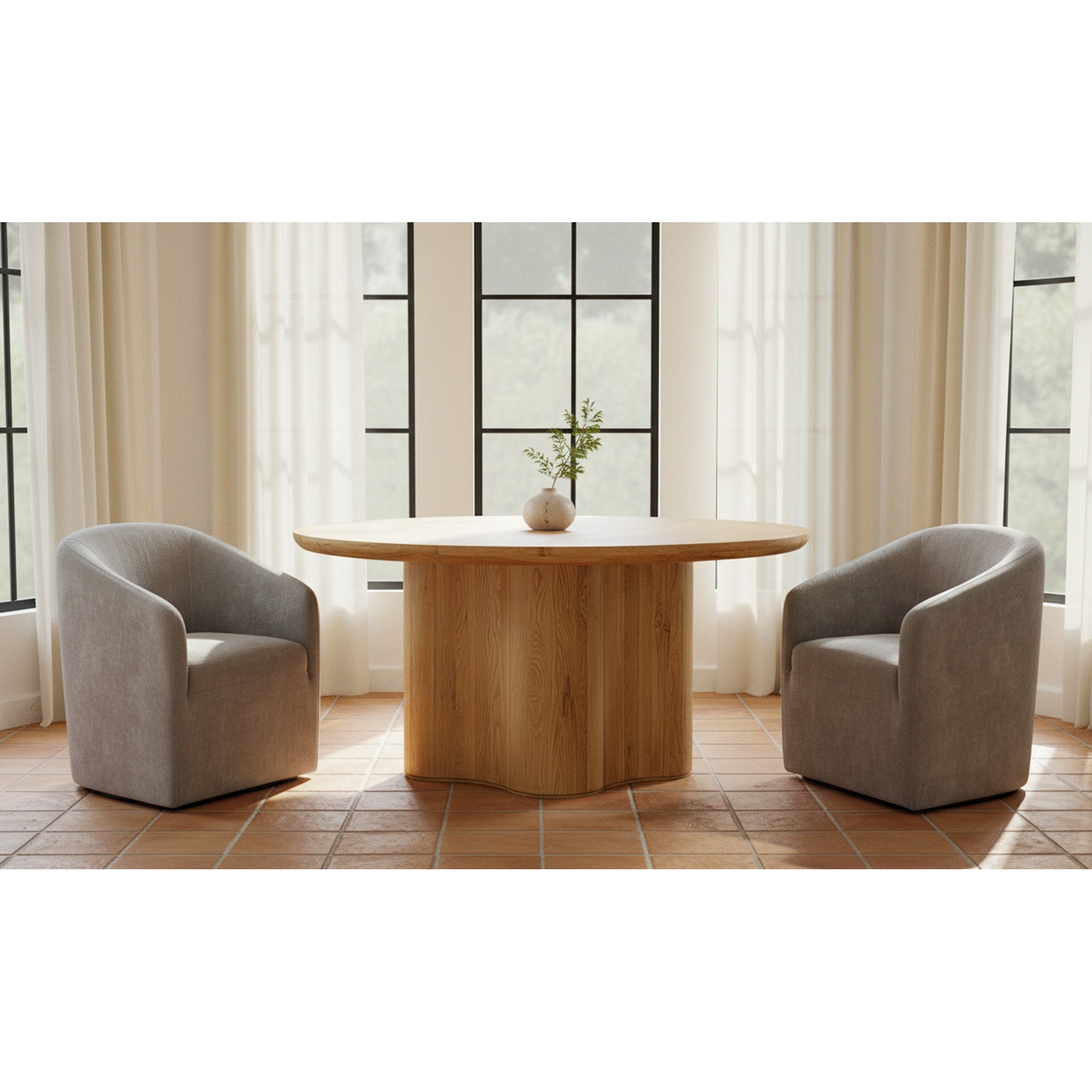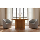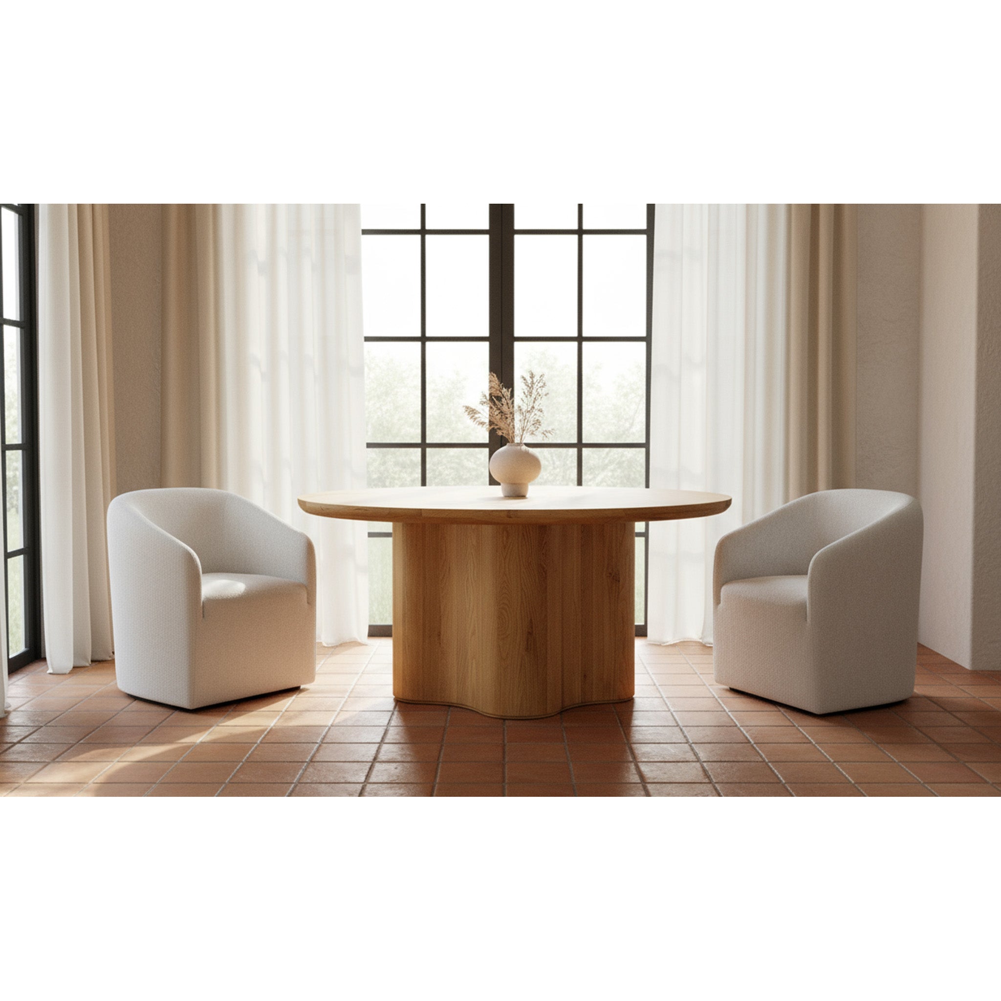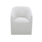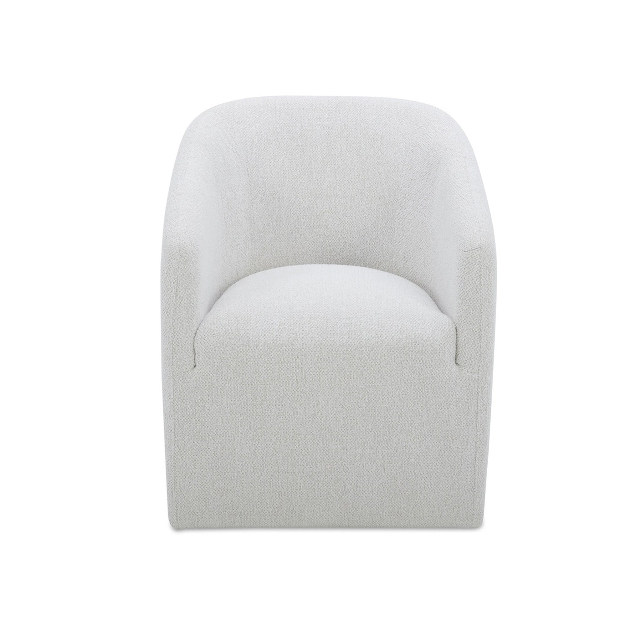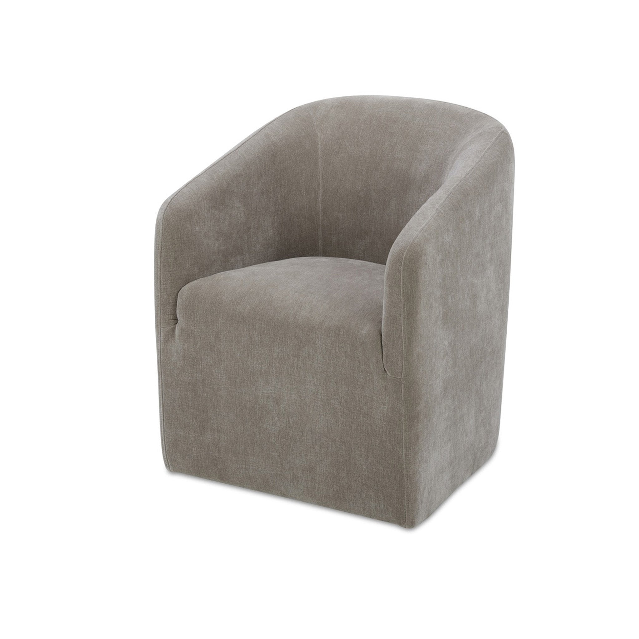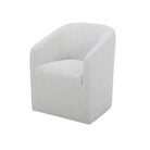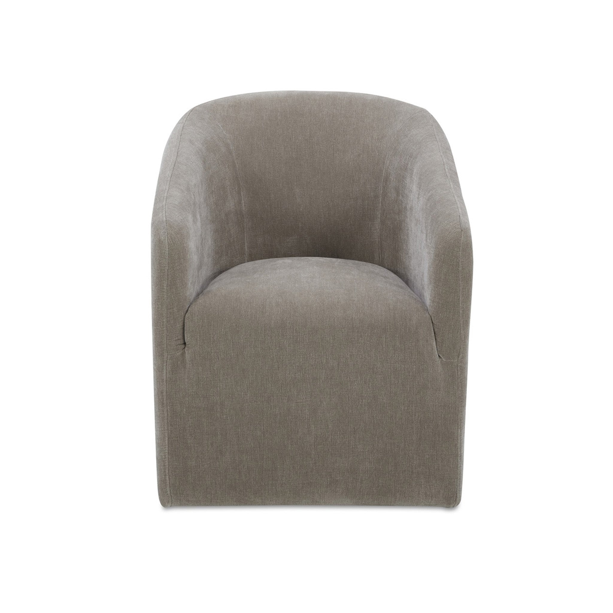 Looks polished and rolls with it. Sandy brings ease to the table. With a curved back, comfy seat, and smooth-rolling casters, it's built for long meals, quick coffees, and anything in between. Fully wrapped in durable, soft performance fabric, the silhouette feels seamless and considered--for diners who like to drift.