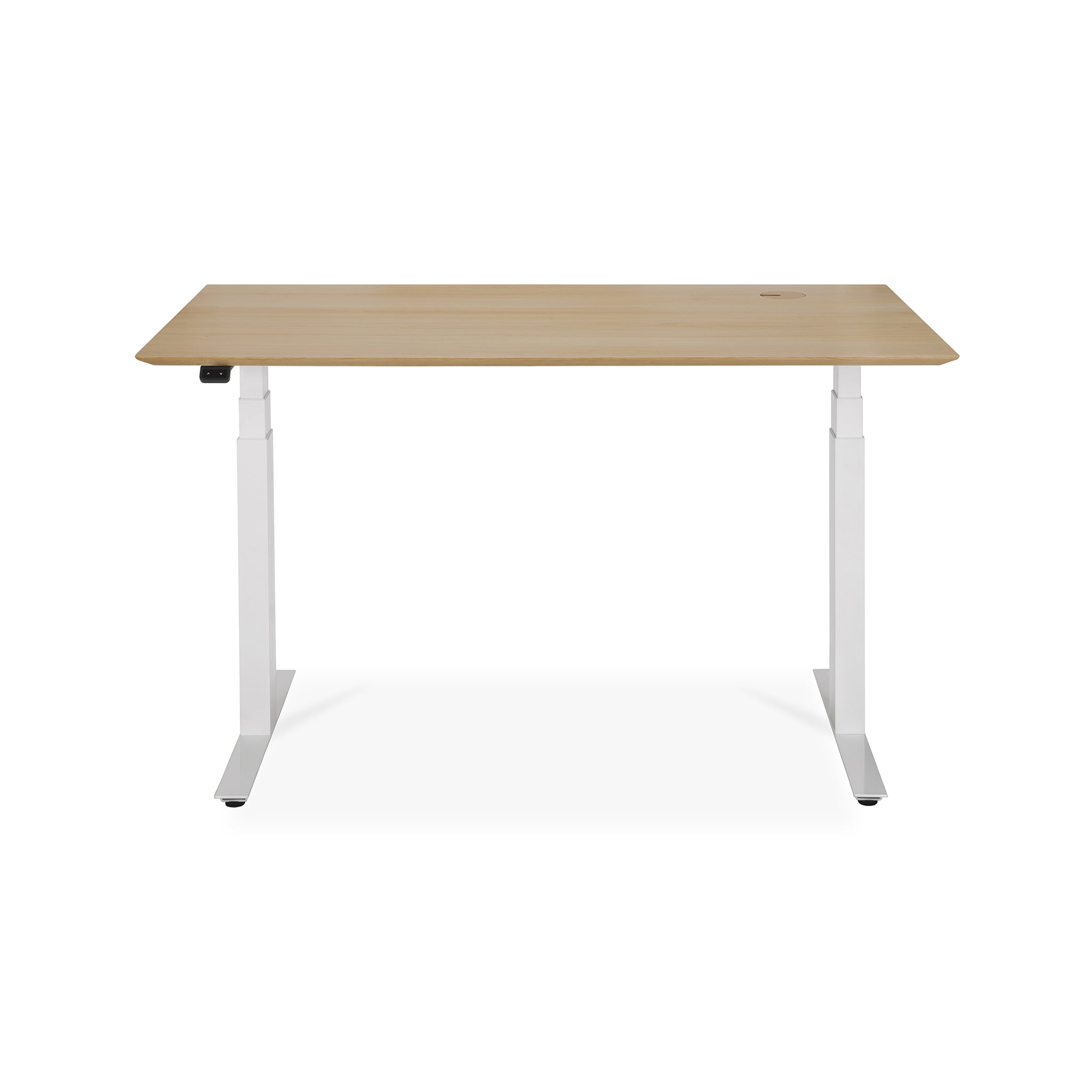 Bok White Base Adjustable Desk in Varnished Oak Top