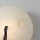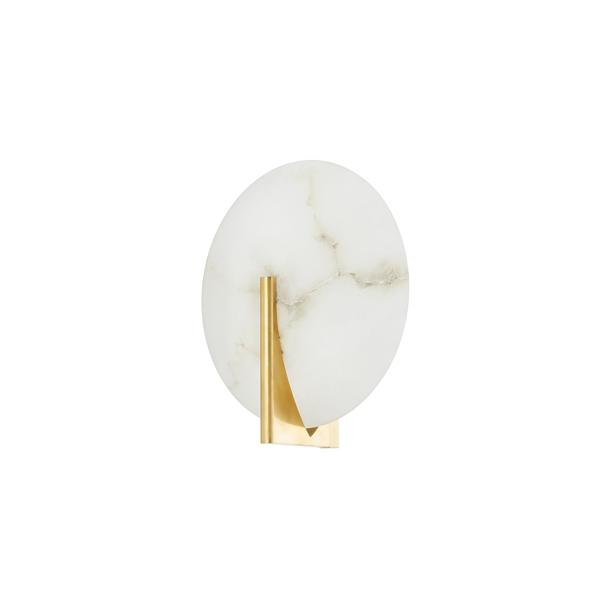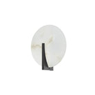 Asteria's alabaster discs are held in place by a single piece of Vintage or Black Brass metalwork. The alabaster gives off a delicate, moon-like glow when lit. This simple, refined sconce works well in many rooms of the home, including the bath. Justin Crocker for Corbett Lighting.