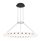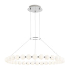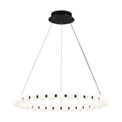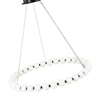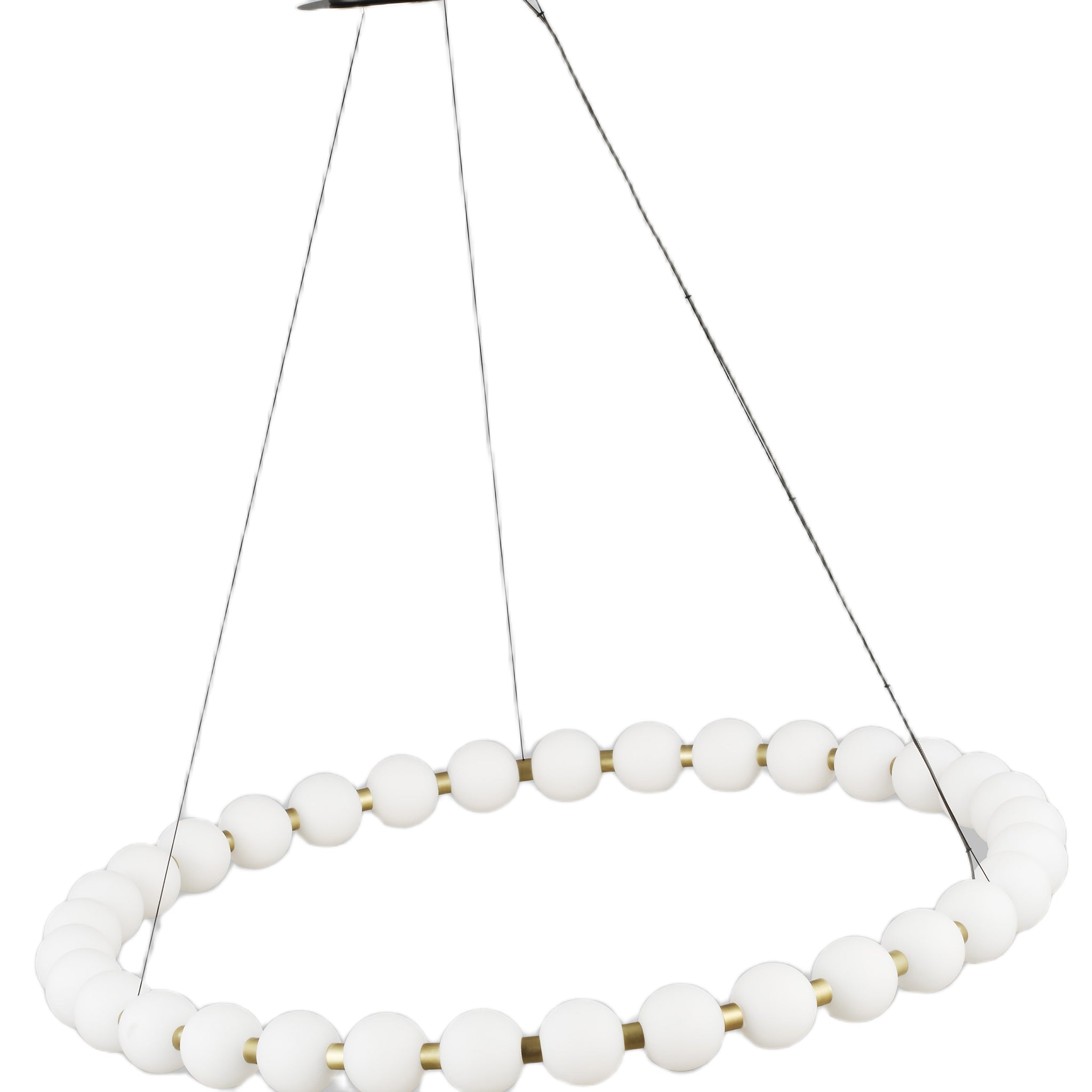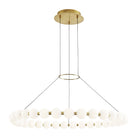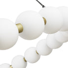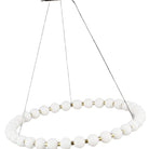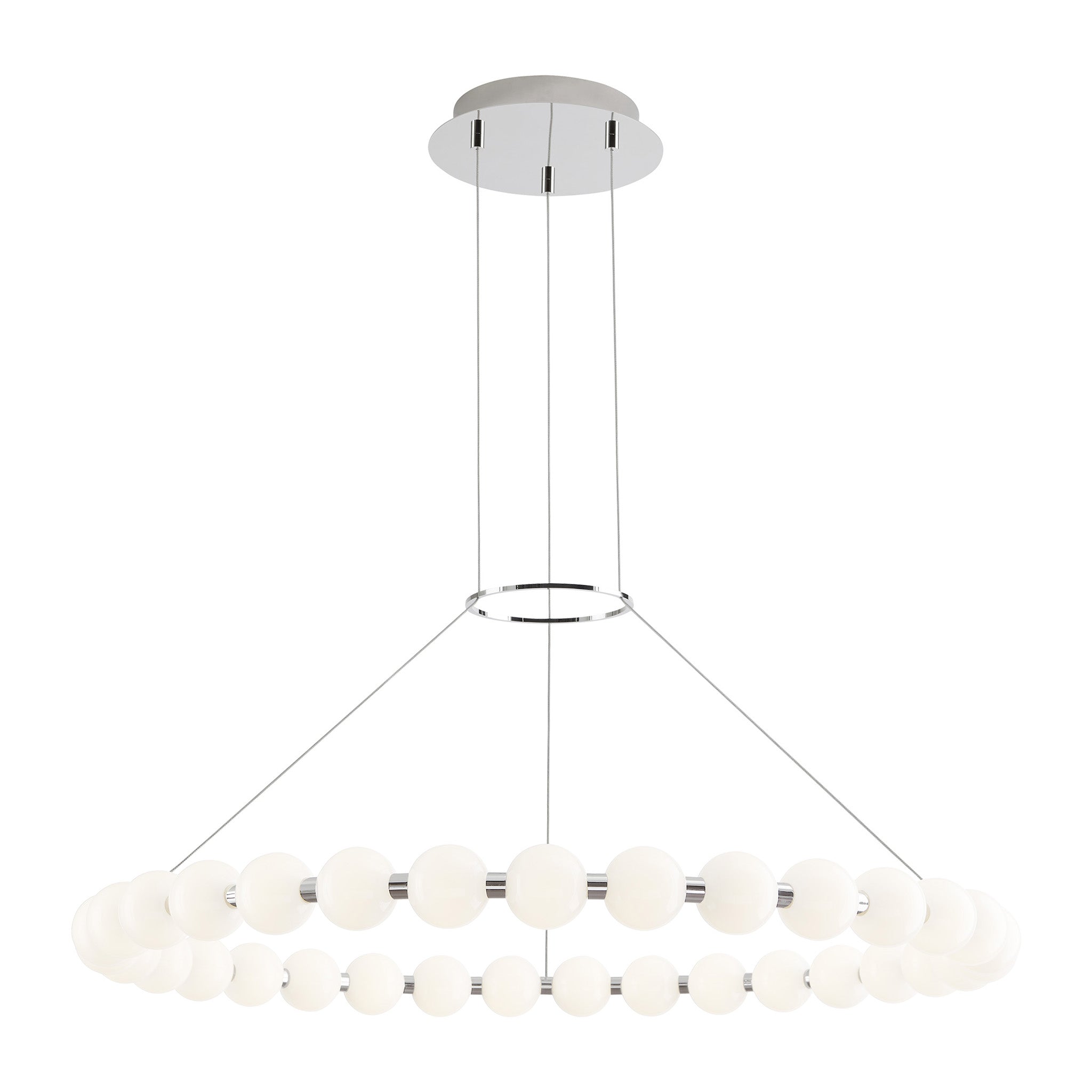 The Orbet 36 Chandelier by Sean Lavin is a modern upgrade to the classic ring design. Milk-glass orbs provide a soft diffused aesthetic for the integrated LEDs and are accented with metal spacers for a touch of contrast. This fixture is the perfect design for dining room, foyers, hospitality and more.