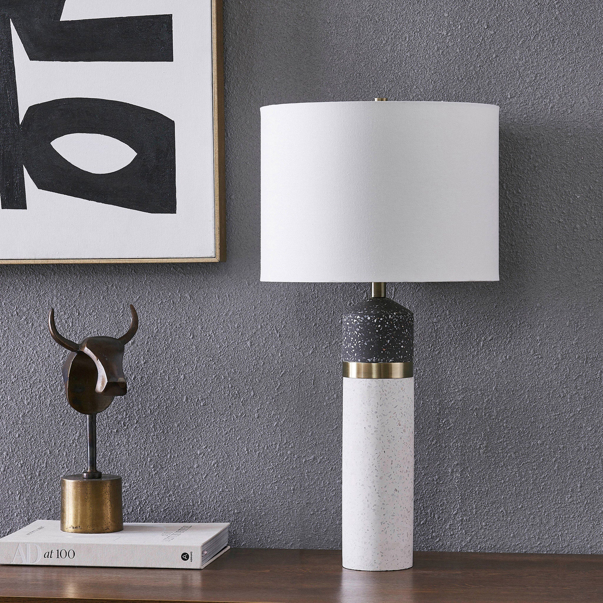 The curated interior takes on equal doses of glamour and architectural persuasion with this table lamp design. A collage of terrazzo, antique brass, and antique cotton, its diverse arrangement increases its star power. The design adds a dynamic appeal to the home when lit and unlit alike.