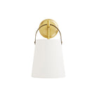 Simple design meets equestrian elegance with the ian. an antique brass circular steel backplate acts as a hook to present a classic white linen shade. the shade is suspended by an english bronze steel strap that was inspired by stirrups, lending a cavalier appeal to this piece. showcase solo next to a bedside or hang in multiples for a more masculine approach. damp rated, though limited outdoor conditions may affect finish.