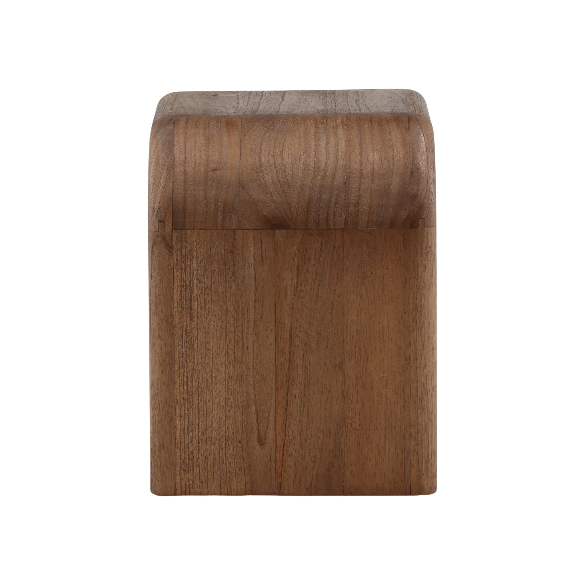 This minimalist stool or side table is a celebration of clean lines and natural materials. Crafted from solid wood, its seamless, U-shaped silhouette features smooth, rounded corners. The natural grain of the wood adds warmth and an organic texture to its modern form, making it a versatile and timeless accent for any space.