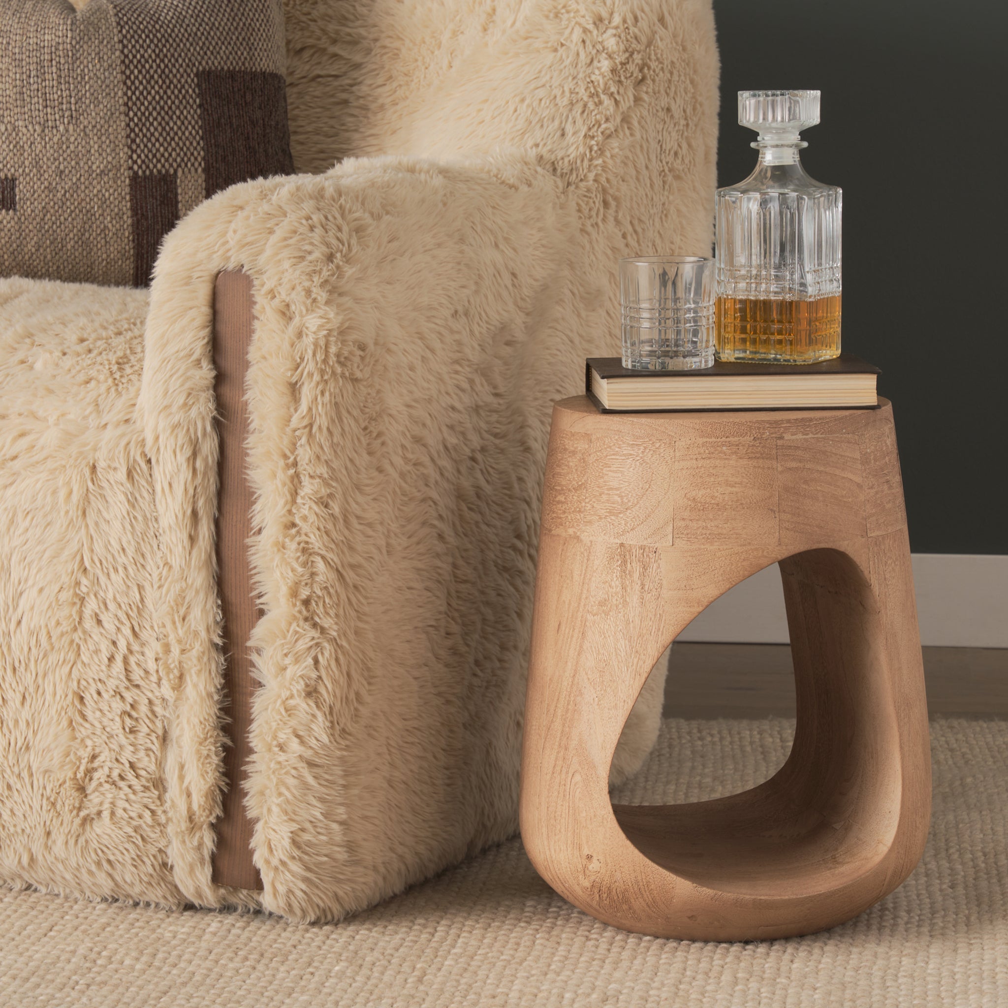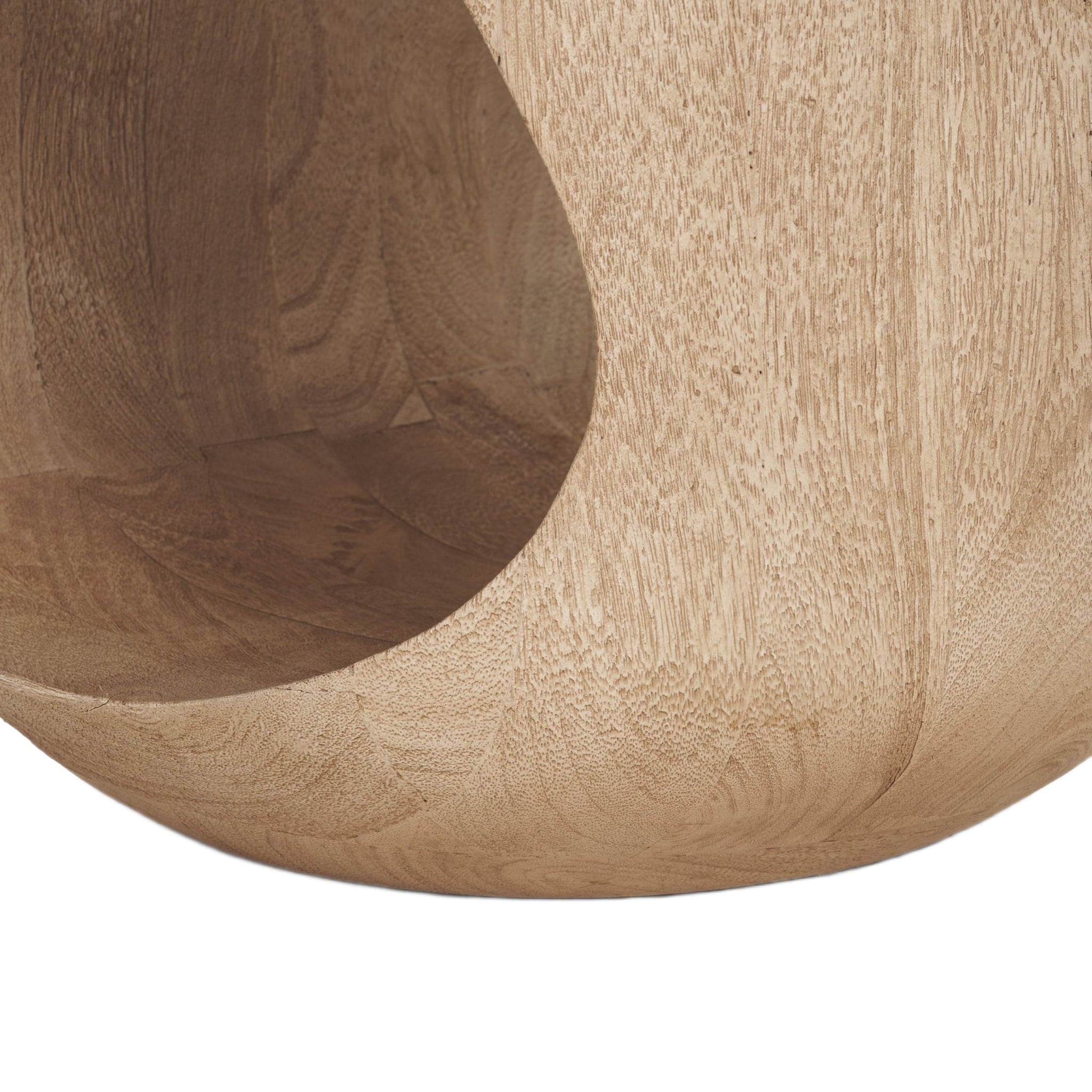 The Cayson Accent Table features a sculptural cove-inspired silhouette crafted from solid mango wood, finished in a natural sandblasted texture that highlights its organic, coastal character.