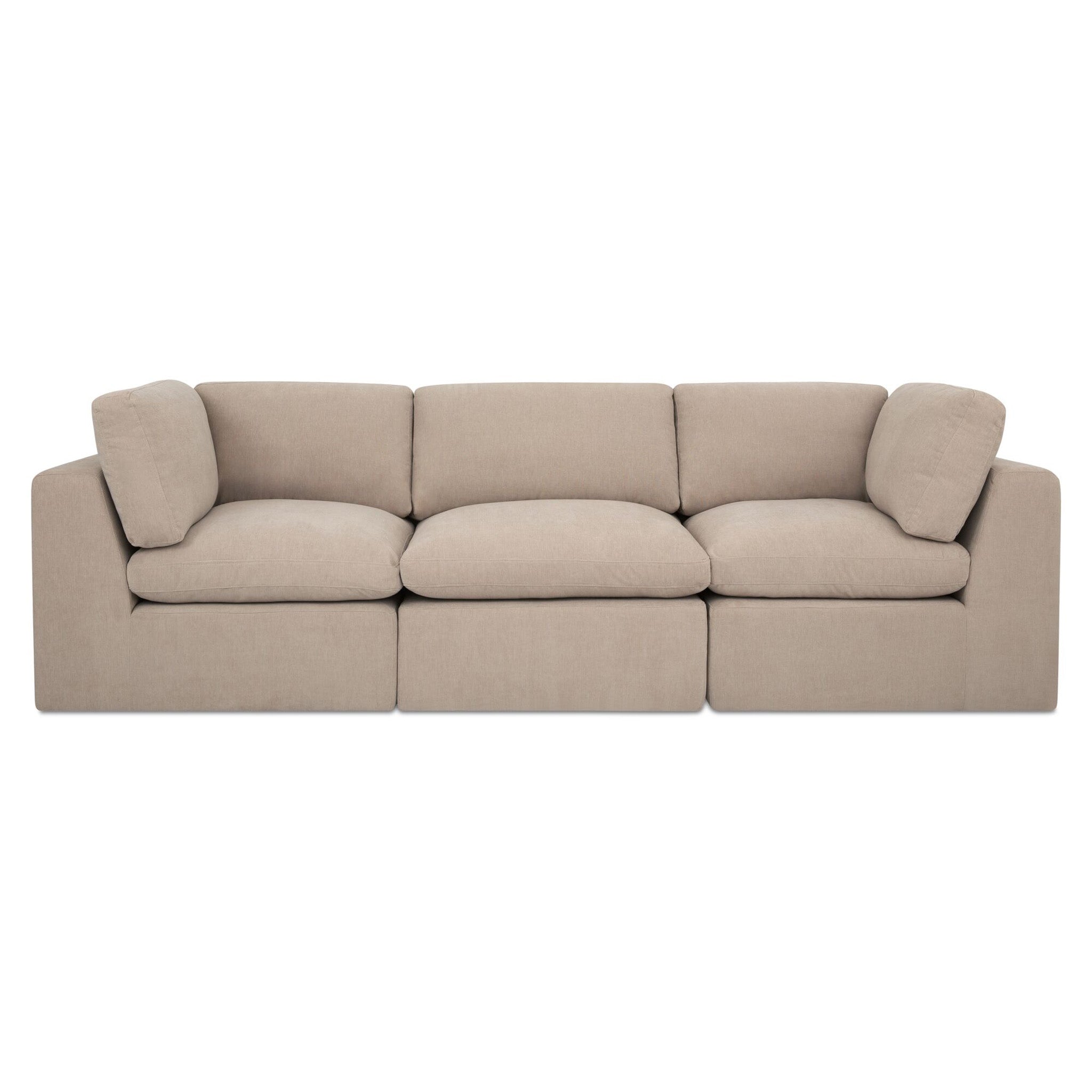 Smart design. Easy comfort. The Cates Modular Sofa delivers sink-in softness with a frameless, foam-based build that feels as good as it looks. Made entirely from dense foam, memory foam, and fiber fill-no frame, no tools-this modular design ships vacuum-sealed in space-saving boxes and expands fully within 24 hours. With wide arms, soft back cushions, and a grippy base that stays in place, it's lightweight, low-profile, and endlessly flexible-perfect for compact seating or built-out layouts.