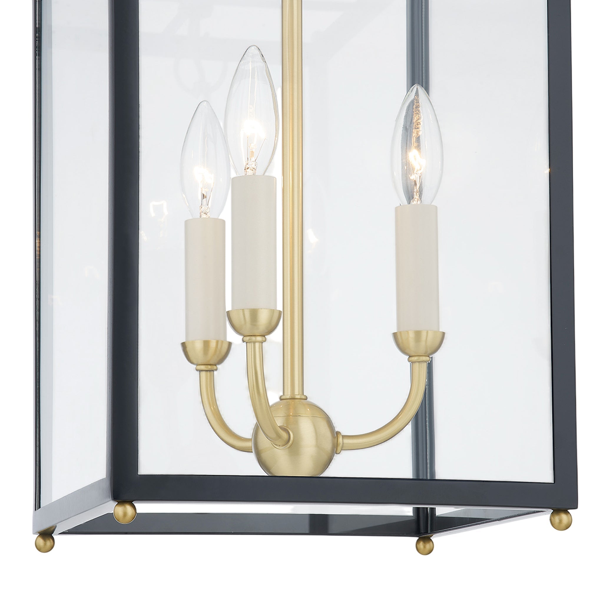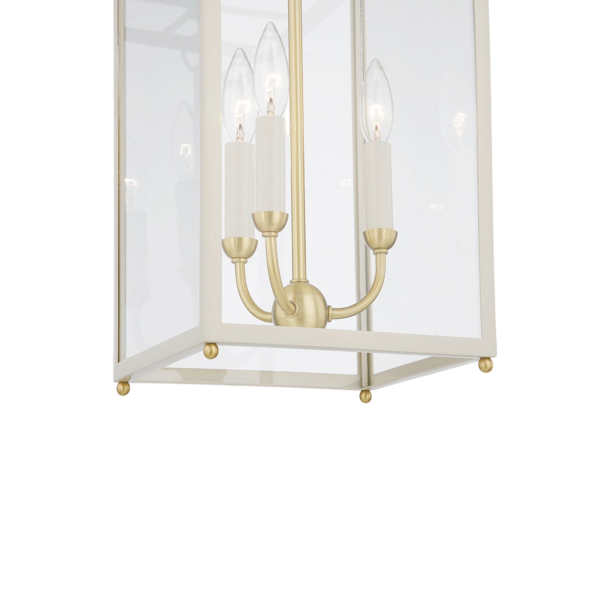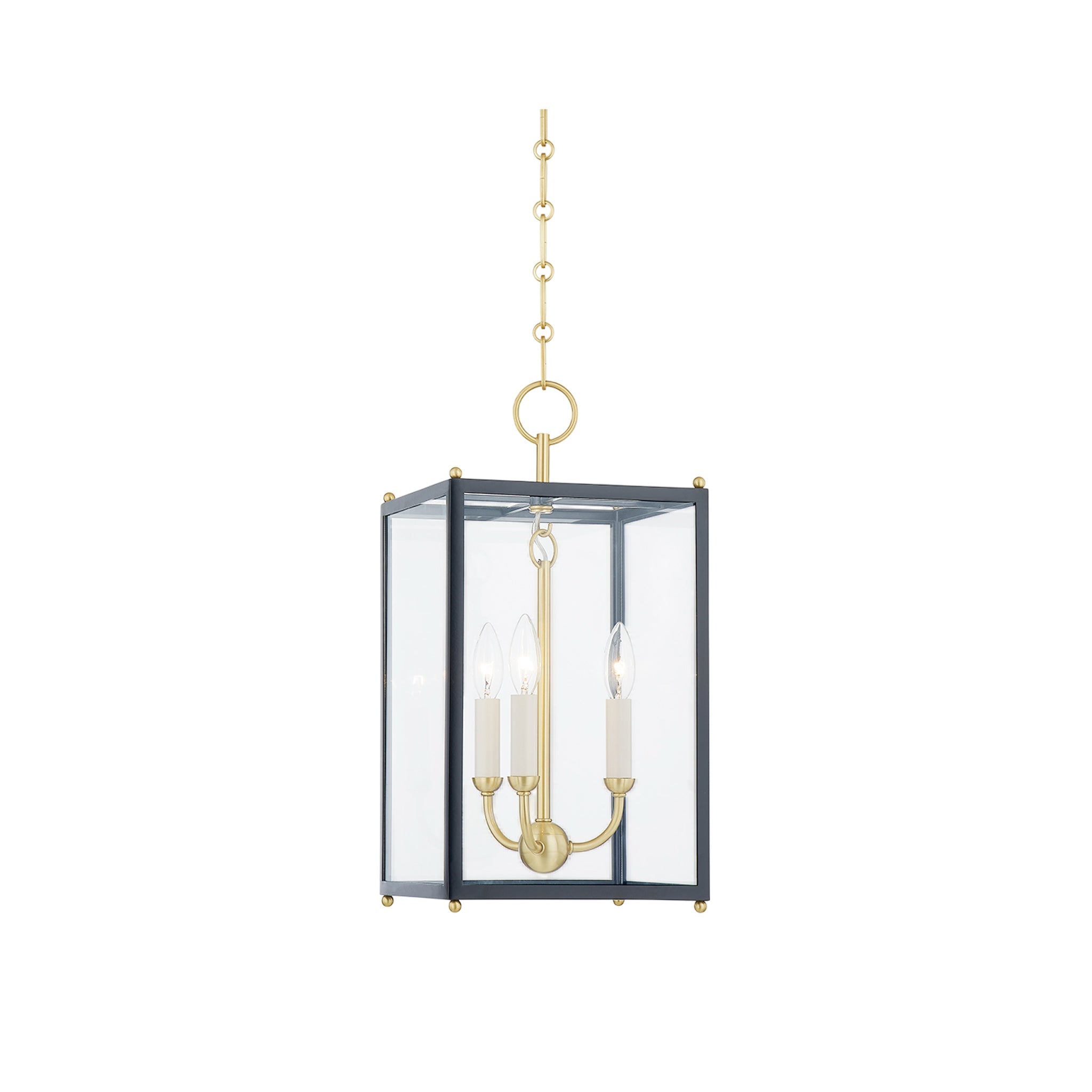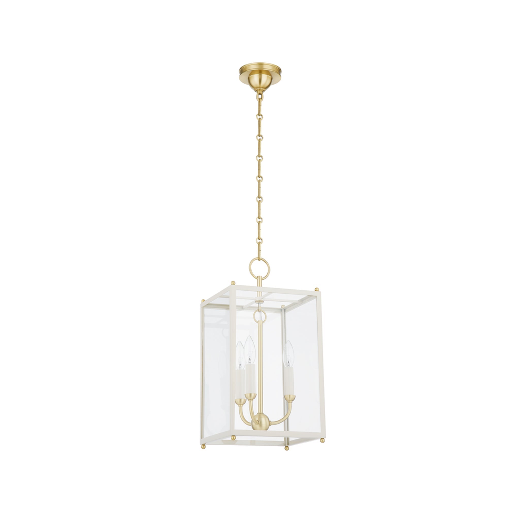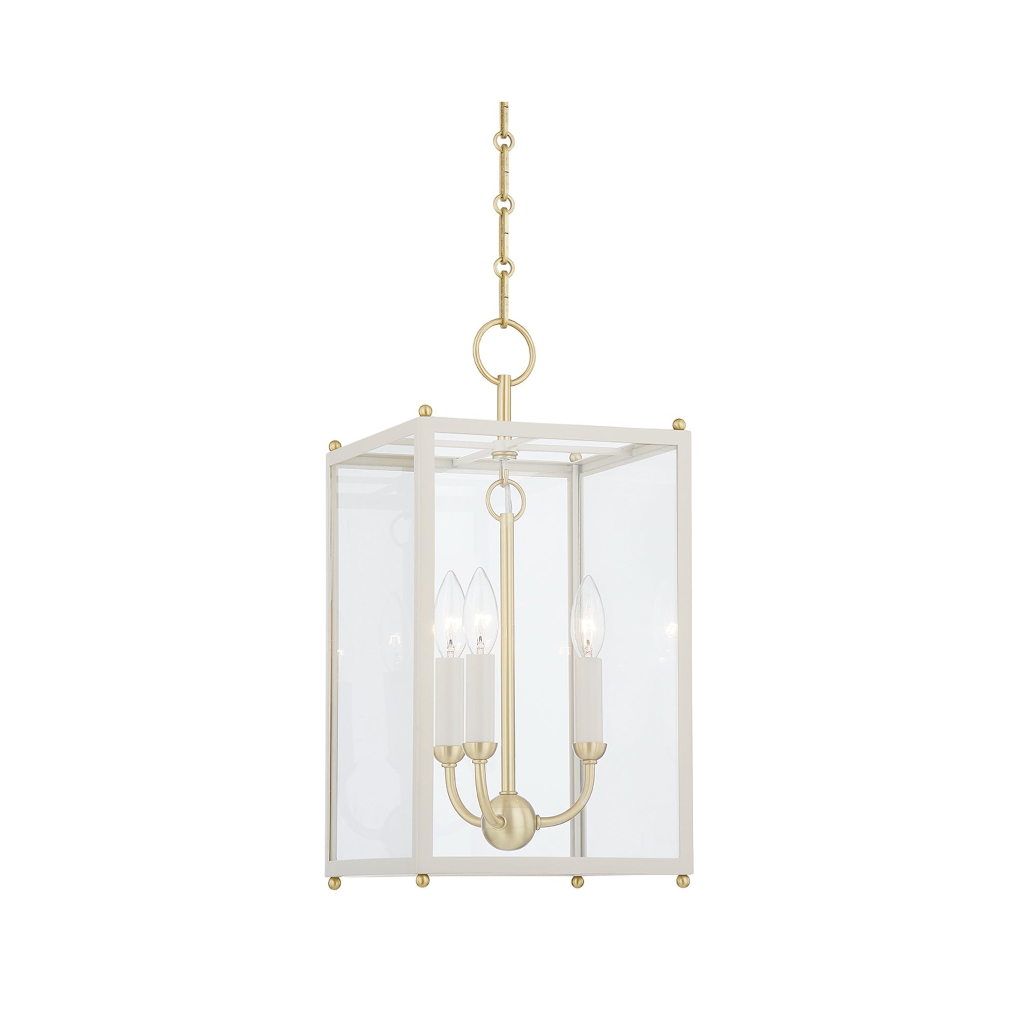 Bring a classic elegance to any space with this clean, traditional lantern. Details like the signature chain, curved candle array and brass corner accents make Chaselton feel special and elevated. The cream candles metalwork pair well with both the Off White and the Darkest Blue frame. Mark D. Sikes for Hudson Valley Lighting.
