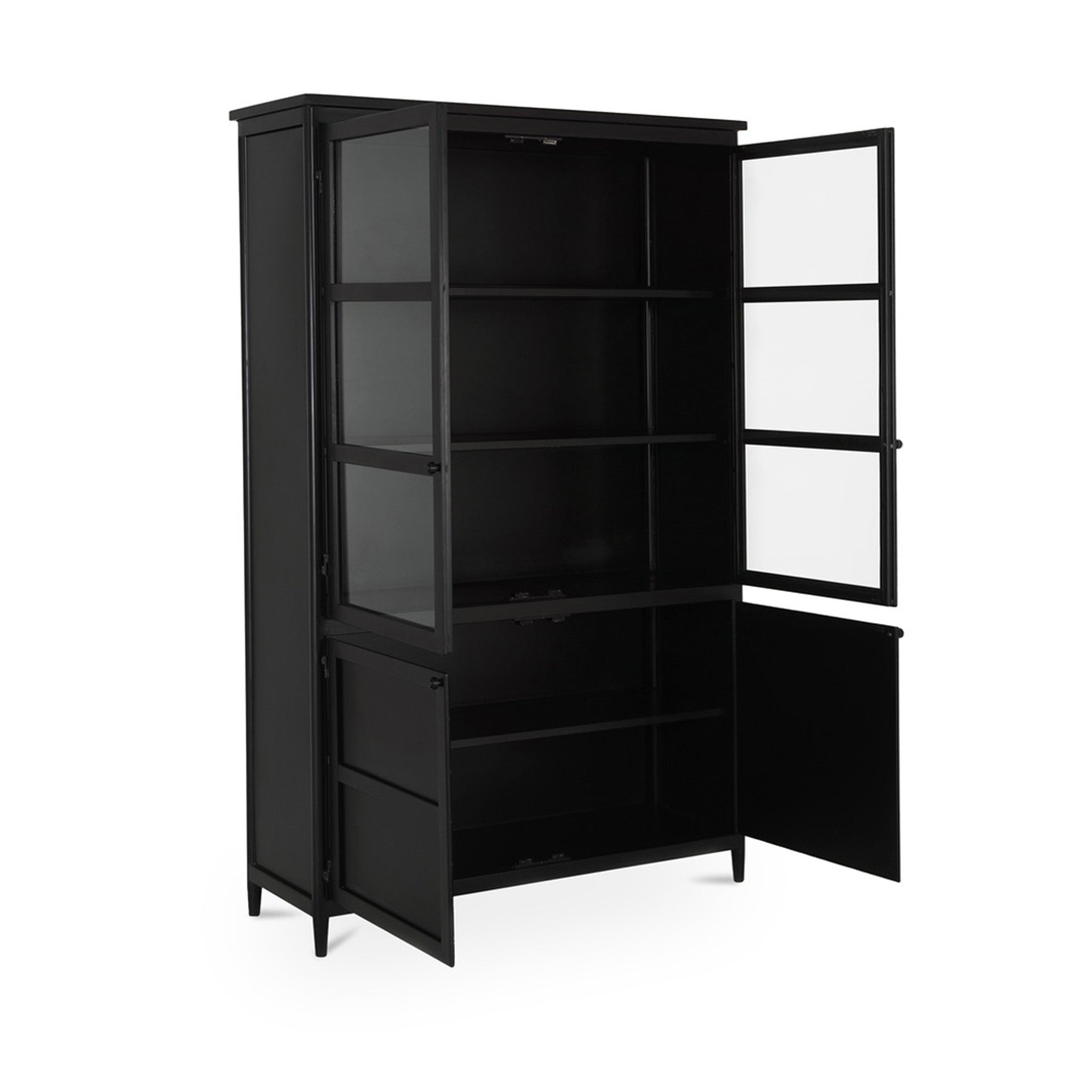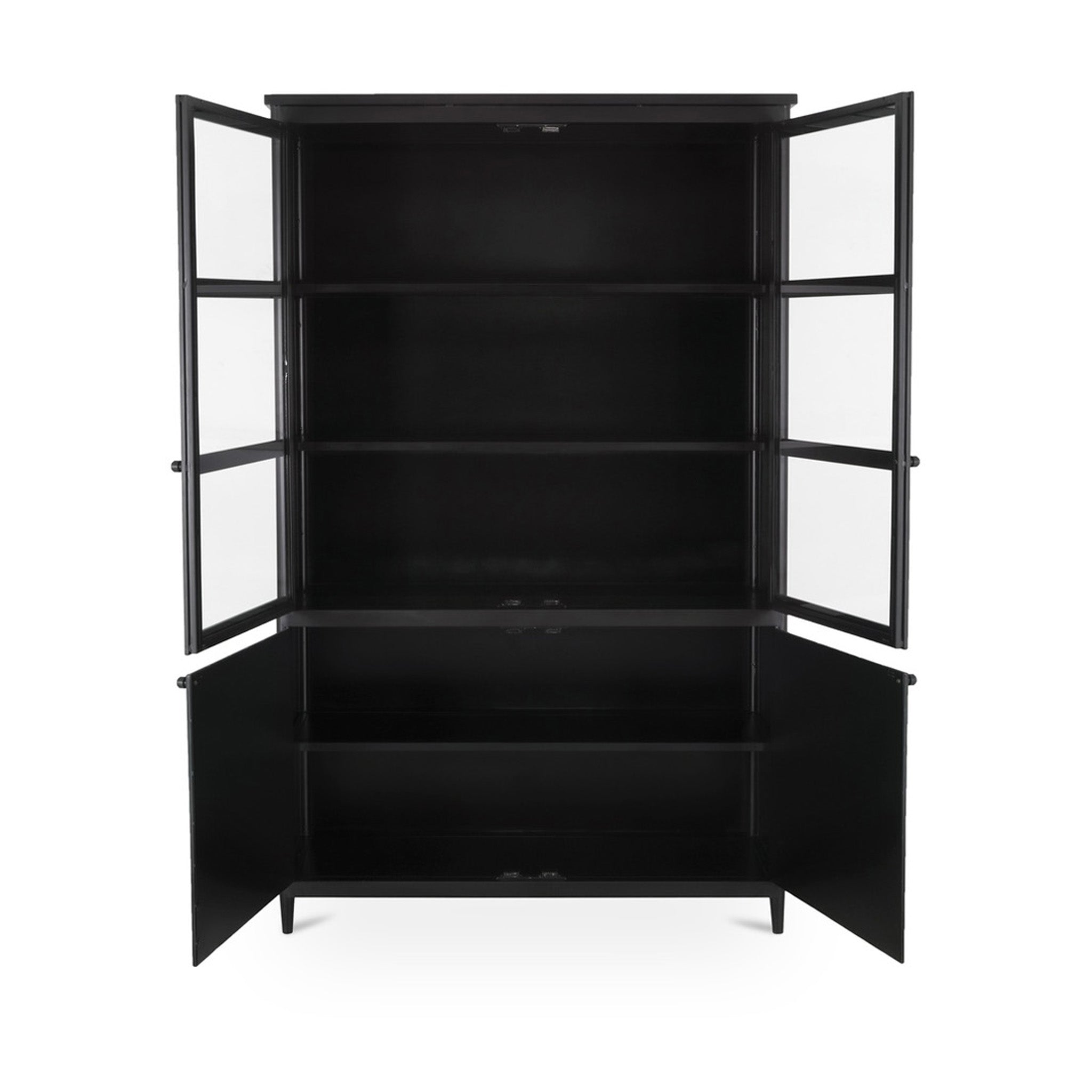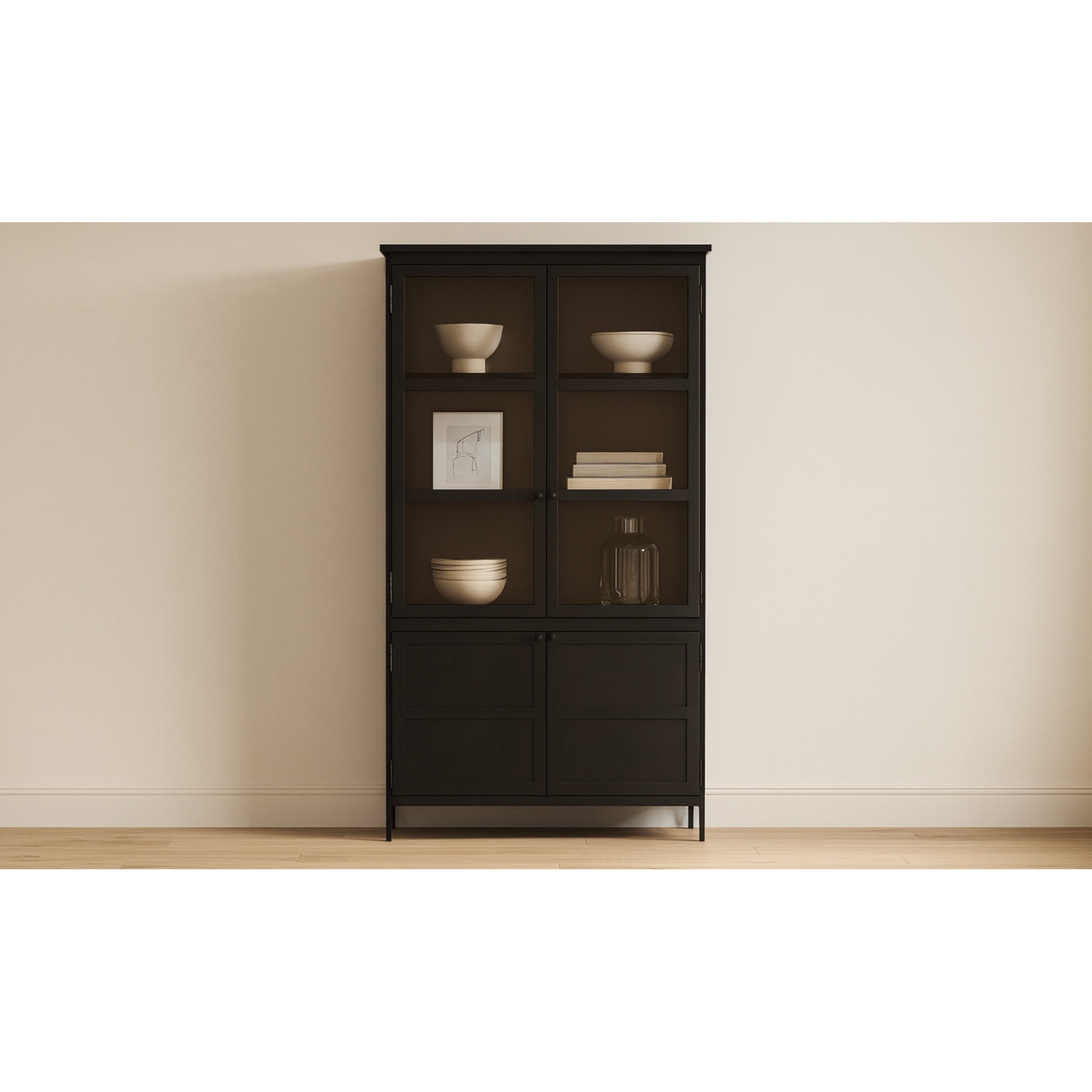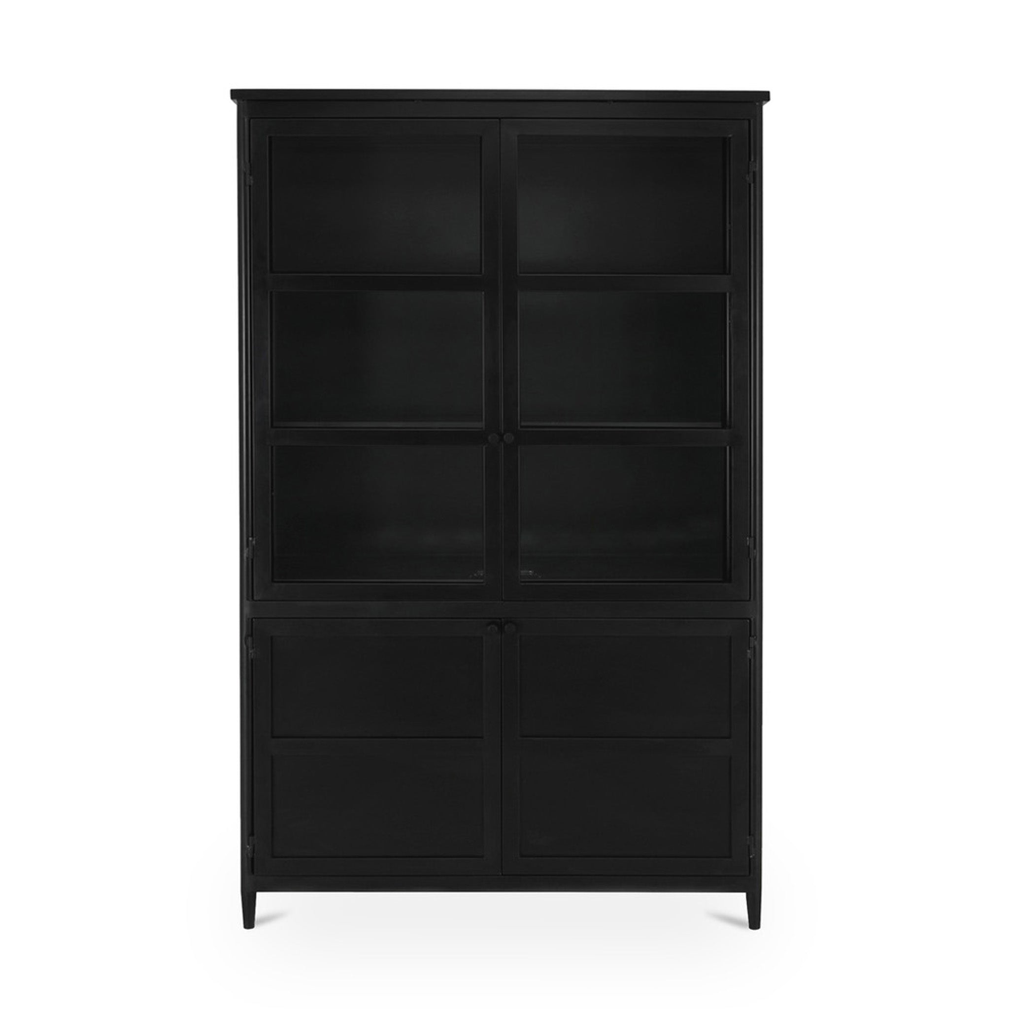 Built differently. The case for going full metal. Henry brings something different to the mix-full metal construction with a clean, transitional frame that adds texture and polish to any space. Four doors, half-glass and half-solid, offer a sleek way to show off what you love and stash what you don't. Inside, adjustable shelves and media cutouts keep things tidy. Finished in matte black powder-coated steel, it's a storage piece that keeps its cool-on display and behind the scenes.