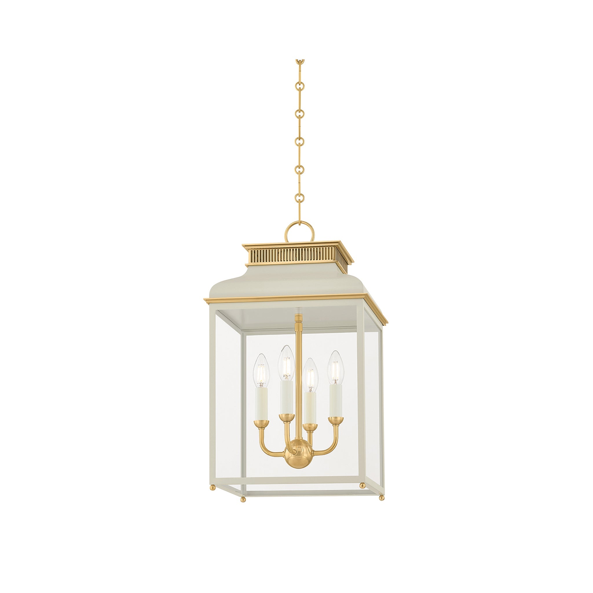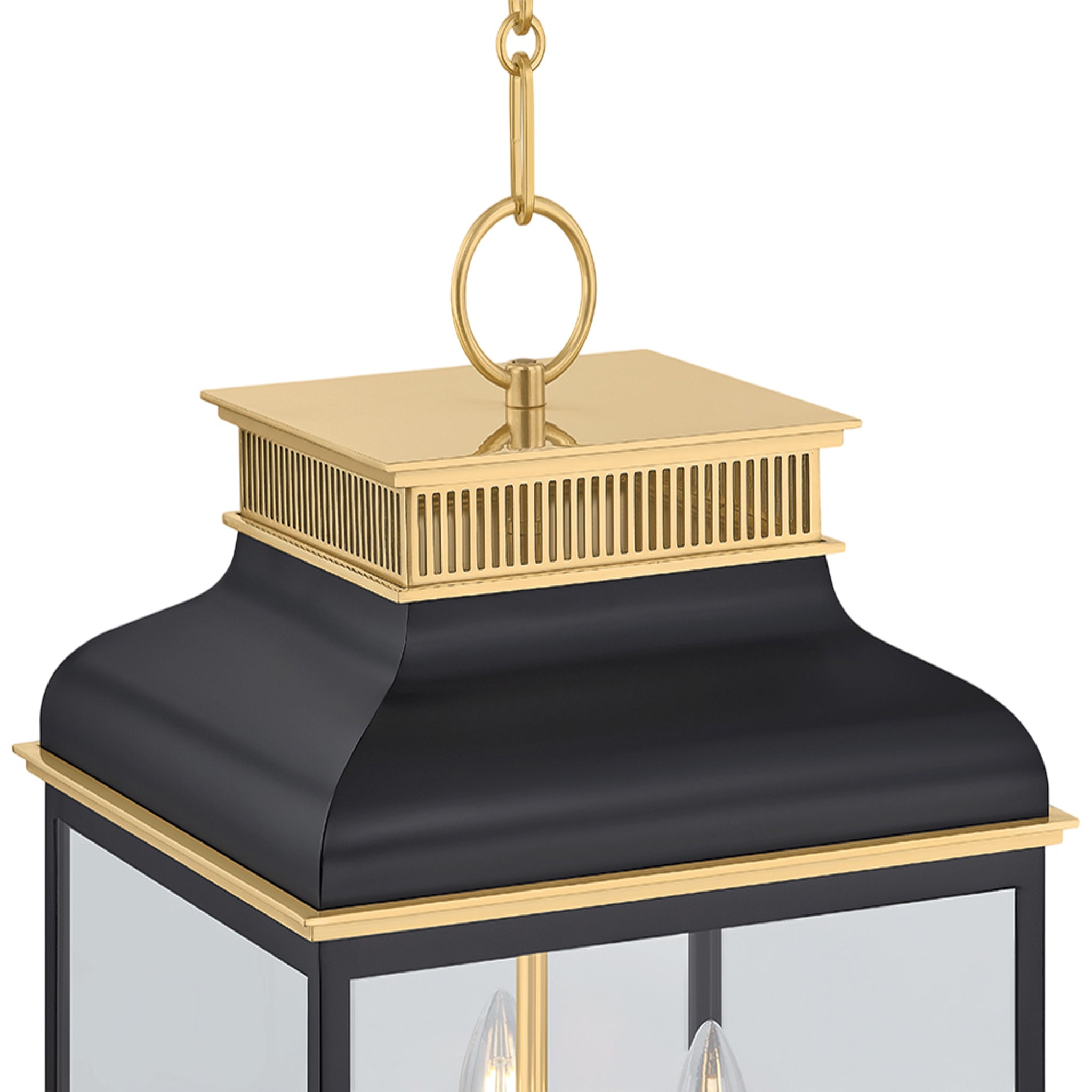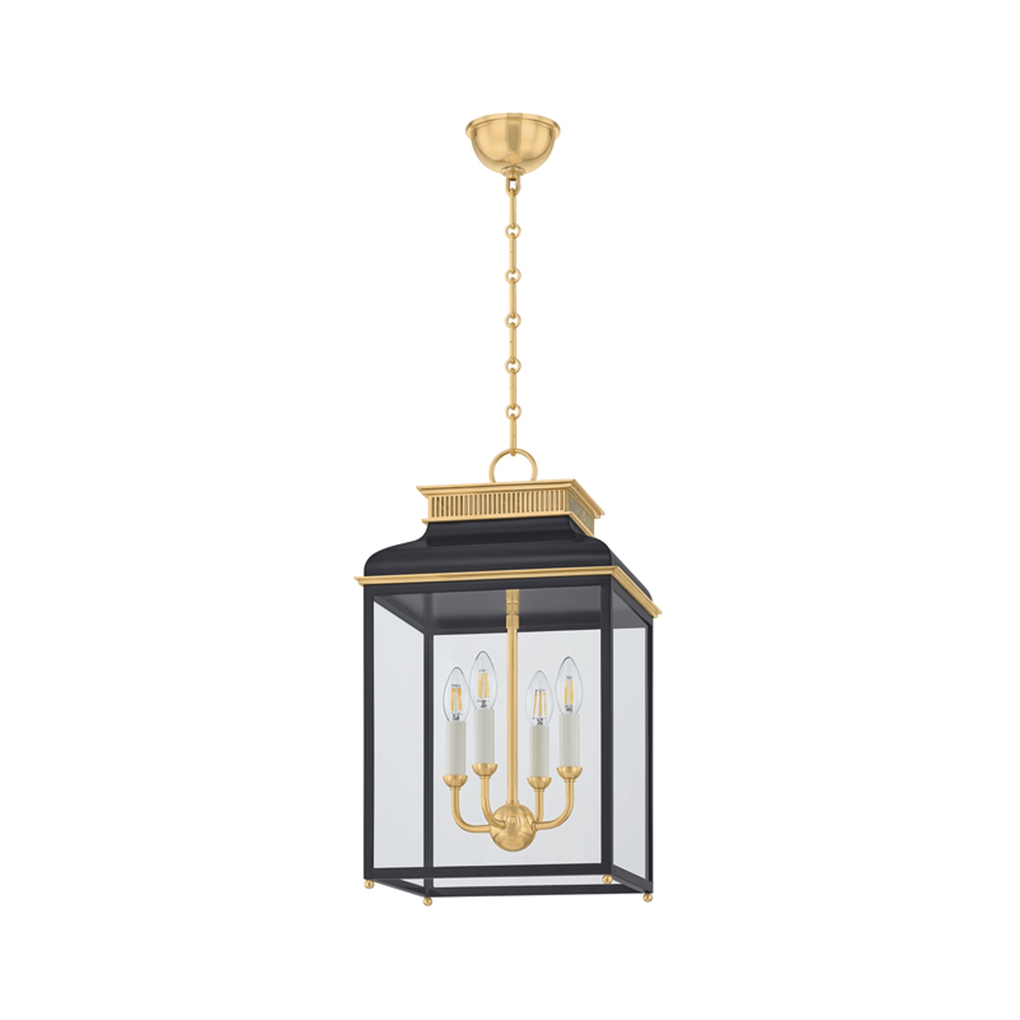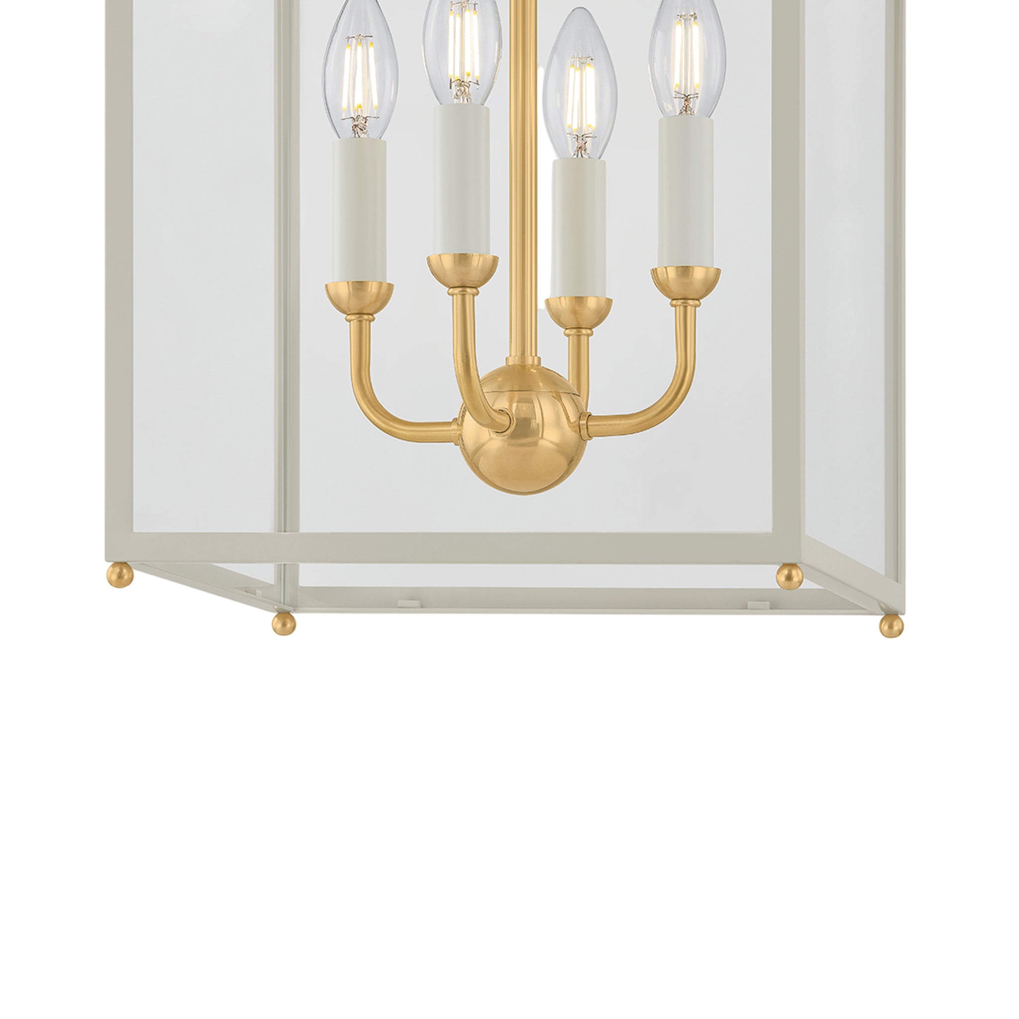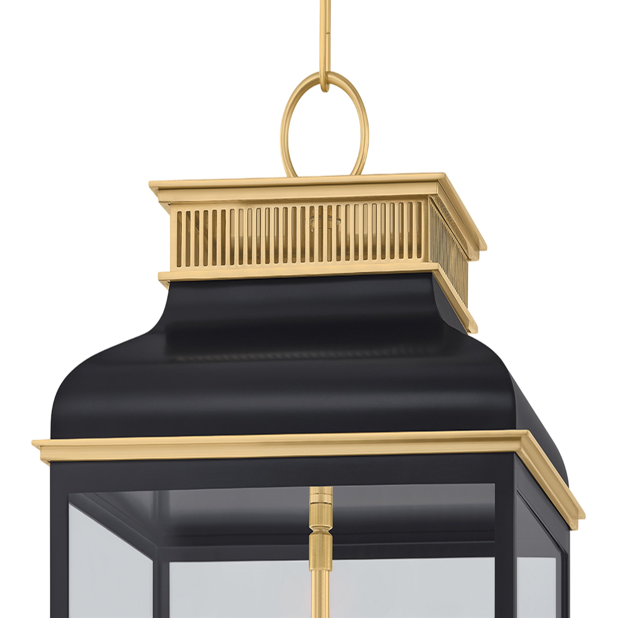 Blending traditional lines with fresh, mixed finishes, the Houghton lantern family exudes timeless elegance. Notable details include Mark D. Sikes' signature ball accent at the center of the candelabra and perforations on the shades. Complemented by warm Aged Brass accents, the classic silhouette ensures Houghton fits into any interior space with ease. Houghton is available in two sizes with a choice of Darkest Blue or Off White finishes. Mark D. Sikes for Hudson Valley Lighting.