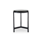 Whether decorating a room from scratch or just looking to inject a fresh new touch, the Lila side table has just what you need. Clean lines and classic materials team up to create a stunning accent end table that's perfect for many styles of interiors. Sleek and sturdy cast aluminum is treated to a black plated finish and capped off with a smooth recycled tinted glass tabletop. Its three-legged design provides stability while ensuring a great-looking airy feel. Placed next to a lounge chair to create a cozy reading spot, or sofa-side as a living room accent table, this end table is ready to deliver style and convenience to your decorating project.