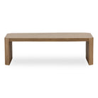 This minimalist coffee table combines clean lines with the natural beauty of wood. Its seamless, U-shaped silhouette is crafted from a single piece of light wood, creating a striking "waterfall" design. The table features a raw, natural finish with a pronounced, vertical grain and rounded corners that soften its modern form. This piece is a perfect centerpiece for a living room, bringing a grounded, organic feel to your space.