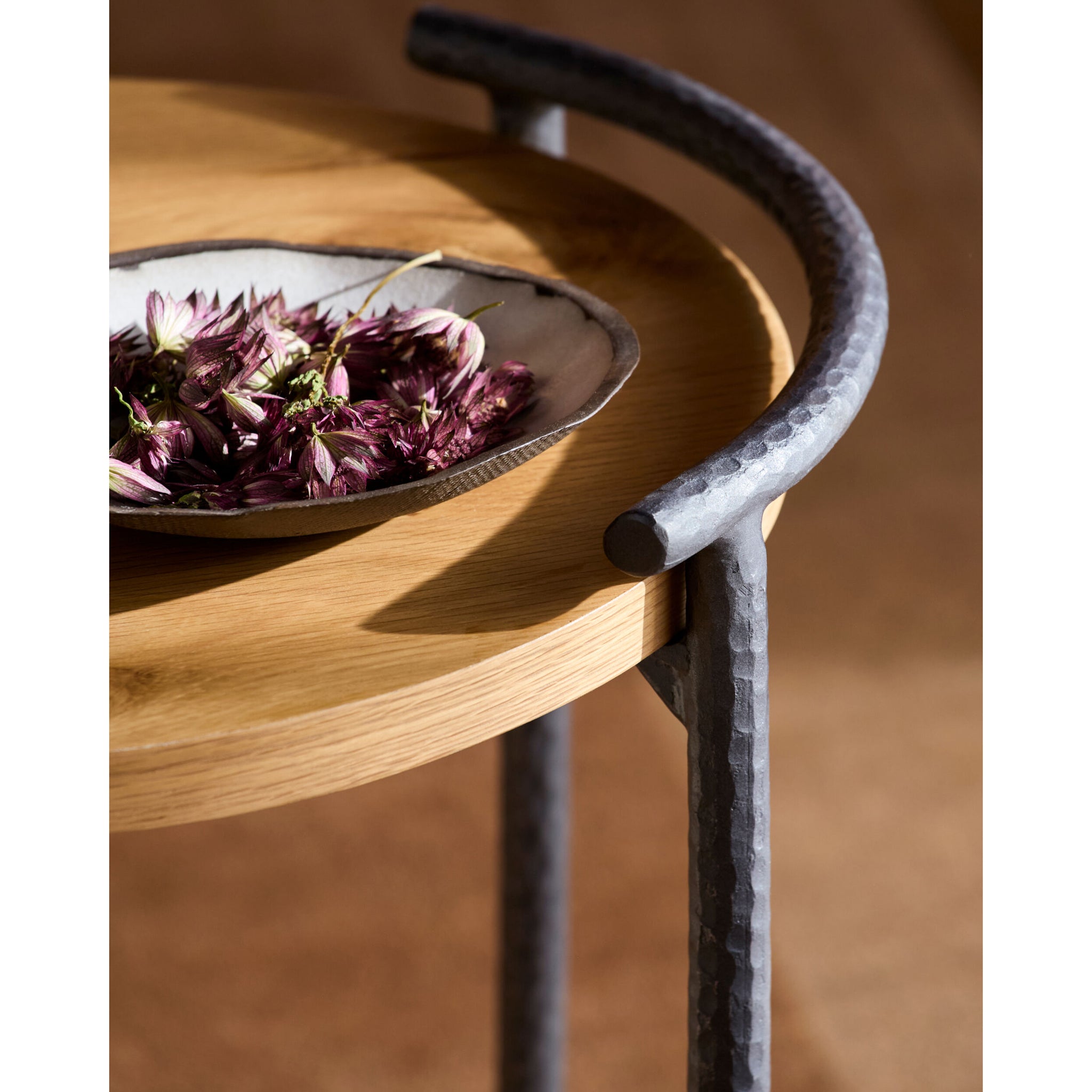 Elevate your living space with the Ojai End Table, a true embodiment of minimalist modern design that effortlessly complements any contemporary setting. Crafted with a sleek oak veneer top and supported by a sturdy iron base, this end table exudes sophistication while offering practical functionality. Manufactured in India, it reflects a seamless blend of natural materials and industrial flair. Ideal for showcasing your favorite decor pieces or serving as a chic platform for your daily essentials, this table is both stylish and versatile. Maintain its pristine condition with ease?just wipe clean with a damp cloth and avoid harsh cleaners to keep the finish looking immaculate. Add the Ojai End Table to your home for an understated yet impactful touch of modern elegance.
