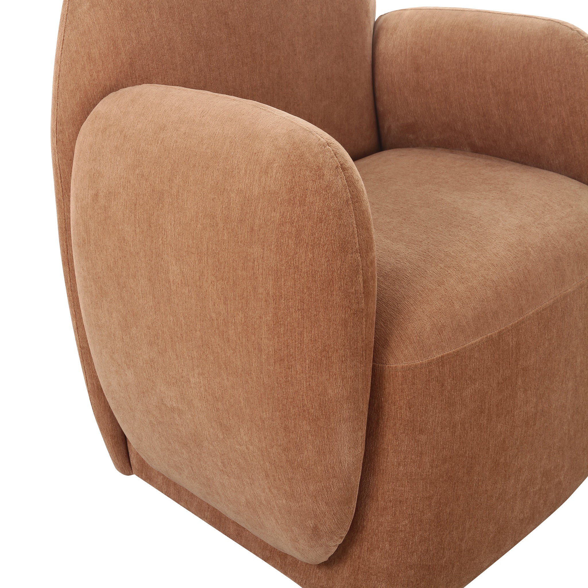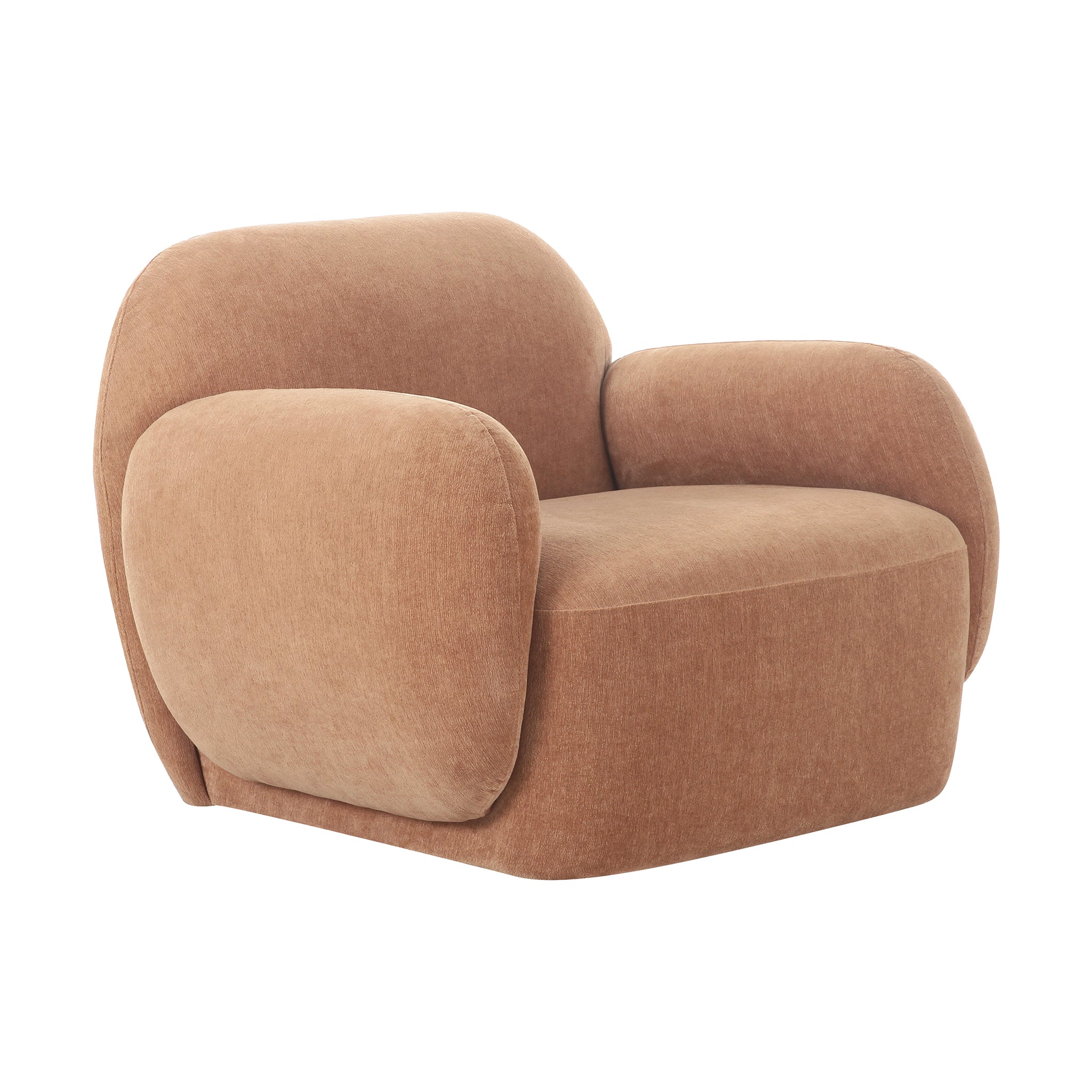 The Theodora lounge chair embraces minimalist, understated elegance with its low-profile, modernist silhouette. Wrapped in exaggerated velvet fabric, it offers a distinct tactility and comfort. The bold, curved arm design makes a stylish statement, harmonizing with the sleek form to create an inviting focal point in any setting.
